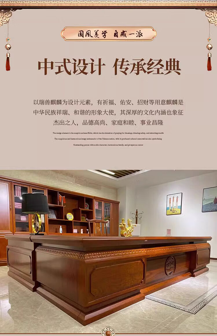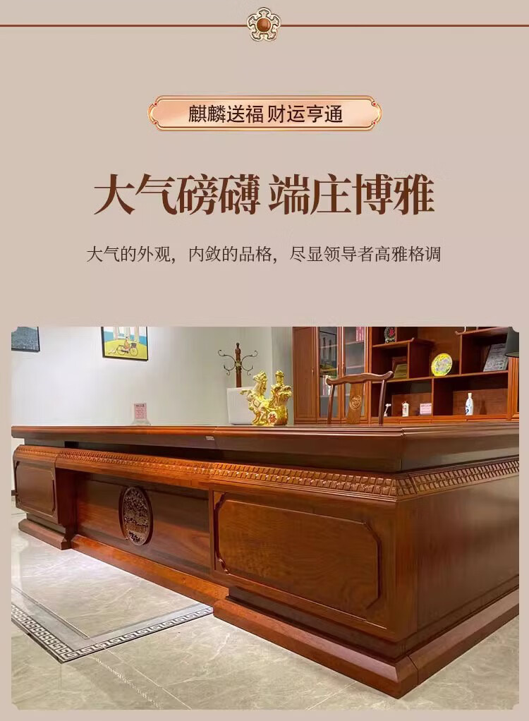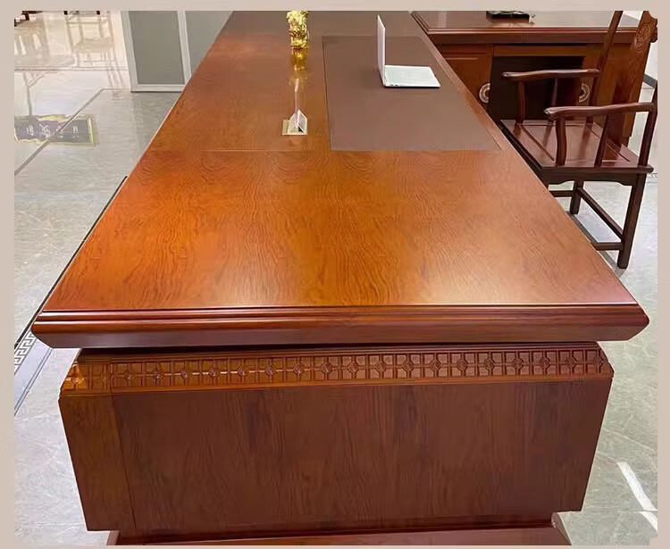 Hanjitang Yuxin Chinese style solid wood desk boss desk and chair pear wood solid wood leather president desk chairman's office executive desk 2.8 meters boss desk