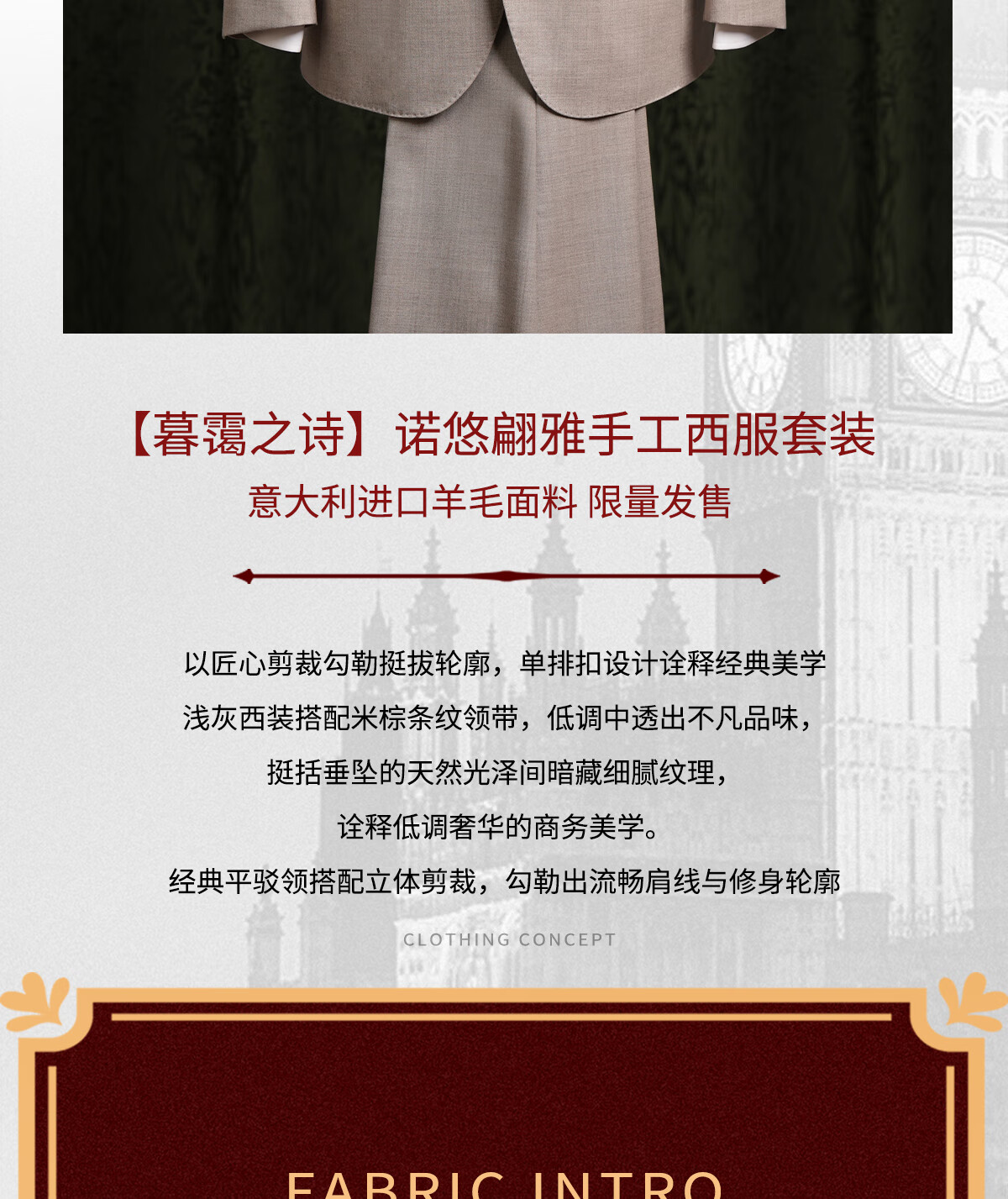 GIEVES CHARLES Zhuoya series new product Nuoyoupanya imported Italian wool fabric coffee color haute couture suit for men Twilight Poetry 46