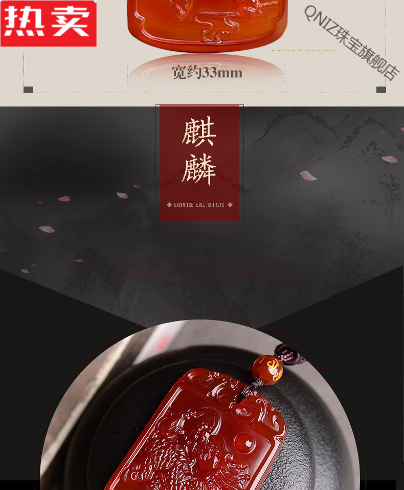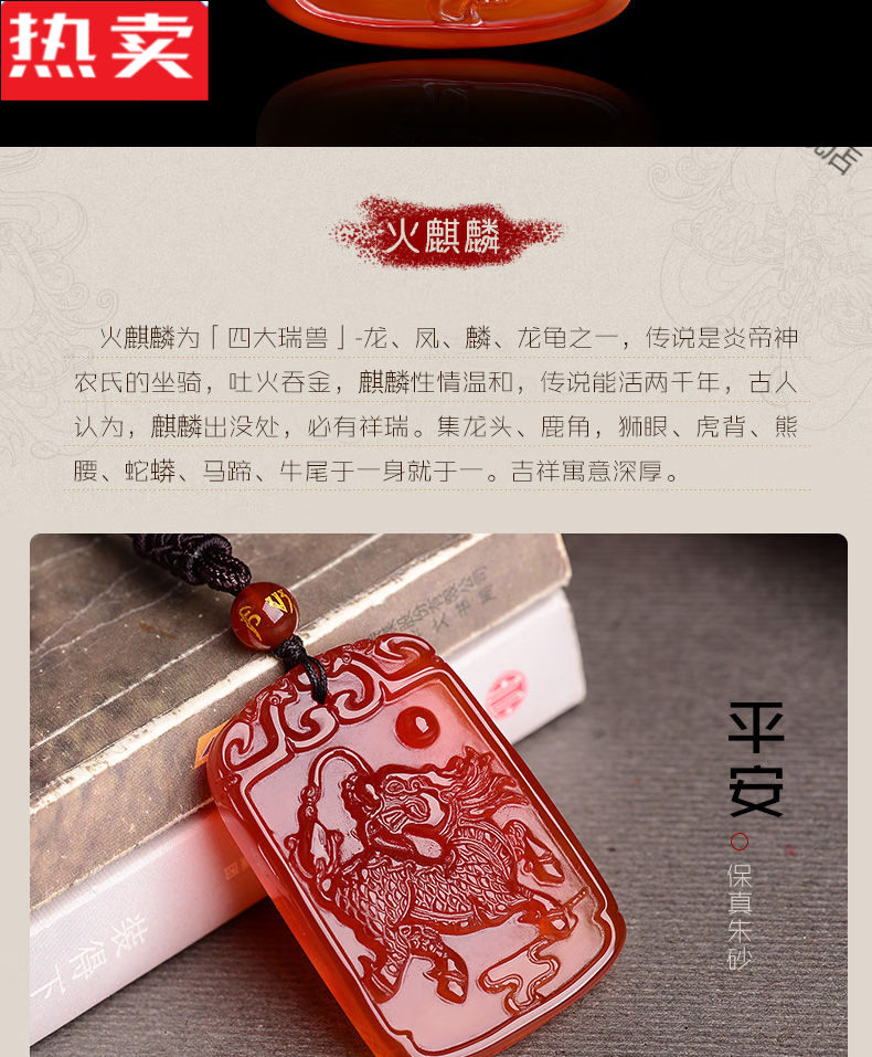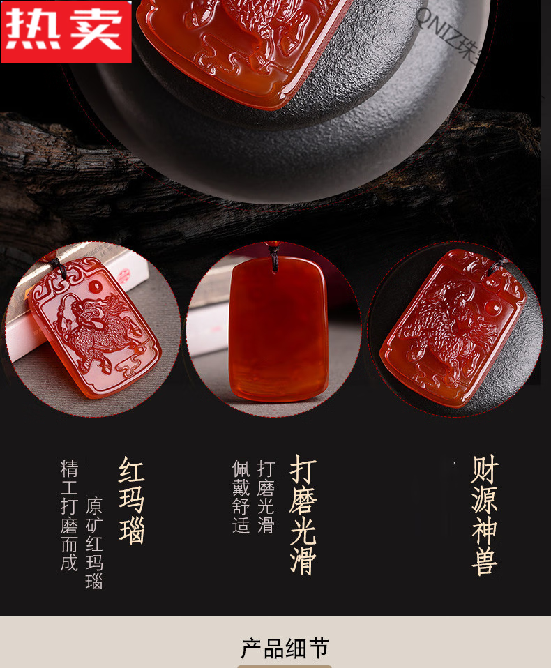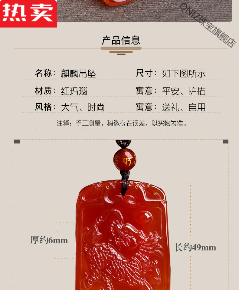 QNIZ Hong Kong and Macau light luxury high-quality fire unicorn red agate five elements missing fire replenishing fire pendant jewelry whose zodiac sign is fire hi red agate fire unicorn (necklace style)