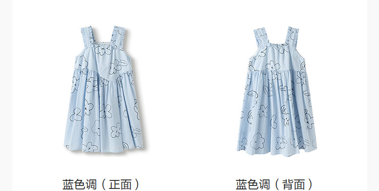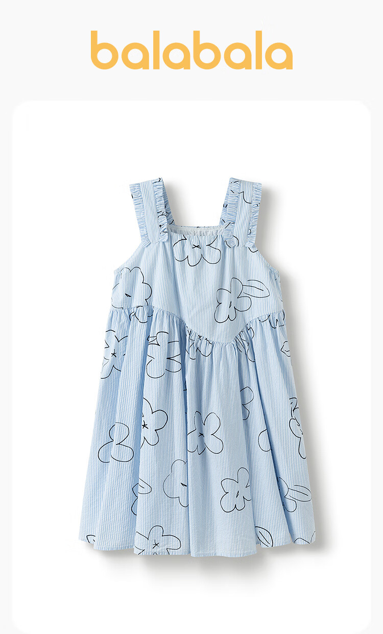 Balabala shopping mall same style girls skirt children dress summer sleeveless vest dress blue tone 00388 130