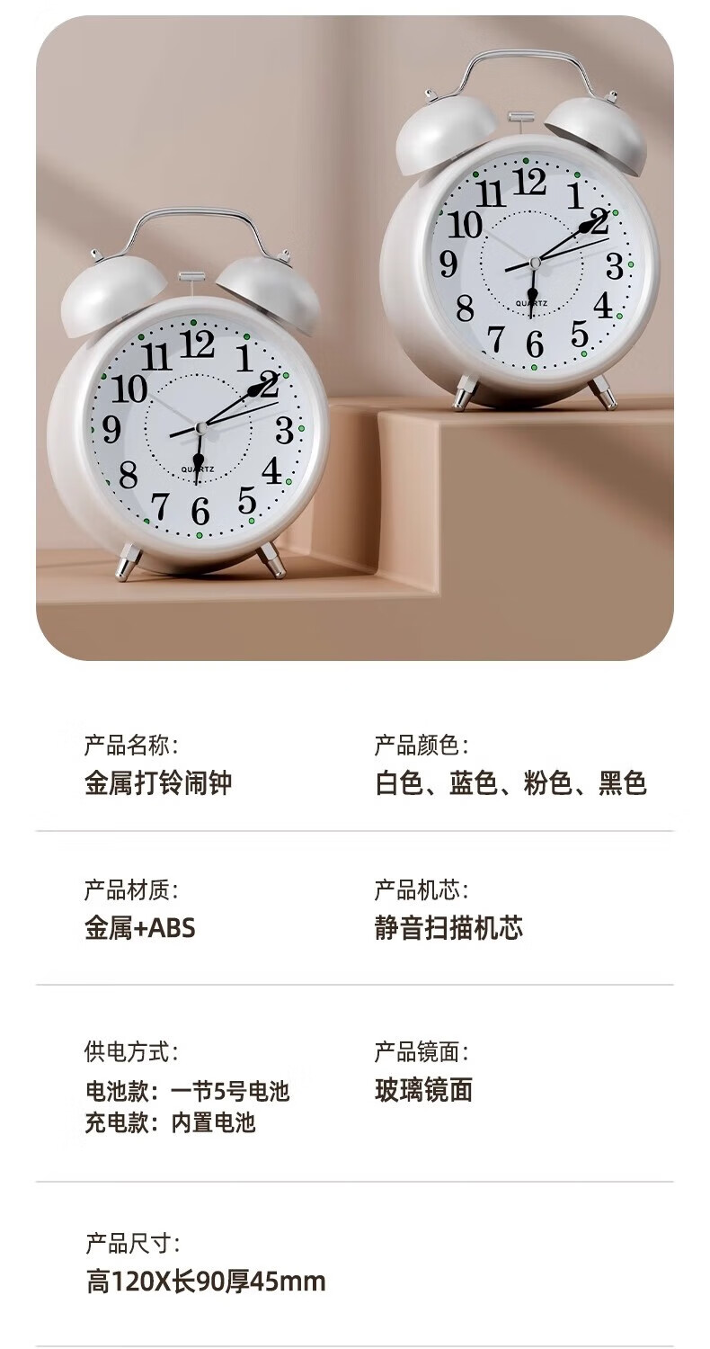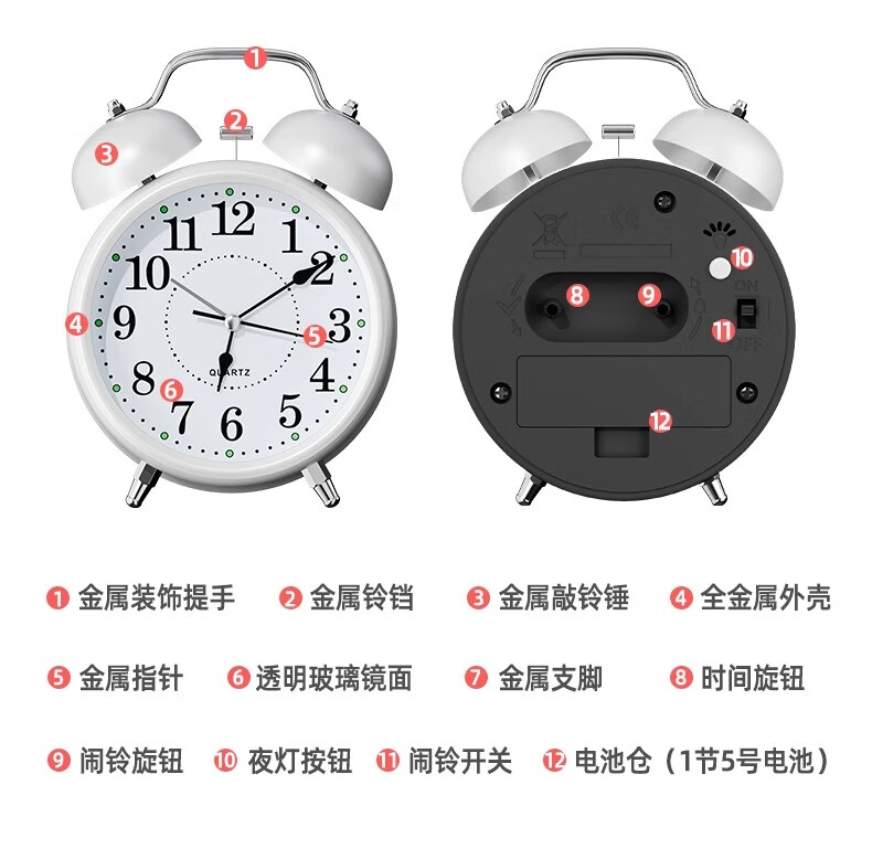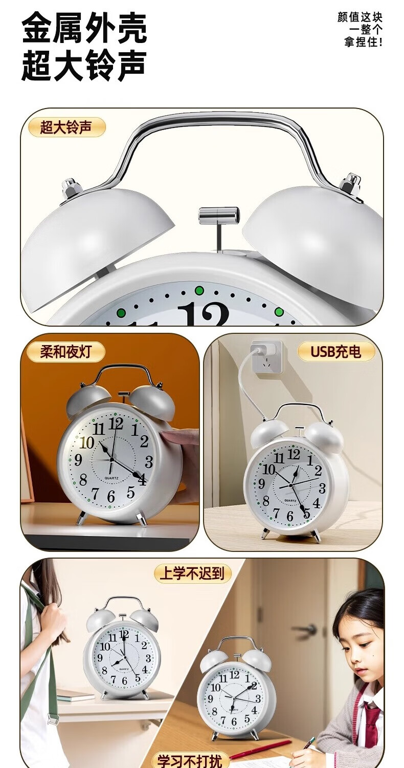 Alarm clock student-specific wake-up artifact 2025 new powerful wake-up for middle school and high school students boys and girls clock small alarm clock - white - 3 inches - 1 piece