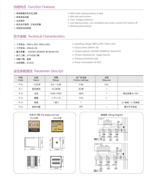 Jiudu JKL58-7 three-phase balanced load reactive power automatic compensation controller 380V