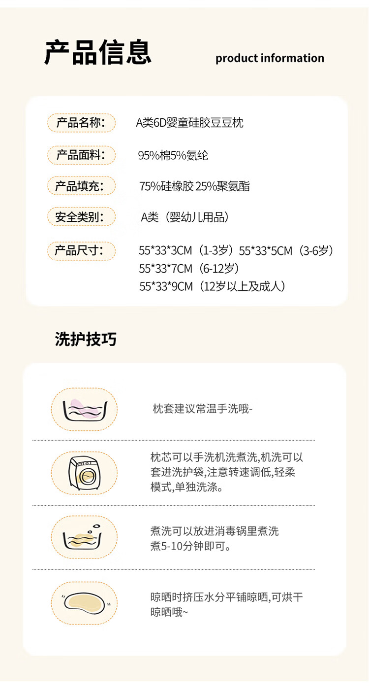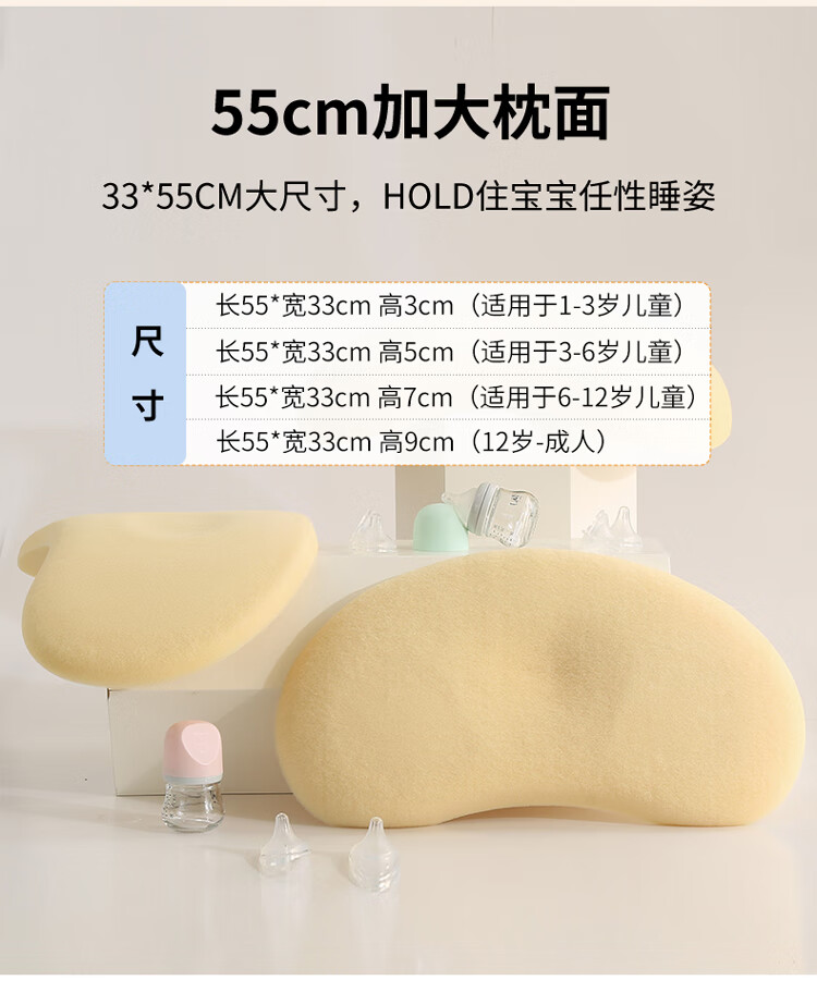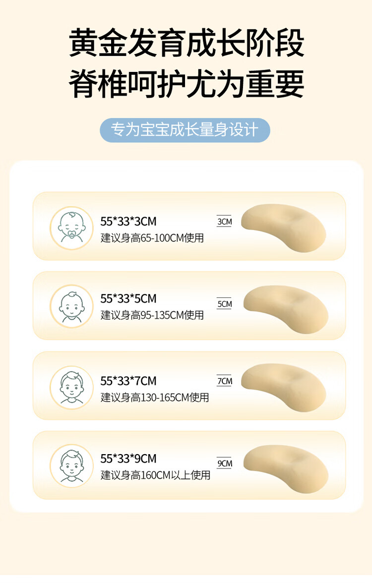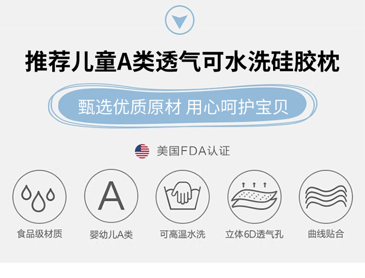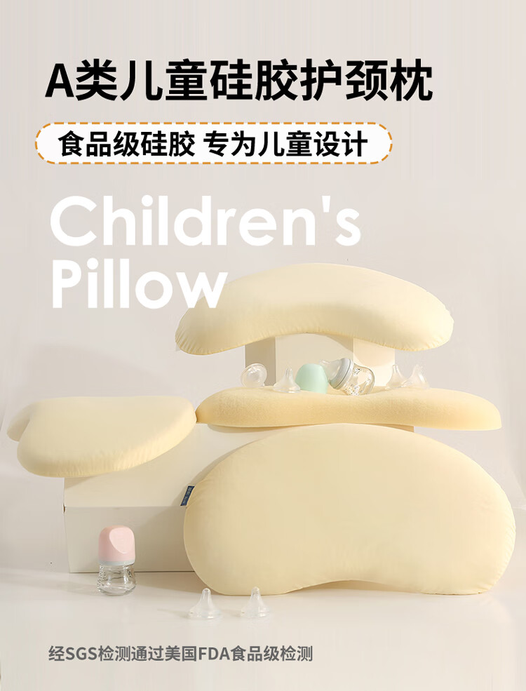 Class A children's silicone pillow 0 to 6 years old baby neck protection washable infant kindergarten primary school student pillow core 3-5cm 0-6 years old solid color Ji Fanxi-Fangcao Green 55*33*3cm 1 piece