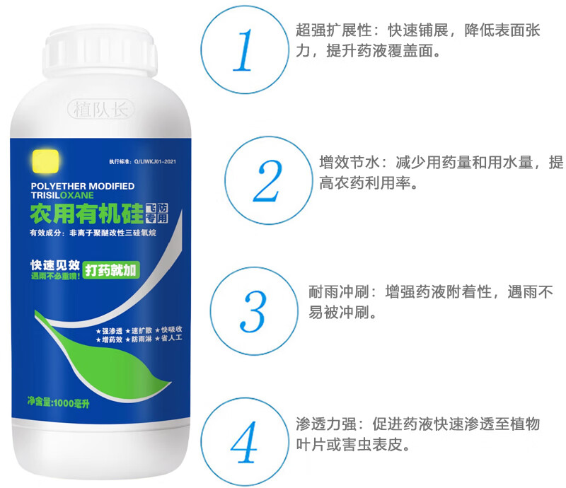 Organic silicone additive synergist, high-efficiency, high-penetration agent, pesticide auxiliary, agricultural genuine, rain-resistant and long-lasting, 1000 ml * 2 bottles (high purity)