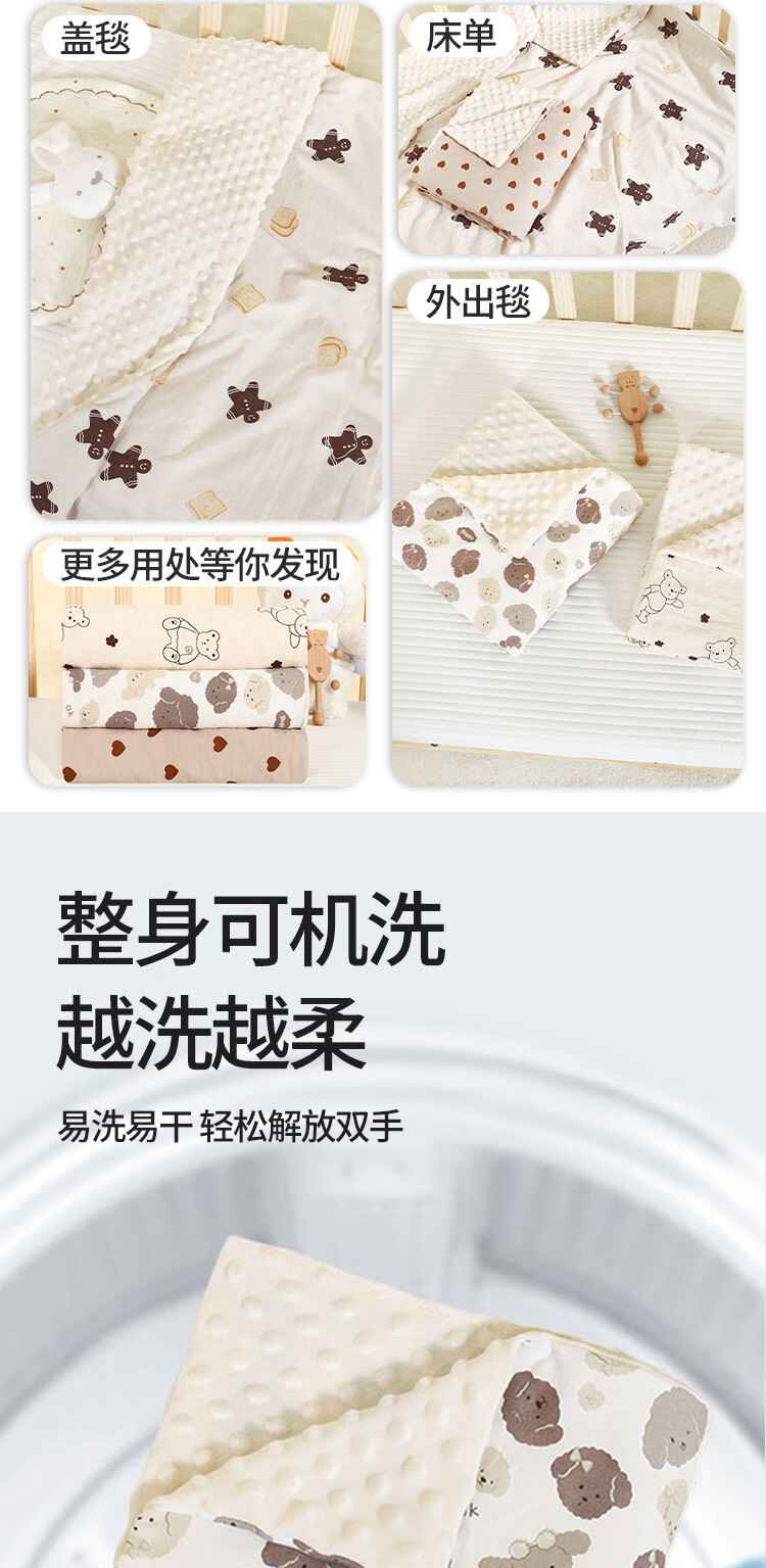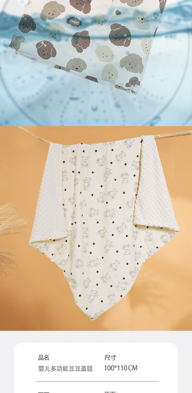 Newborn baby blanket, beanie air-conditioning gauze, nap, newborn summer baby thin kindergarten children's quilt, soft and waxy skin-friendly soybean quilt, hug bear