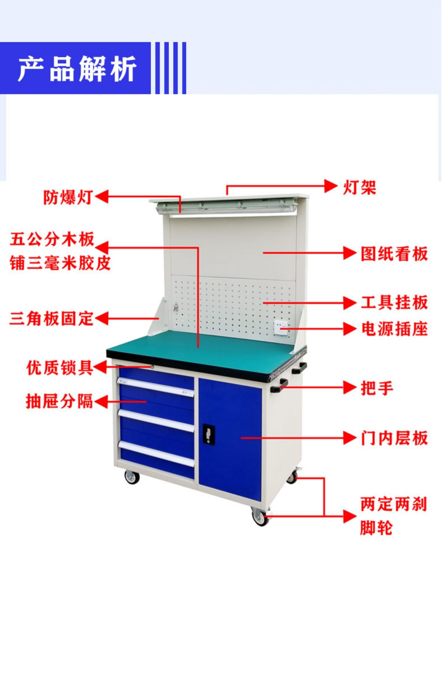 Kezitu tool cart tool cabinet combination tool drawing measuring tool storage machine tool inspection table rubber stainless steel table 650*400*900 high blue