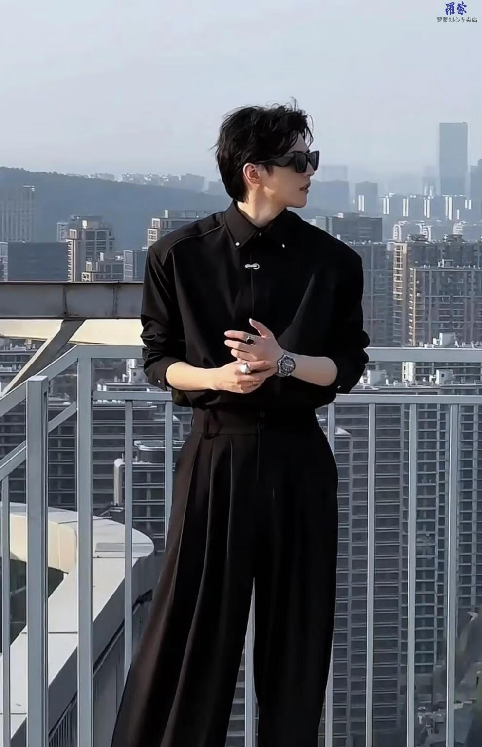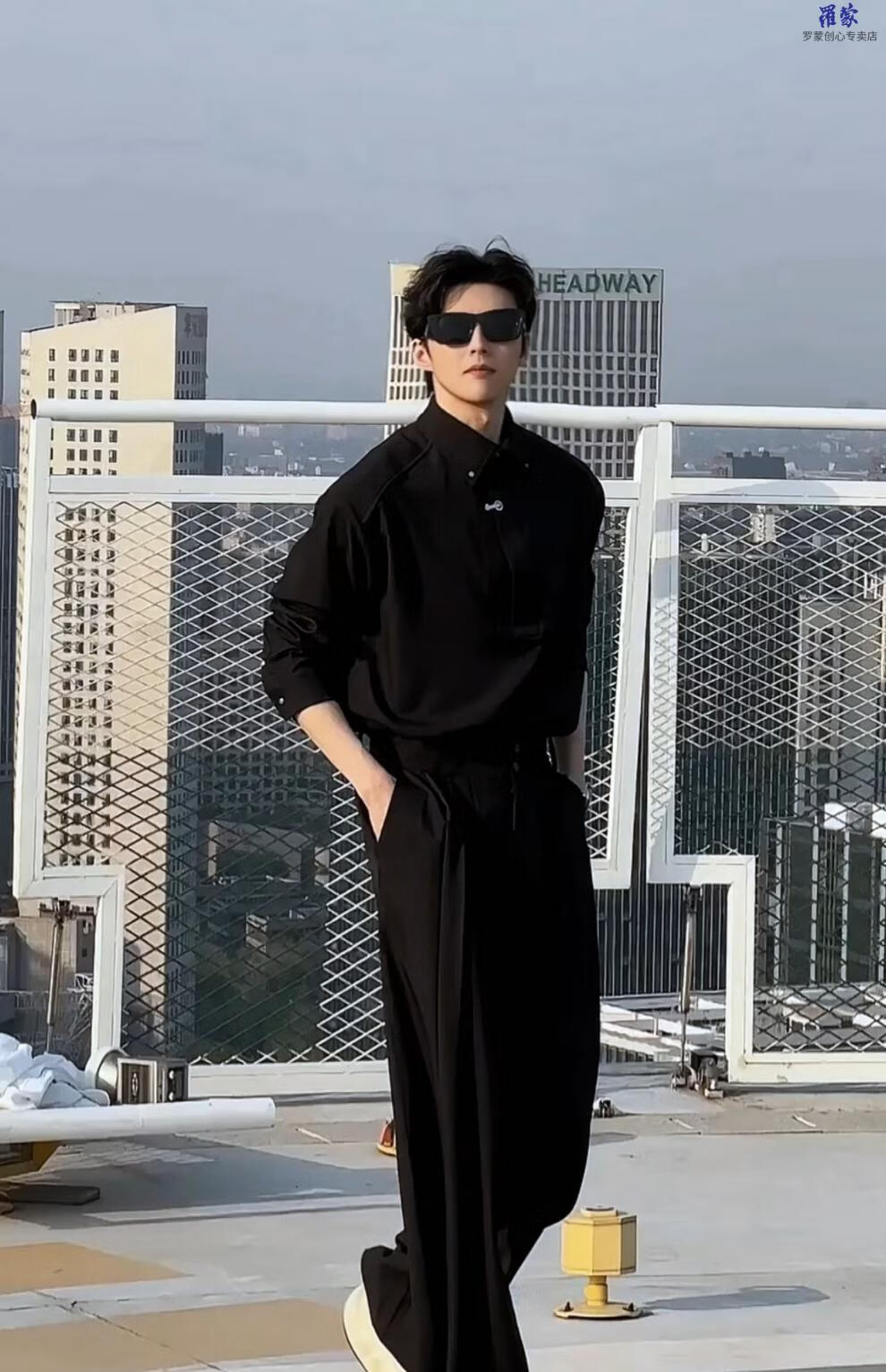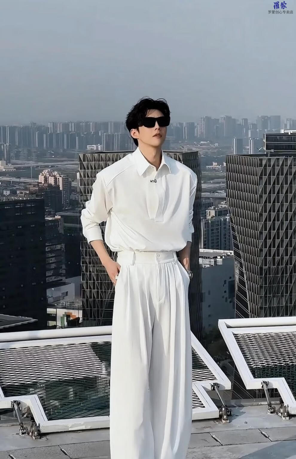 Luo Meng spring and summer high-end trendy brand suit designer simple shirt casual loose shirt trousers Pishuai original trendy white top XL 150-175Jin Jin is equal to 0.5 kg