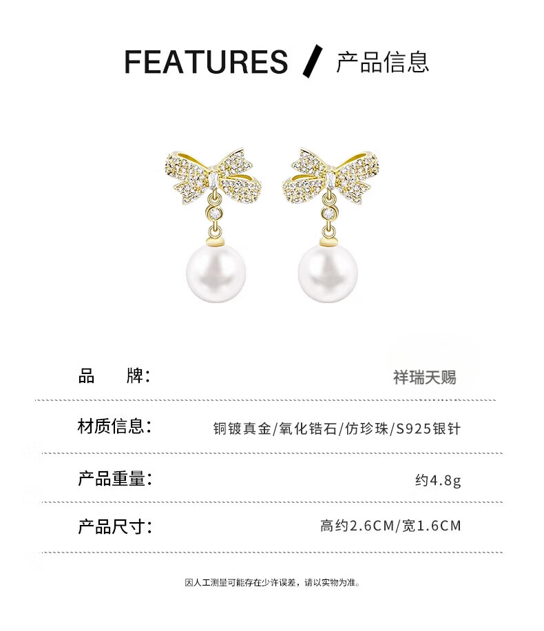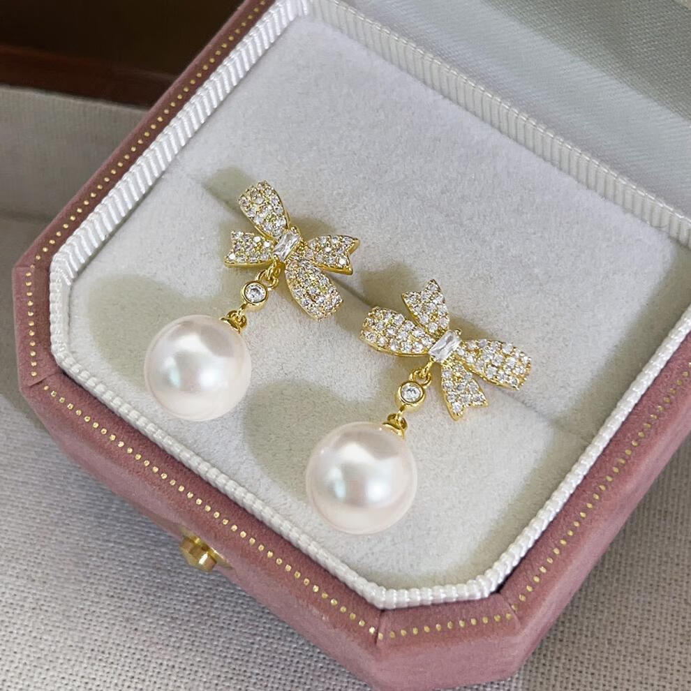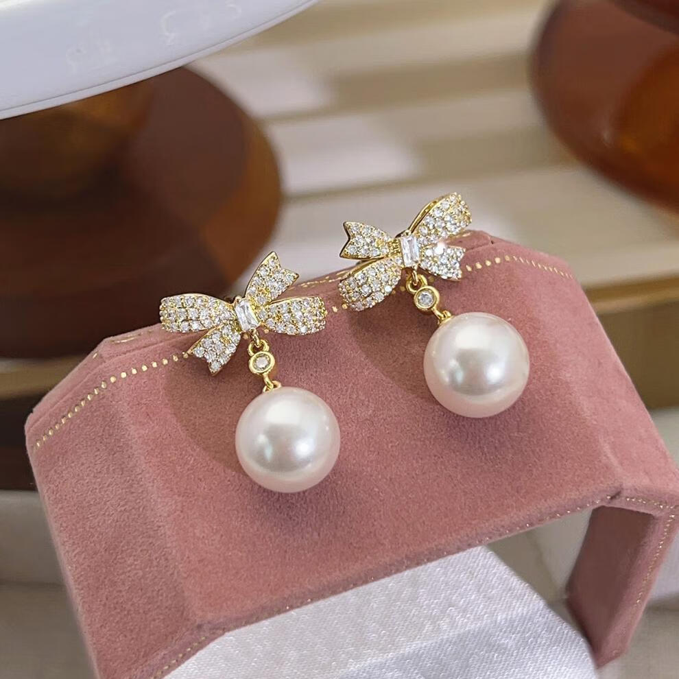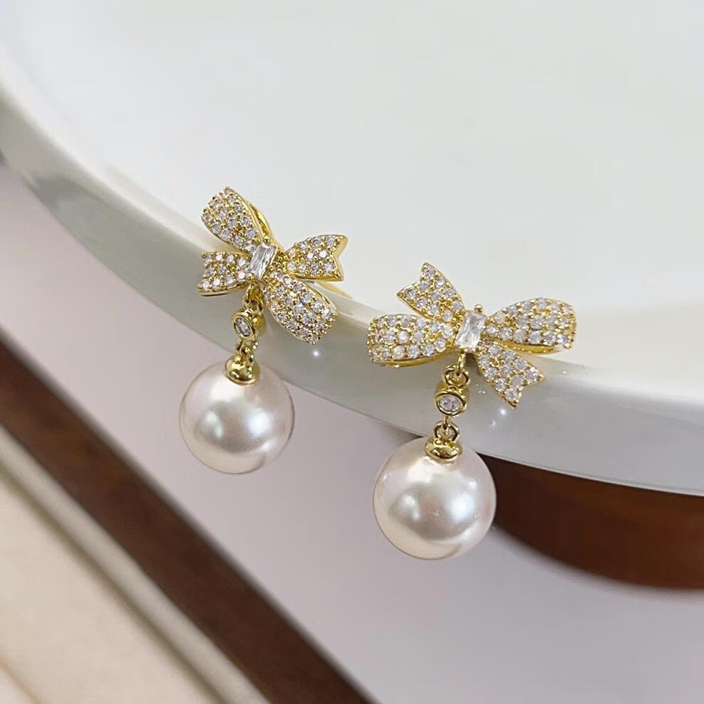 Auspicious God-given Sparkling Diamond Bow Pearl Earrings 2025 New Ear Clip Feel Sterling Silver Earrings Niche Design Earrings Bow Pearl Earrings for Women