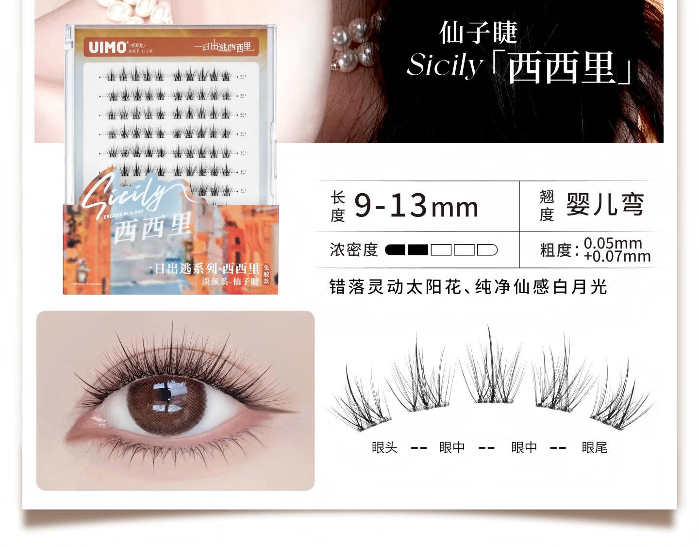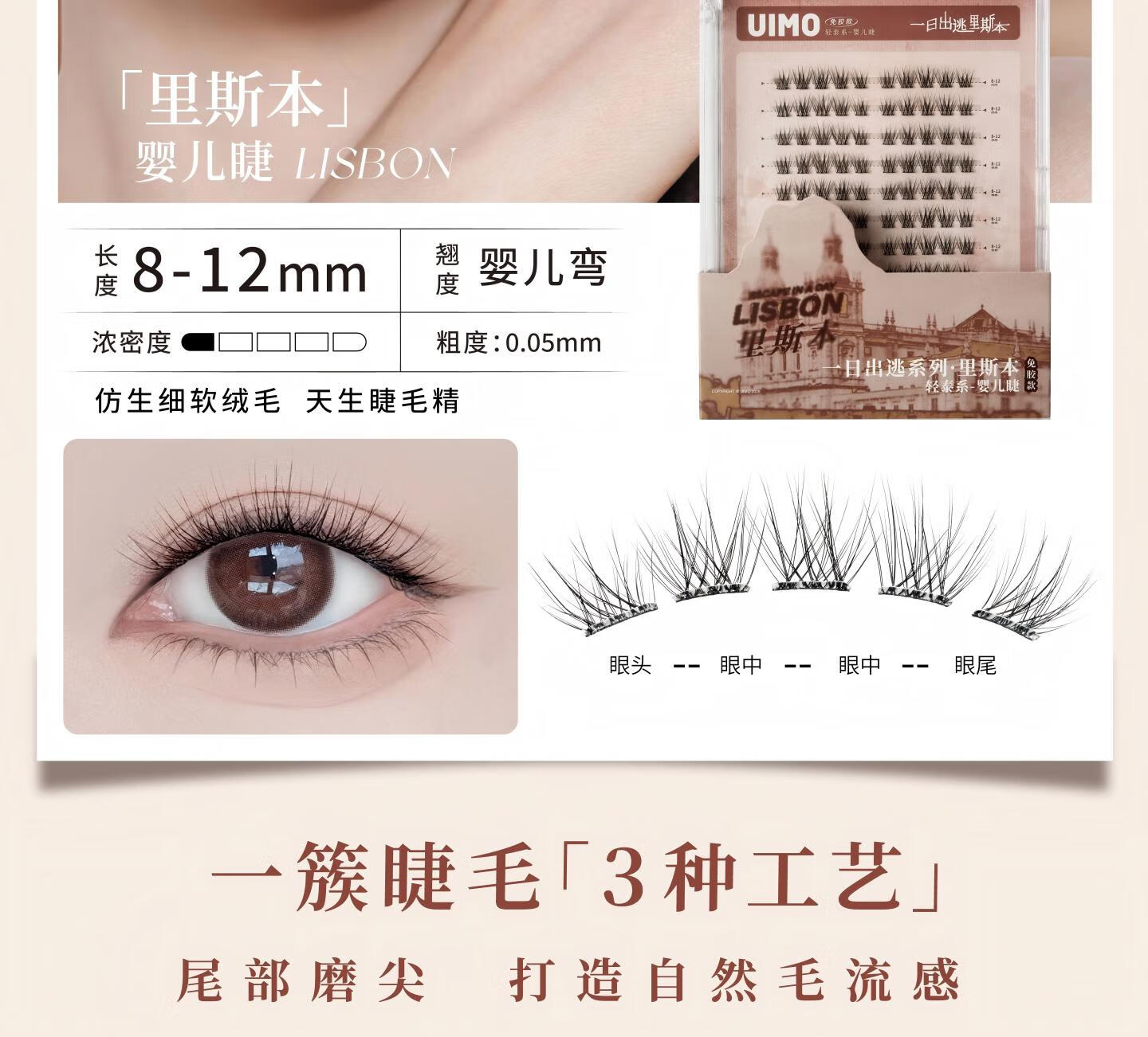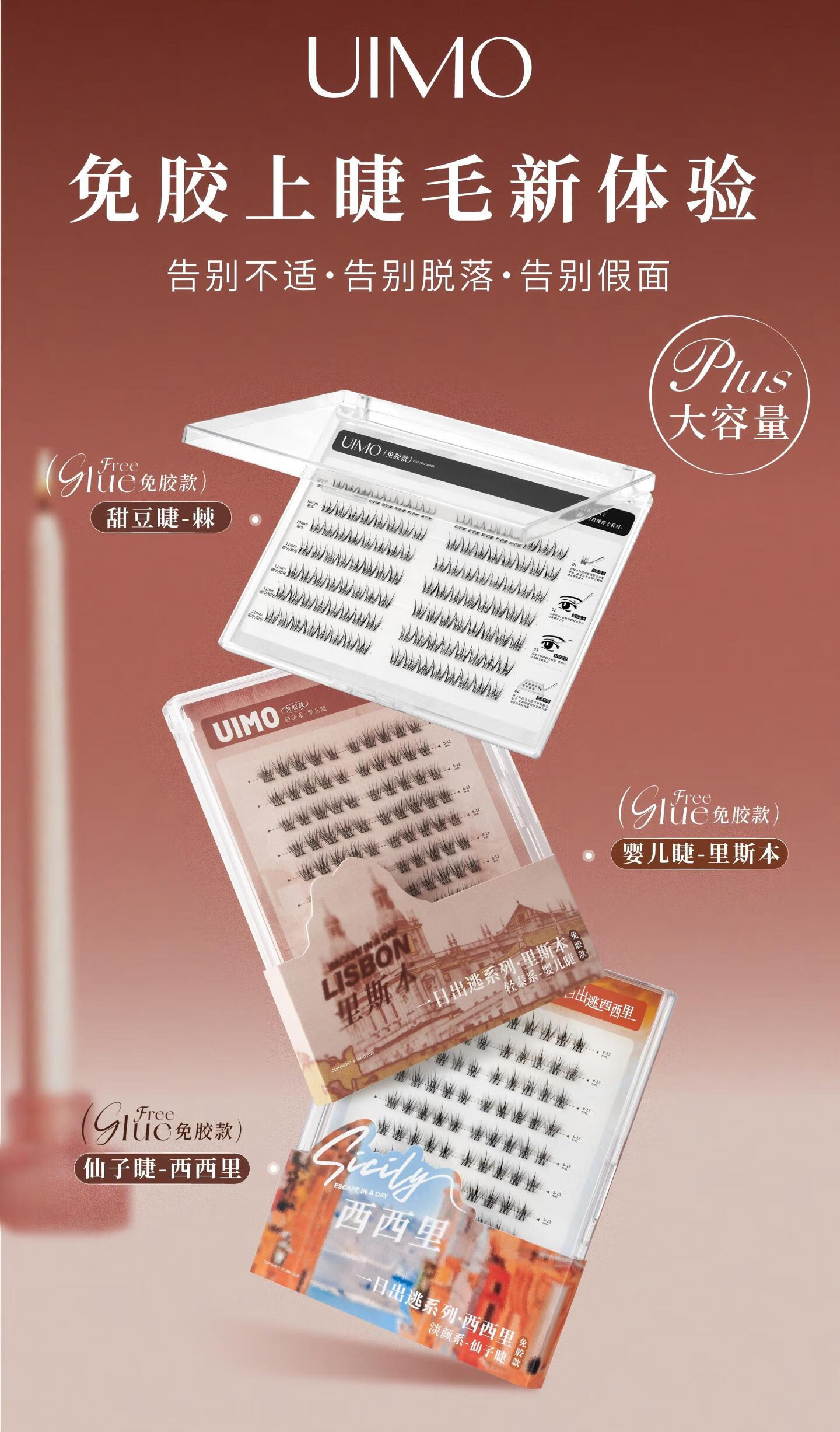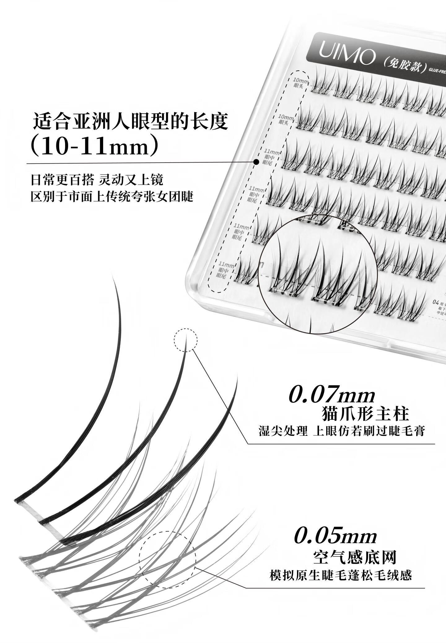 UIMO Hanikezi's same style Lisbon glue-free false eyelashes segmented natural simulation transparent stem large capacity Hanikezi's same style Crescent Spring*1 112 clusters