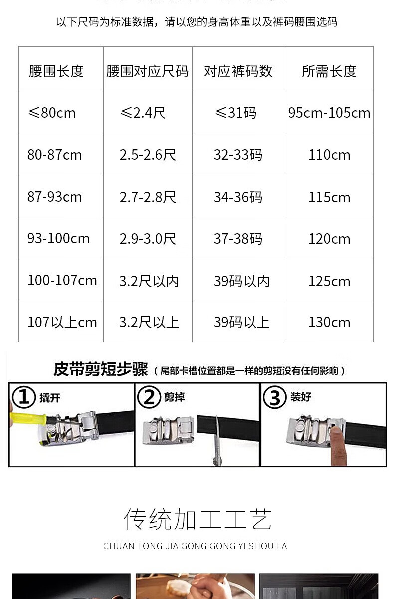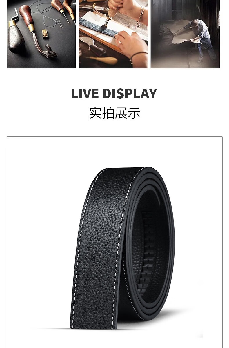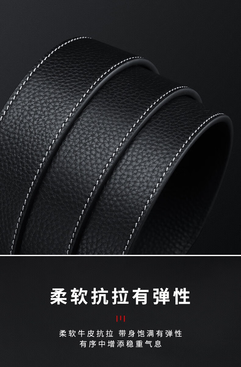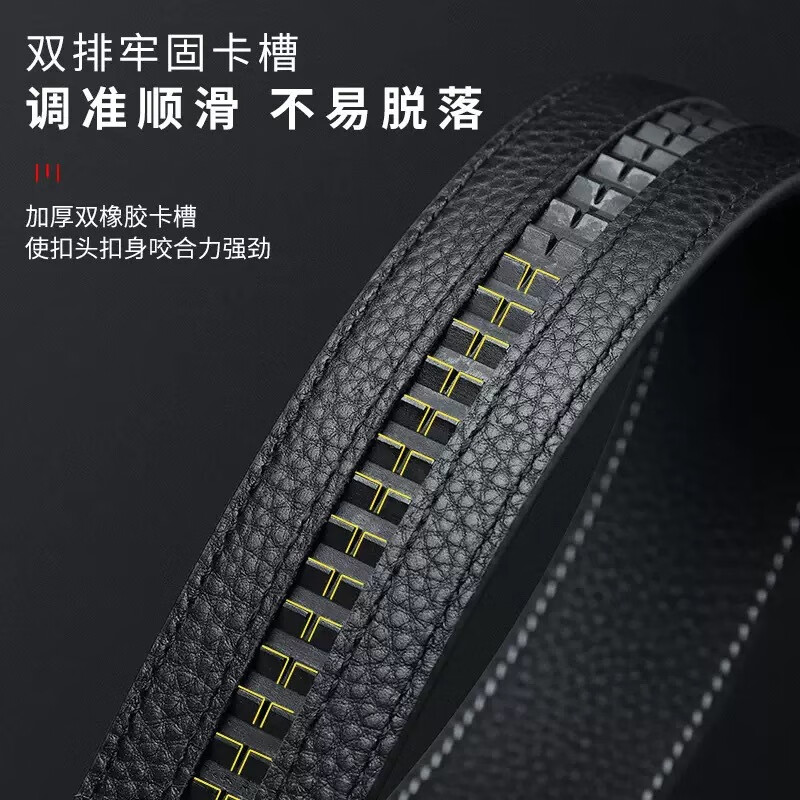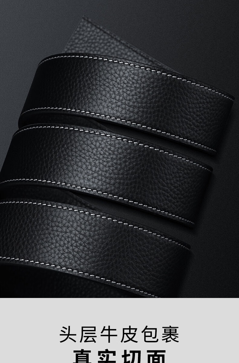Men's belt cowhide strip versatile business formal belt trendy high-end real belt black belt accessories black 130cm