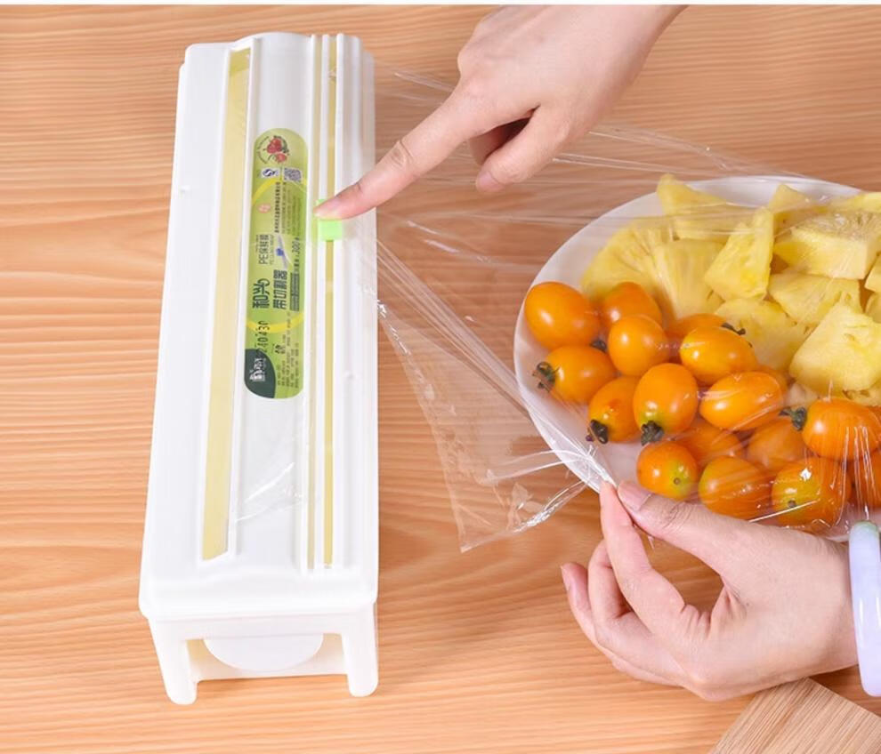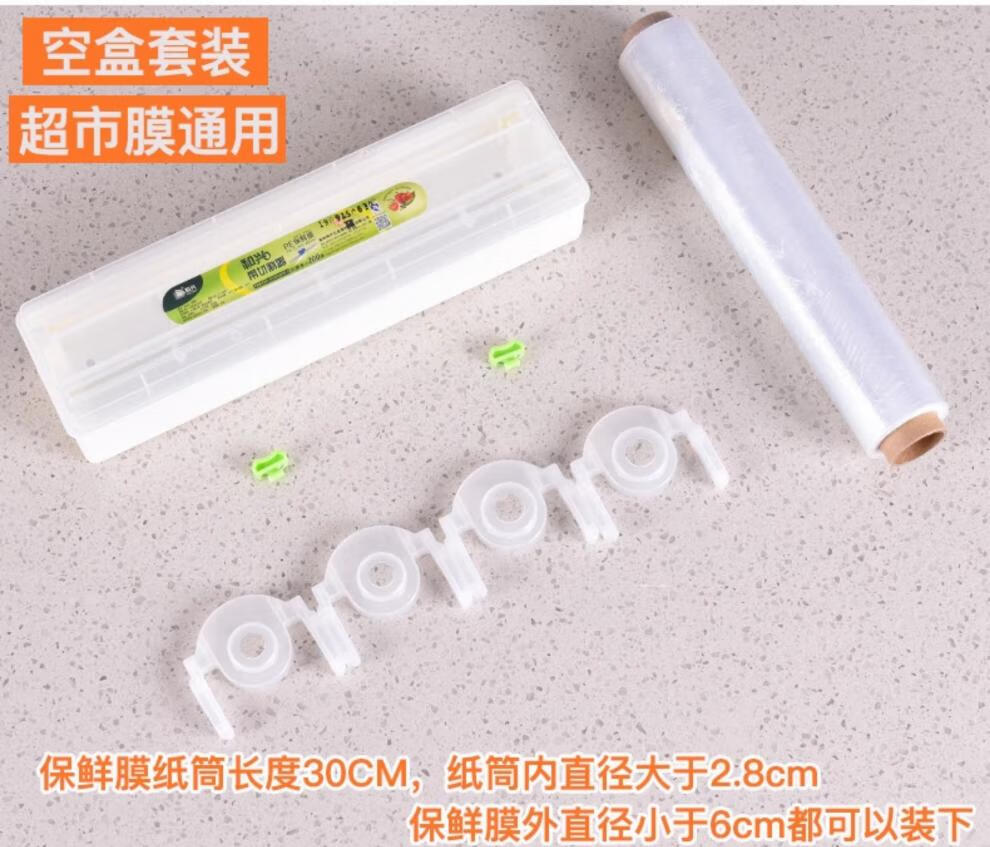 Tuojin German imported quality kitchen food cling film PE cutter dividing box large roll commercial home household food ~ about 0.85 kg_30cmX300 meters with lid PP 1