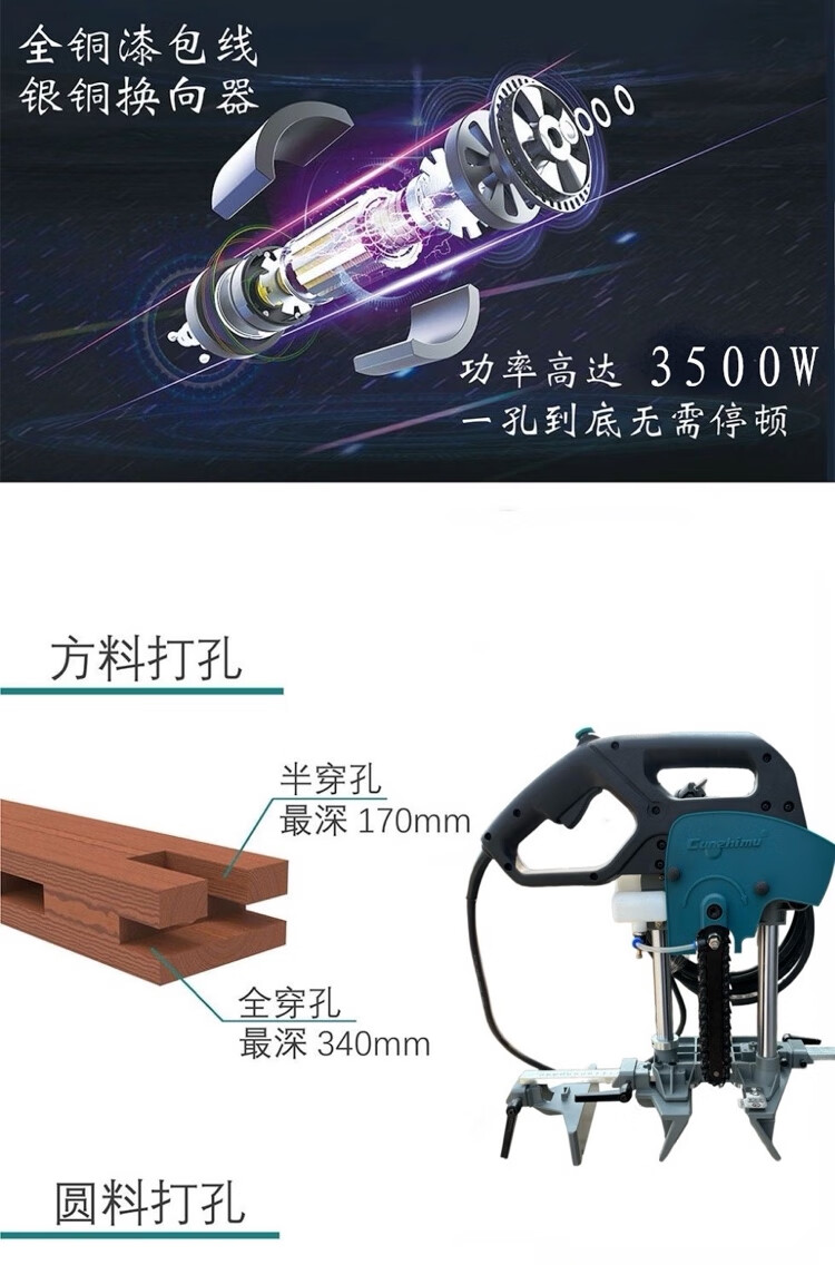 Inchwood woodworking portable ancient building pavilion punching machine mortise and tenon machine square hole machine chain saw 17 cm brushless motor 1 chain
