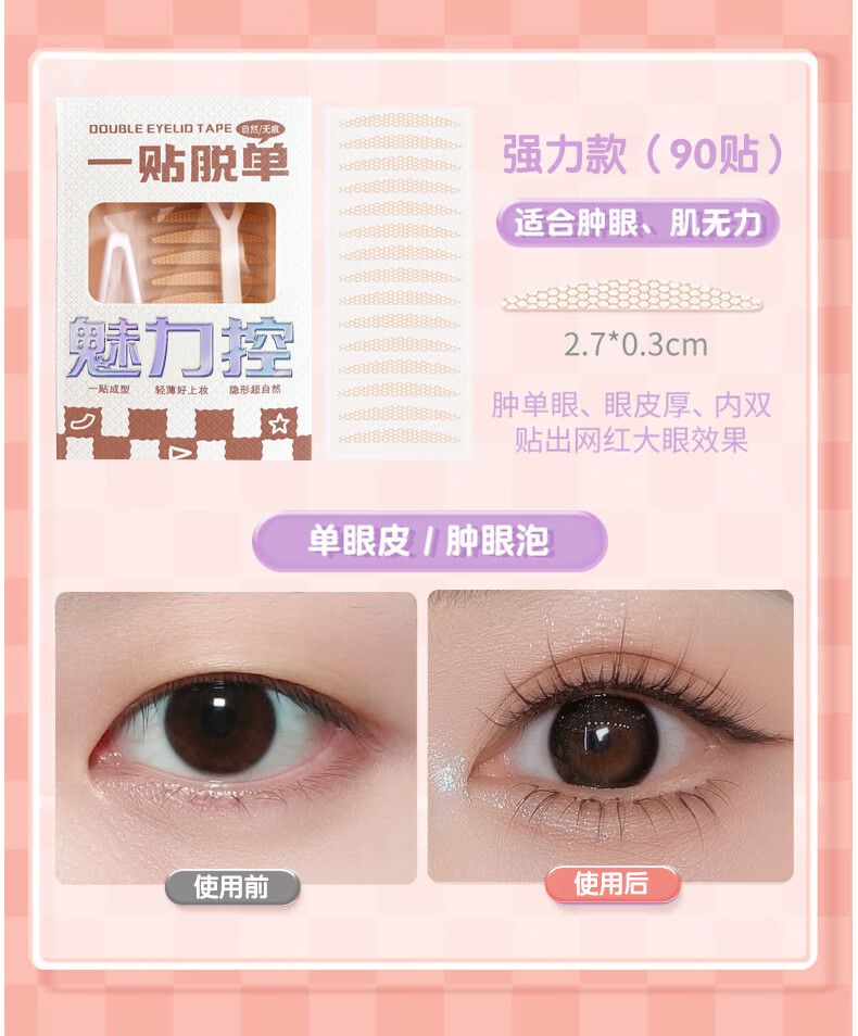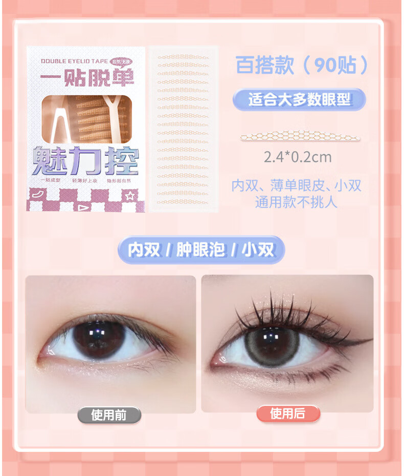 Seamless Invisible Double Eyelid Sticker, Natural and Thin, Large Eye Beauty Sticker, Double Bubbled Eyelid Beauty Makeup Tool, Natural and Thin, L Strong Style, 90 Pieces