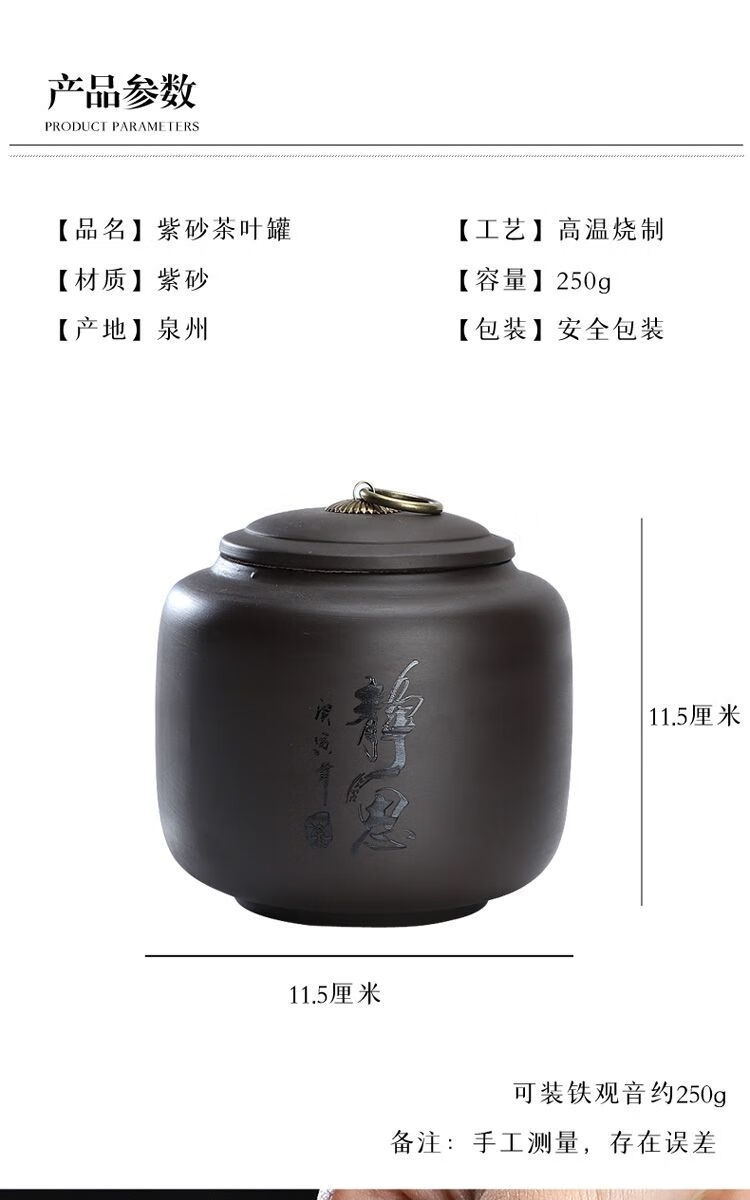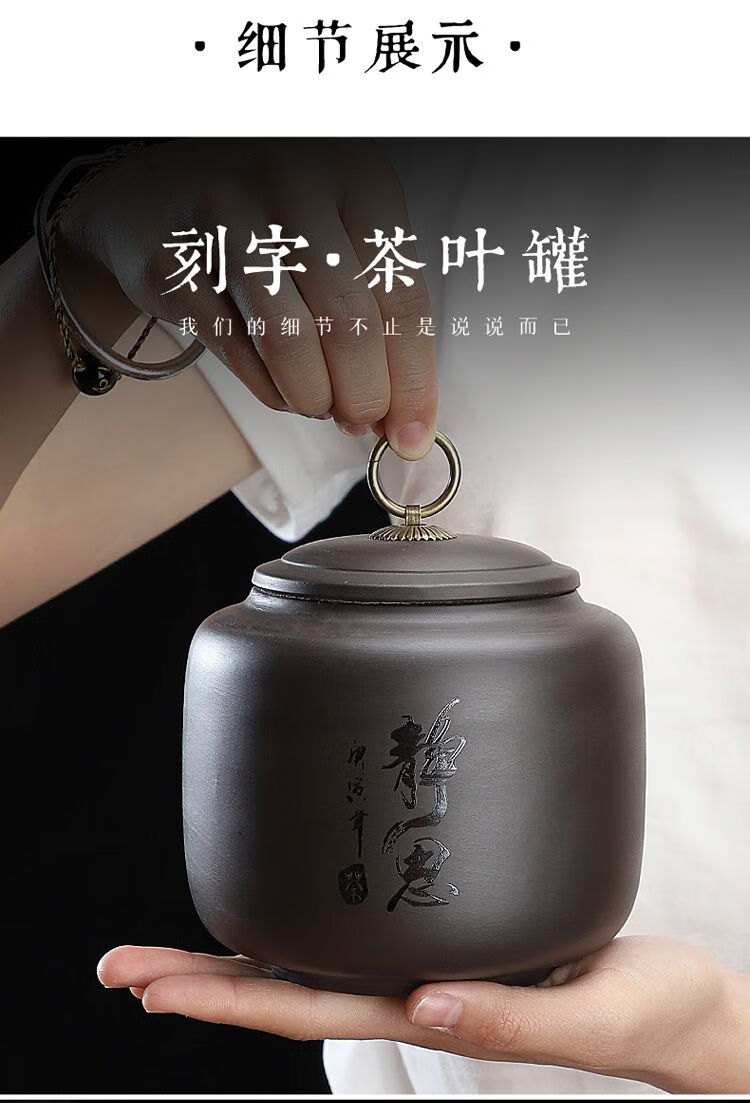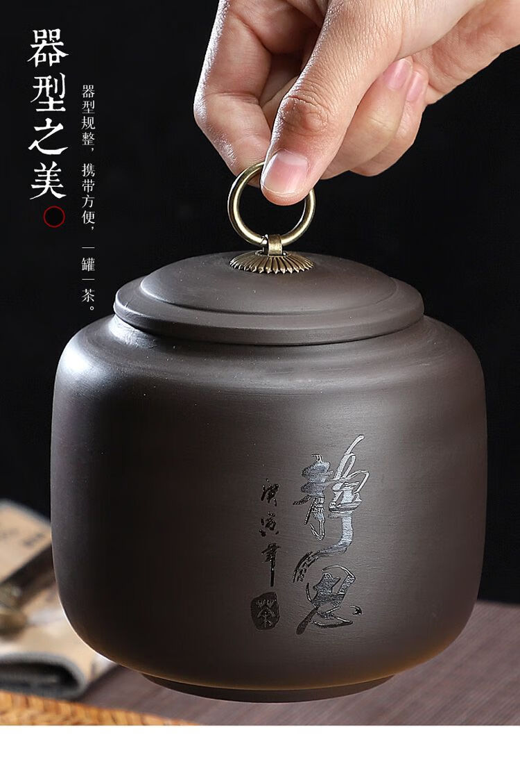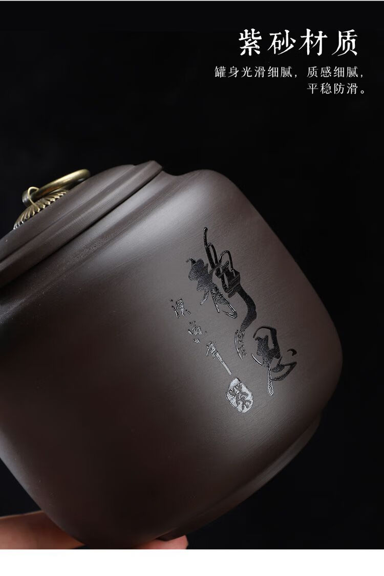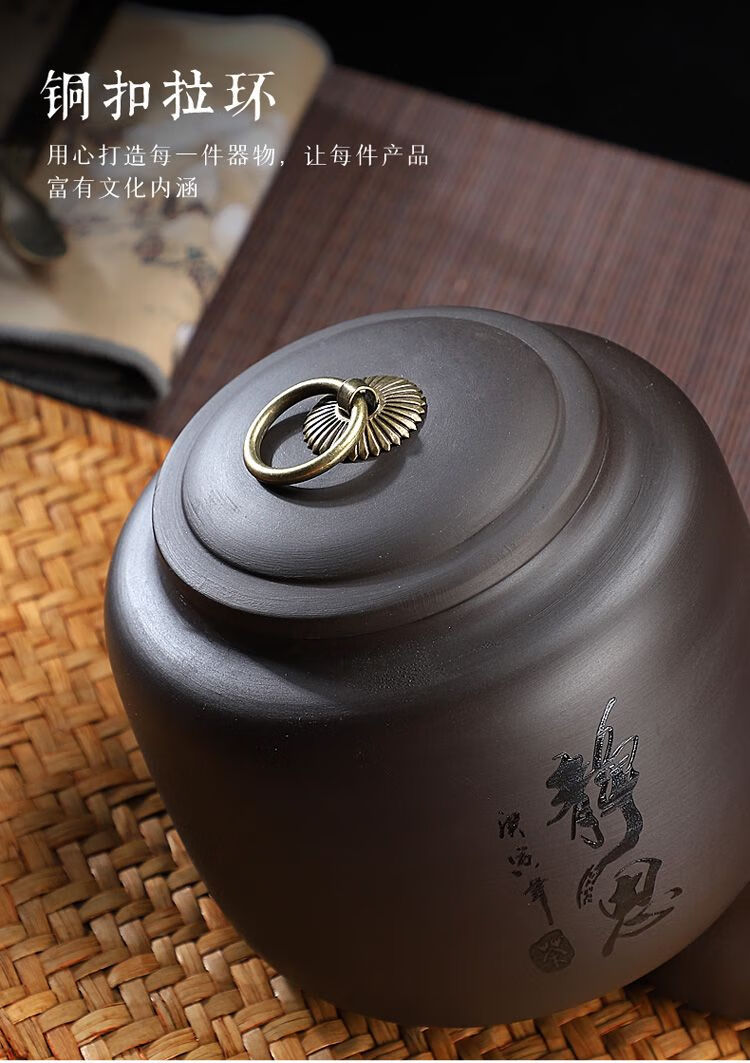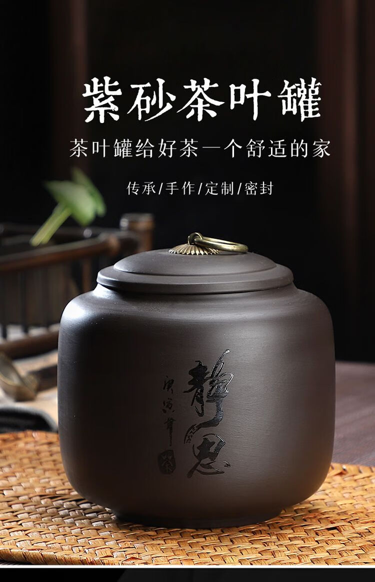 Tea cans, high-quality purple sand cans, medium and large ceramic sealed cans, retro Pu'er storage tea cans, purple sand auspicious tea cans, bamboo