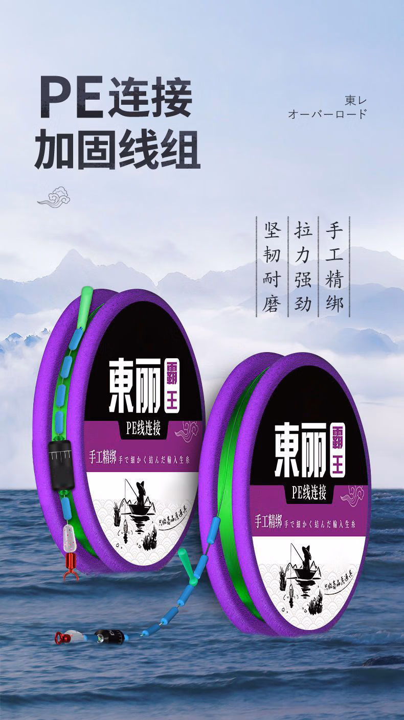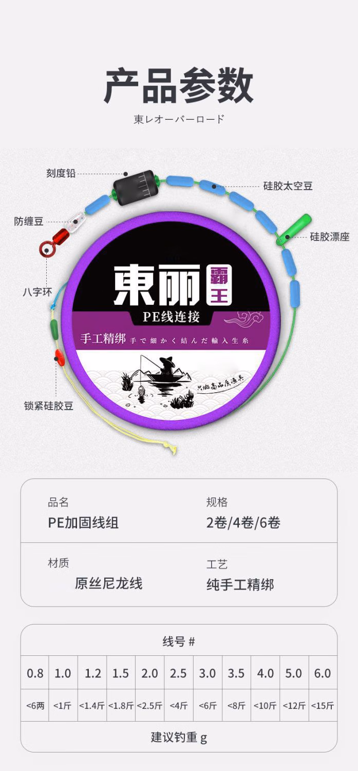 Huaiguoying PE knotted strong horse line product main line group tied fishing line line group set complete set of high-end handmade PE reinforcement-handmade finely tied 3.6 meters eight-figure ring style Toray 1 roll package No. 5.0