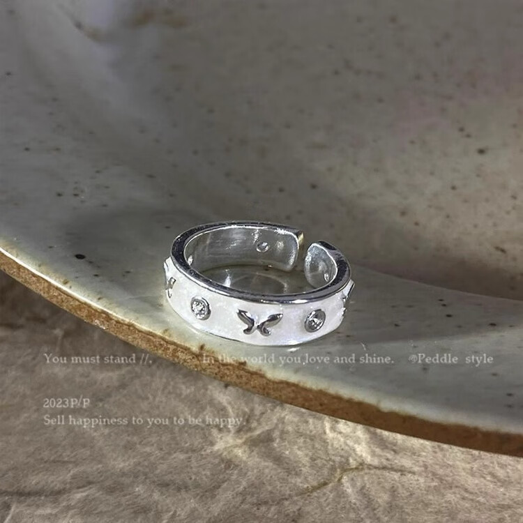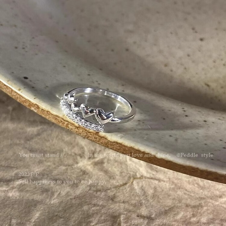 Pure white love three-piece ring set for women 2025 new popular couple bestie ring ins niche index finger ring ring three-piece ring set