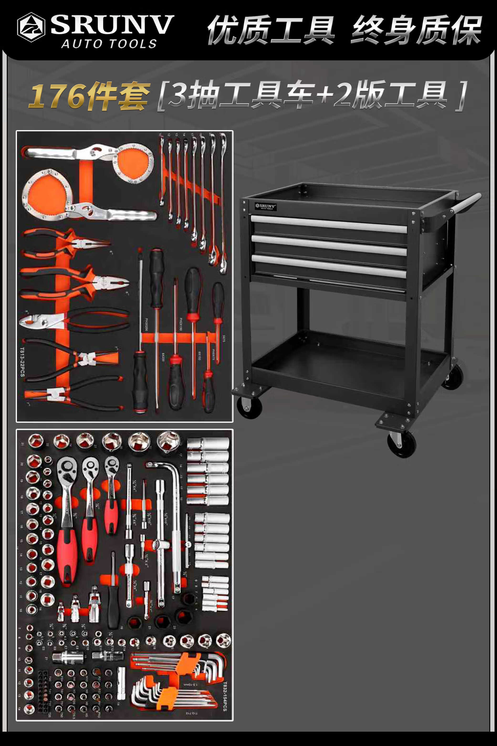 Huili Auto Repair Tool Cart Set Complete Set of 176 Pieces Industrial Grade Mobile Drawer Tool Box Heavy Duty Tools 176 Pieces + 4 Layers Red Tools