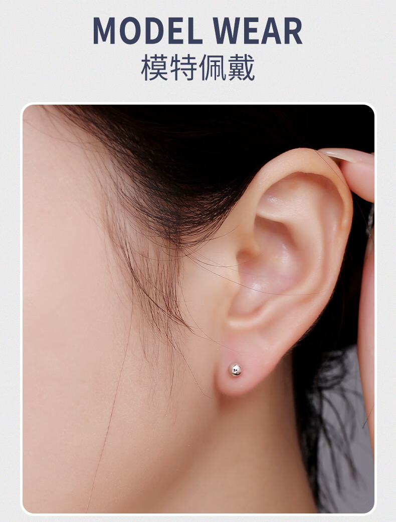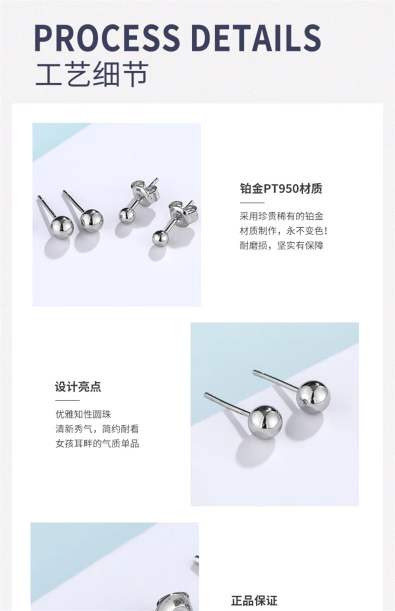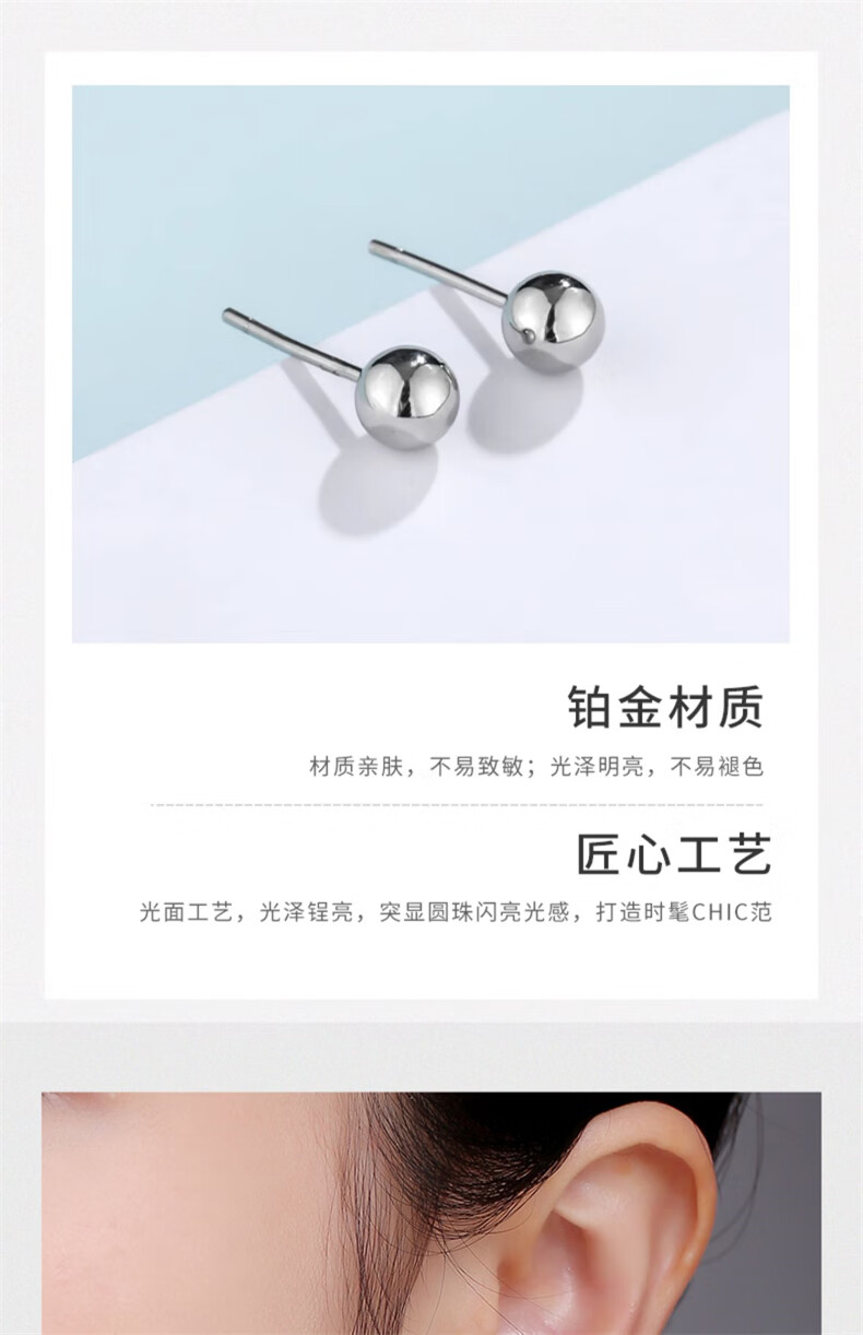 Aiyu platinum earrings pt950 female 950 platinum earrings pure platinum earrings for ear piercing small golden beans small size (3mm) pair