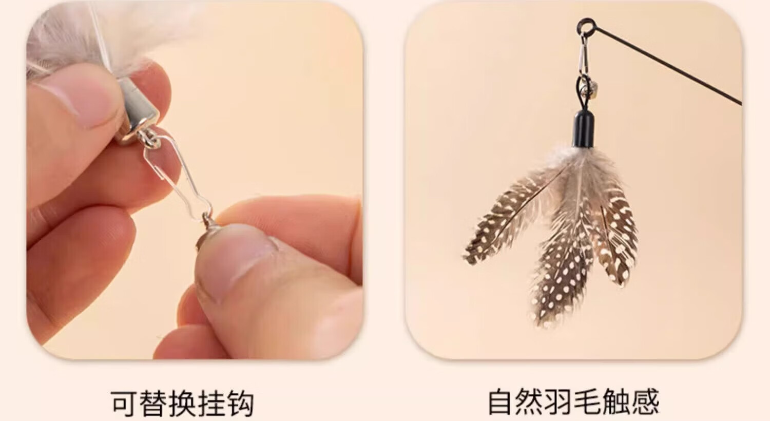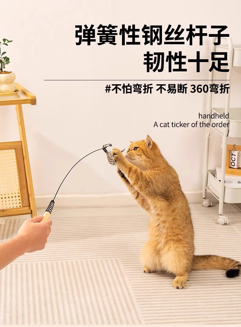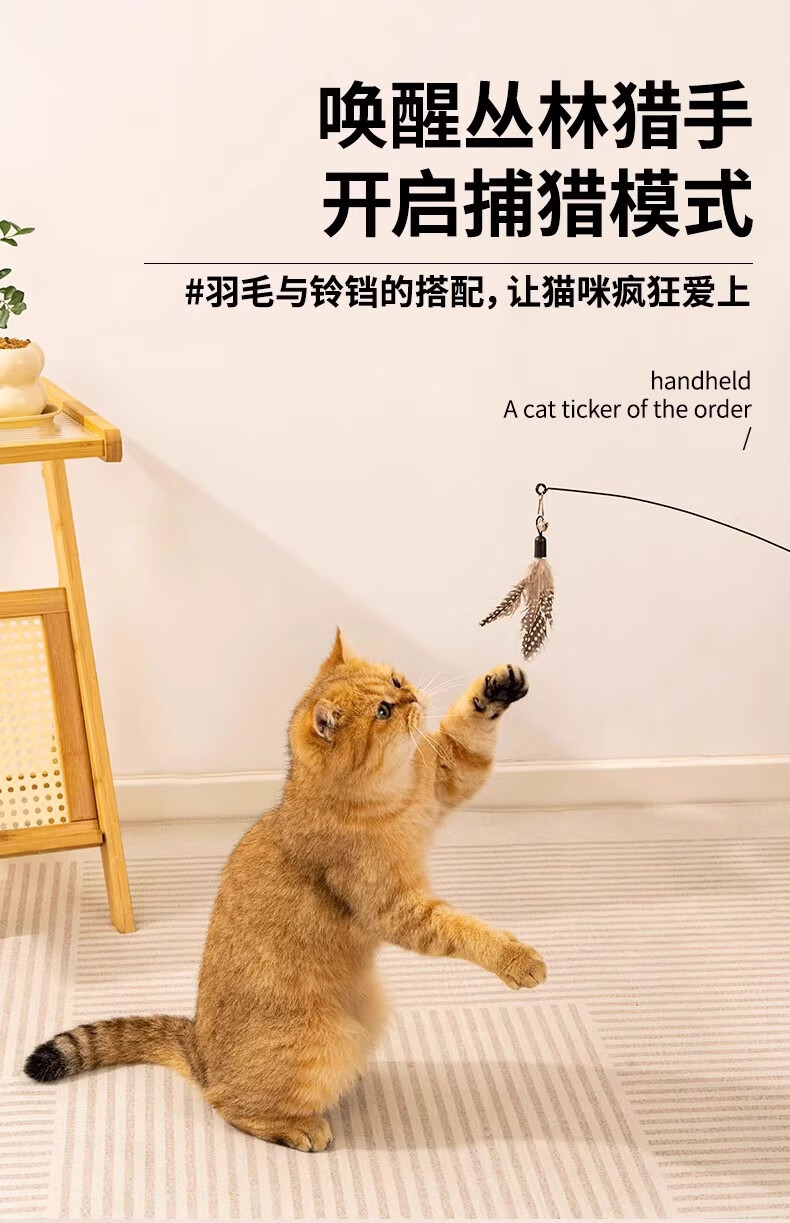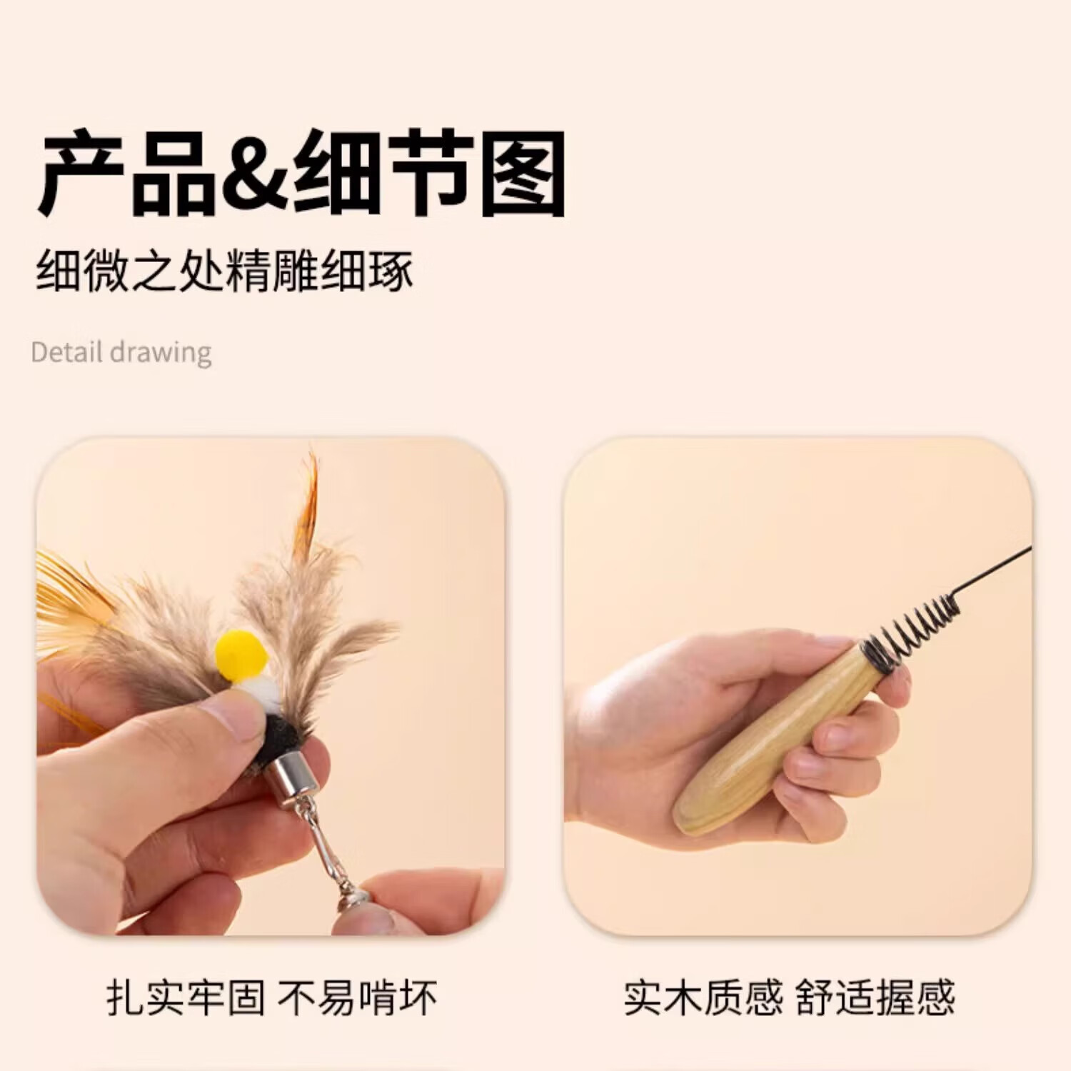 Qioh CFA competition level cat toy cat toy small flying insect feather replacement head resistant to scratching and biting kitten supplies self-entertainment to relieve boredom cat toy + small flying insect replacement head * 3