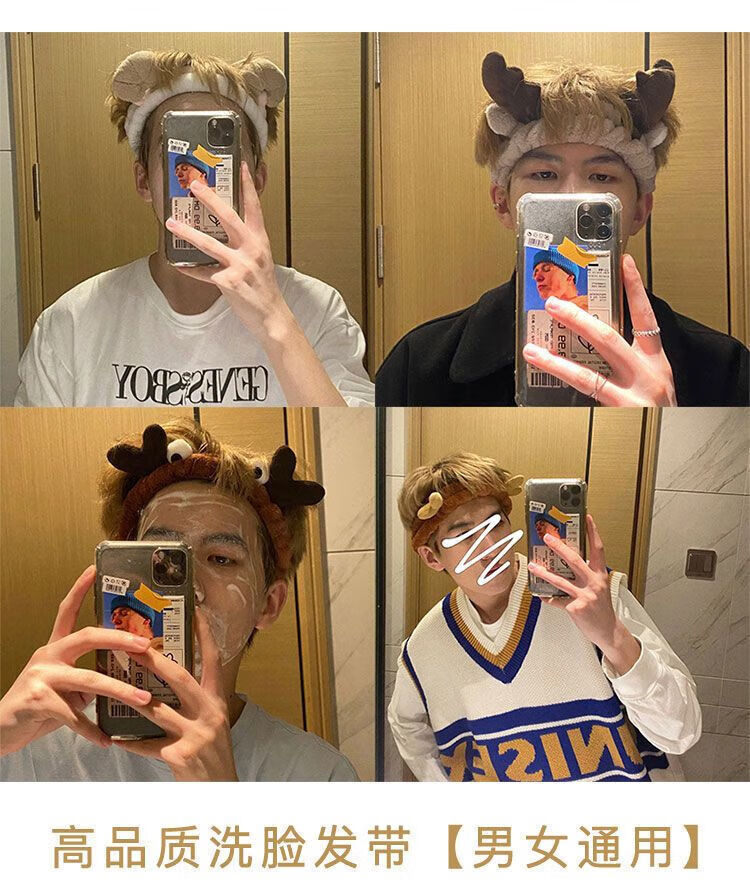 Sheng Lan Face Wash Hairband Men's Facial Mask Wash Hairband Women's Headwear Makeup Skin Care Anti-Slip Pressure Hairband Headband Face Wash Hairband Coffee Antlers