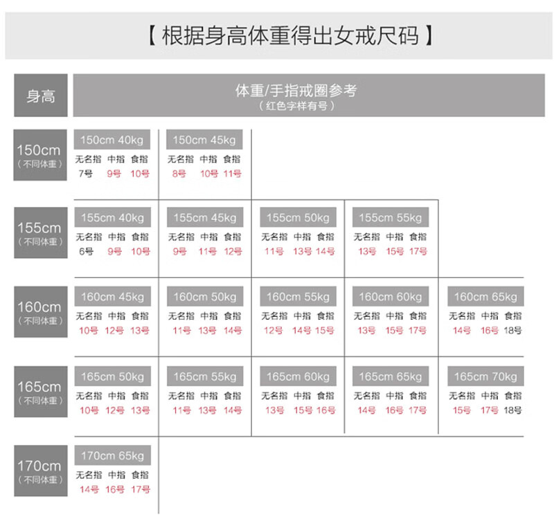 China (cm) 160-165/84-86 165-170 / 88-90 167-172 / 92-96 168-173 / 98-102 170-176 / 106-110