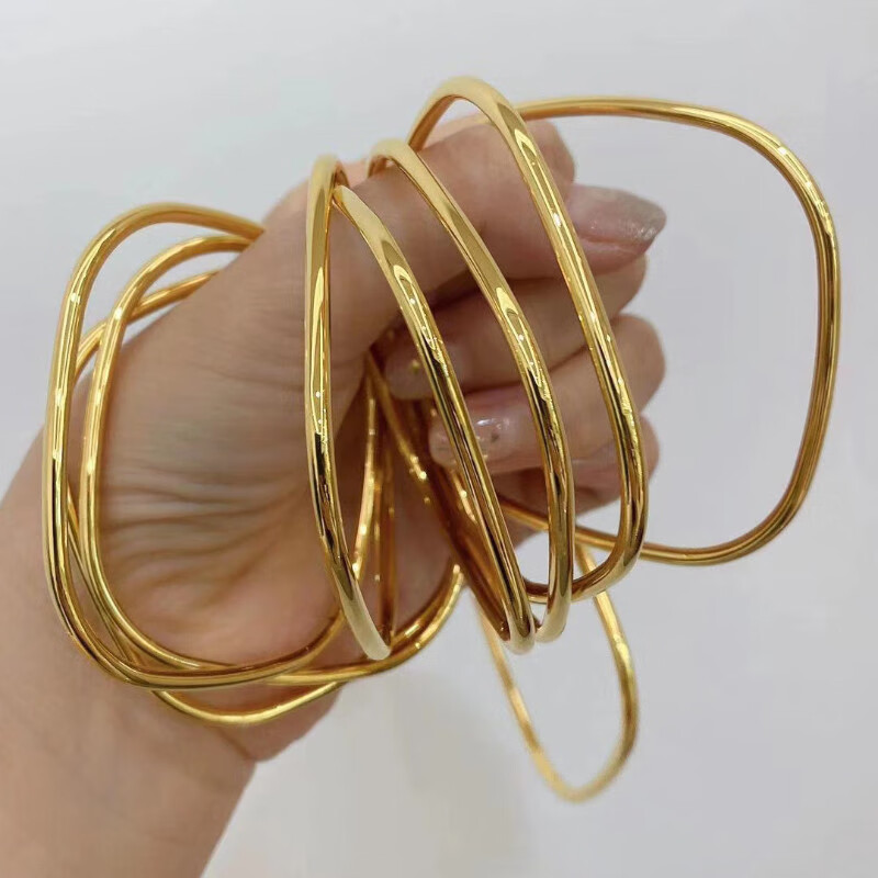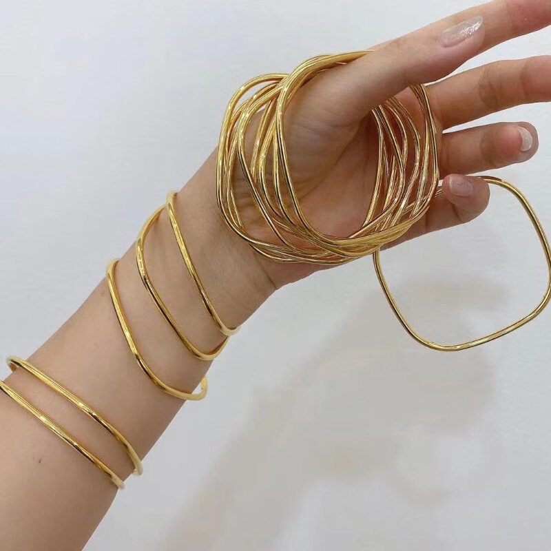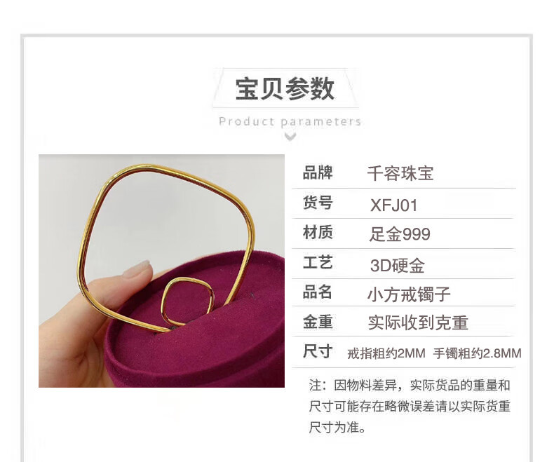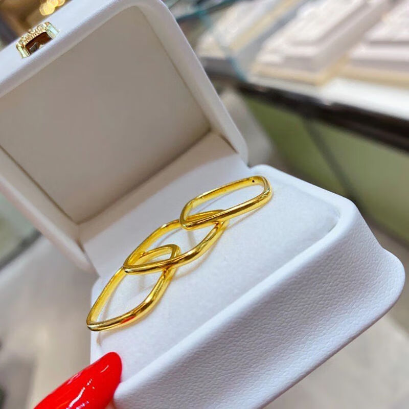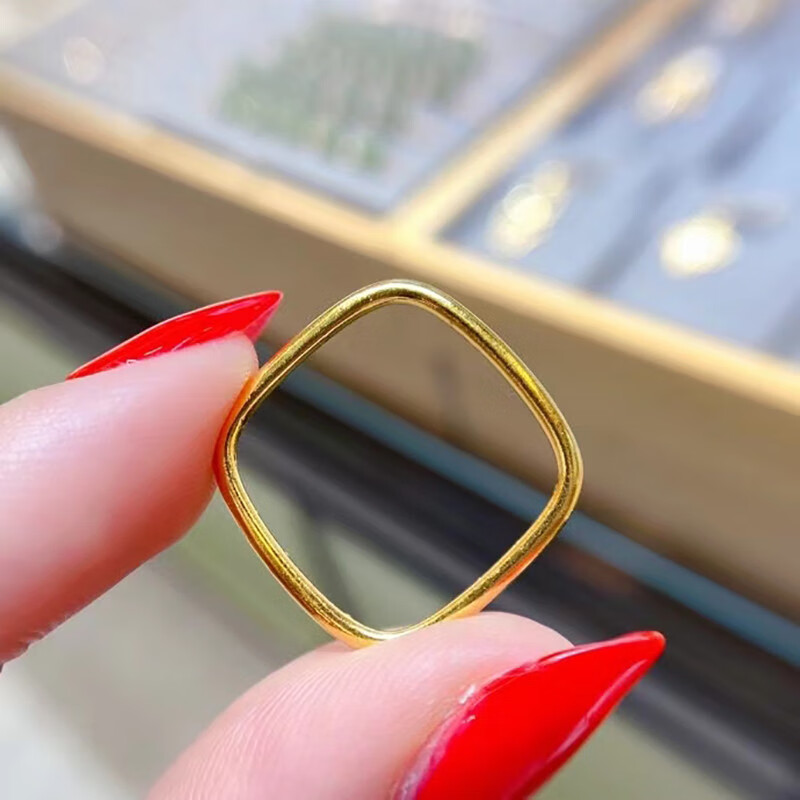 VZZS3D Hard Gold Gold Small Square Ring Pure Gold 999 Smooth Geometric Bracelet Gold Bangle Men's and Women's Ring Square Ring No. 9