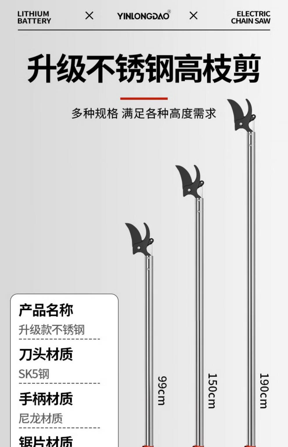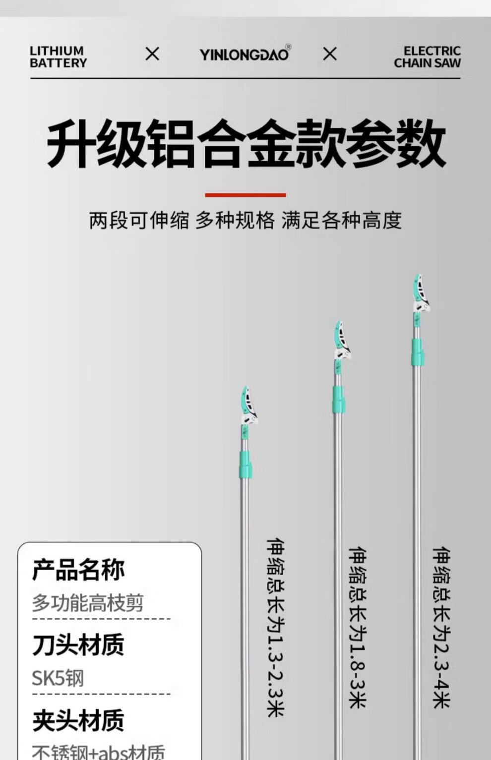 Yinlongdao (YINLONGDAO) high-branch shears, special scissors for pruning branches, telescopic extension pole, gardening fruit tree high-altitude pruning, long-handled fruit picking artifact, 11.2-2.2 meters, upgraded aluminum alloy telescopic pole