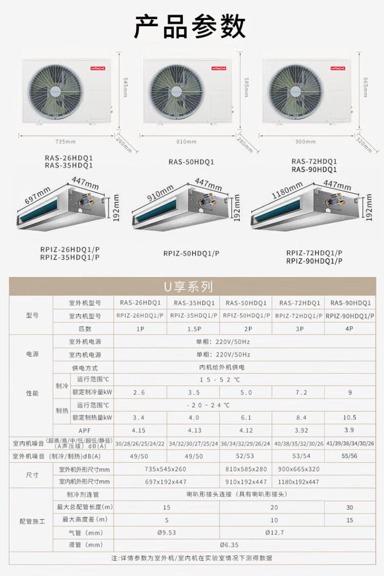 Hitachi (HITACHI) central air-conditioning duct machine, one-to-one U enjoys 3 hp/4 hp, home living room embedded air conditioner, first-class energy efficiency, one price, all-inclusive.