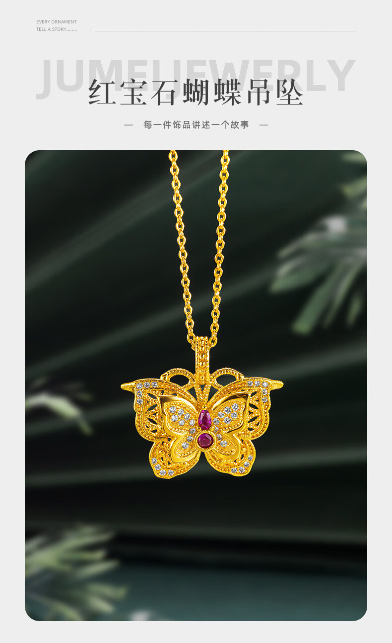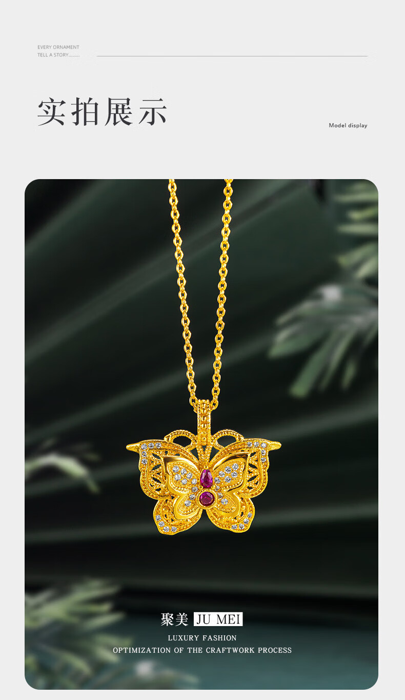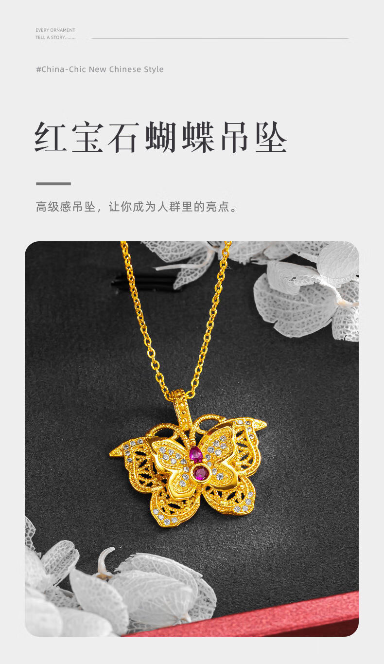 YIBIY Filigree Hollow Ruby Butterfly Pendant Vietnamese Sand Gold Butterfly Necklace Gold Butterfly Pendant Clavicle Chain Women's Accessories Ruby Butterfly Pendant + O Necklace