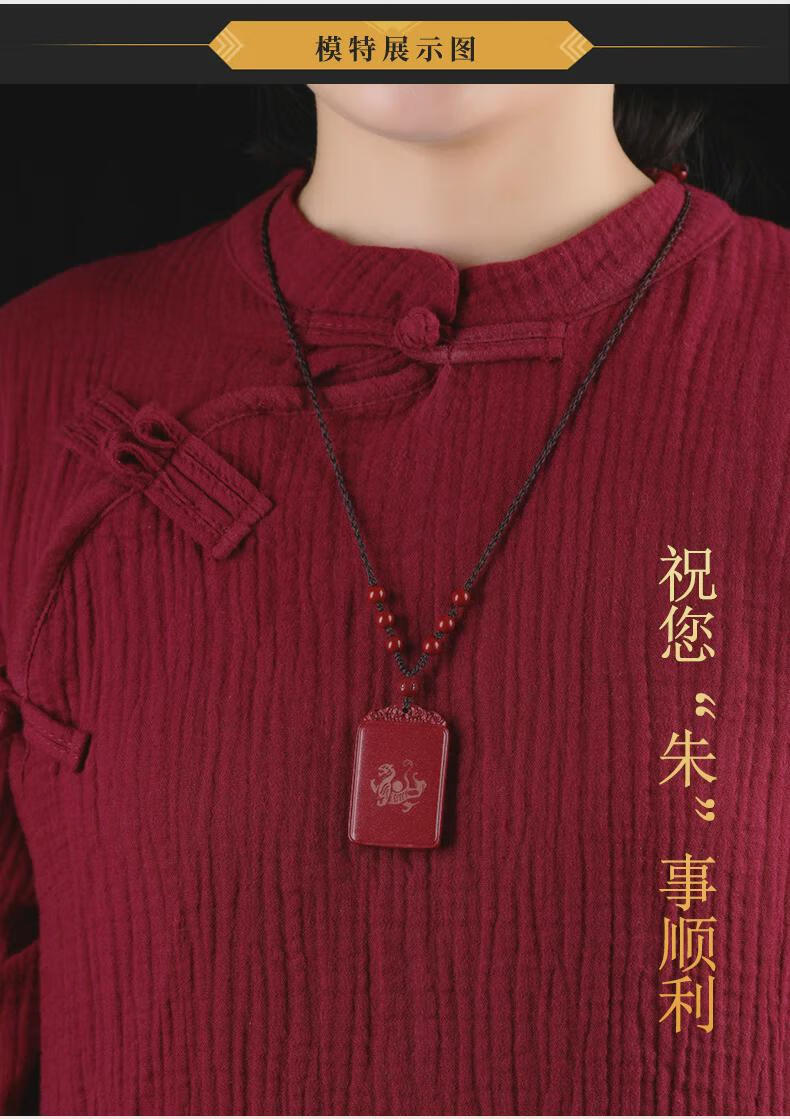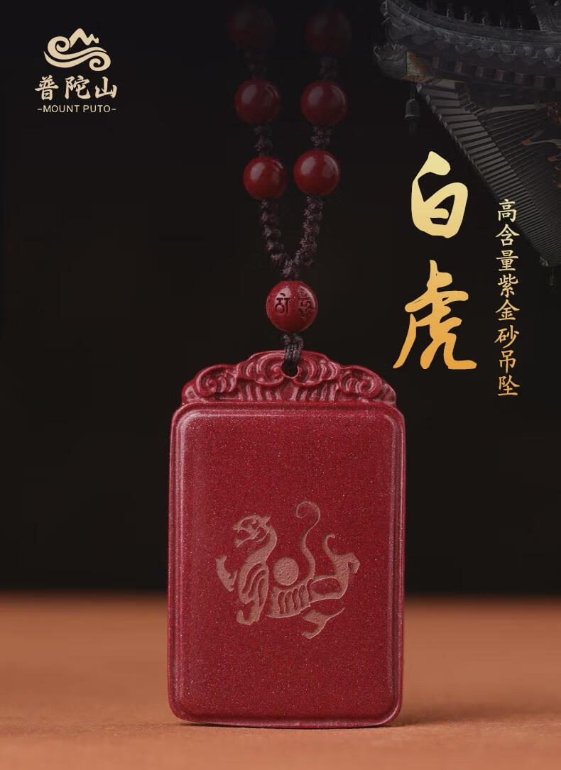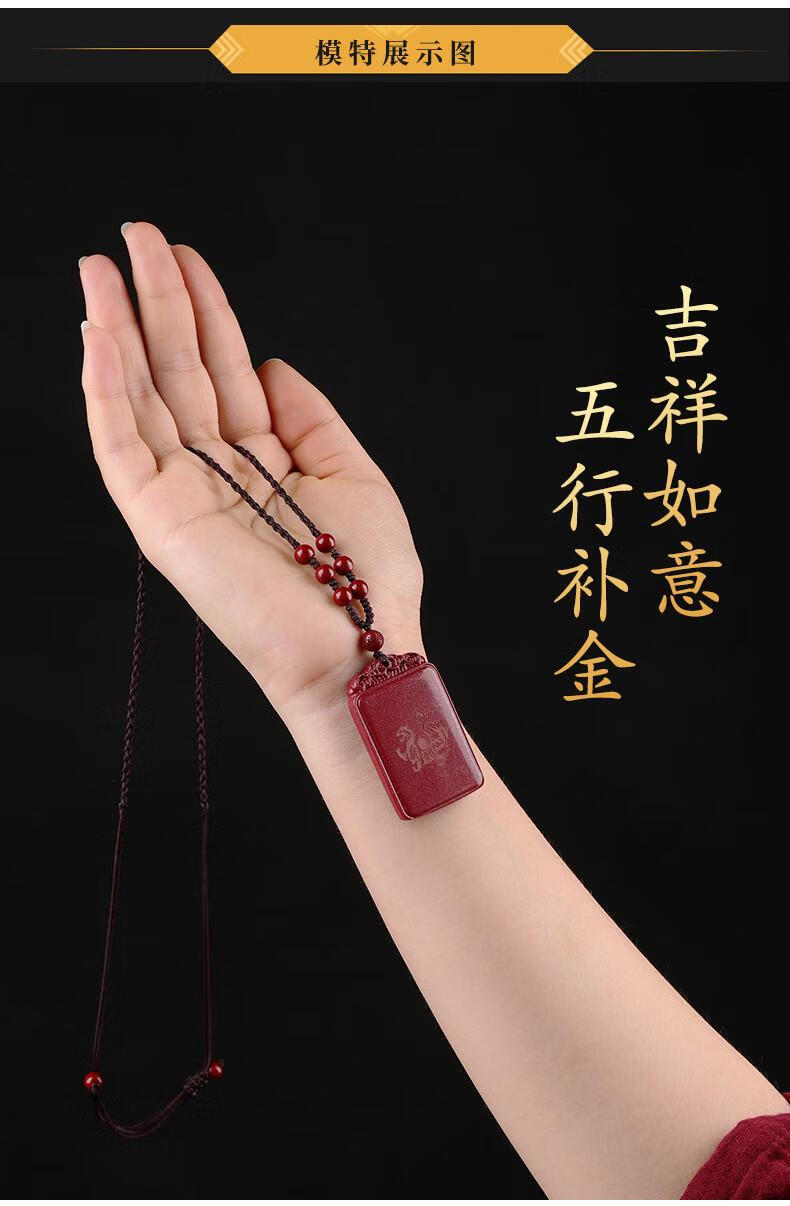 YIBIY Putuo Mountain Cinnabar Pendant Five Elements Gold Jewelry Gold Trigram Gold Life Replenishing Deficiency Heavenly Stem Replenishing White Tiger Pendant Men's and Women's Exquisite Lanyard Style