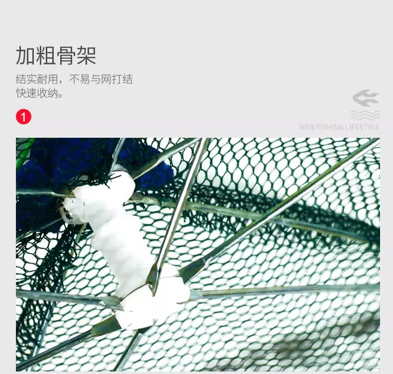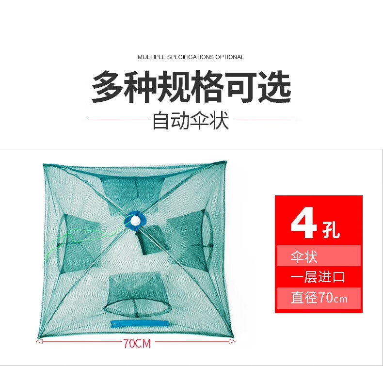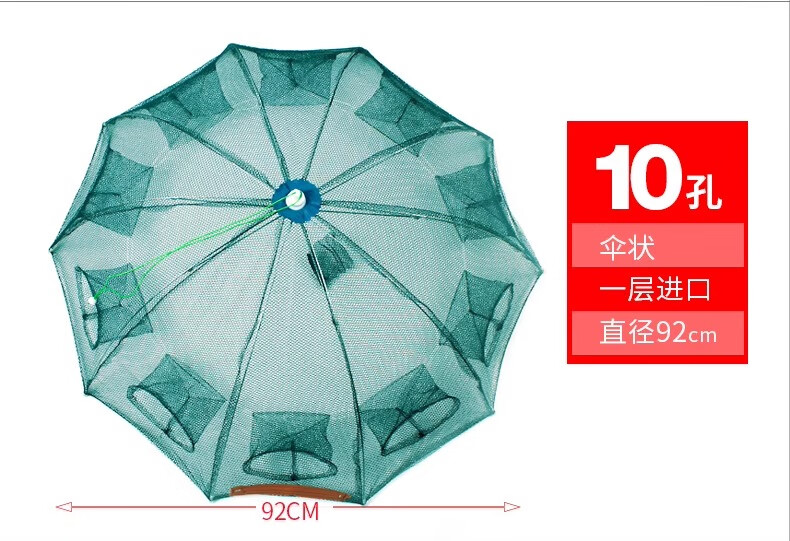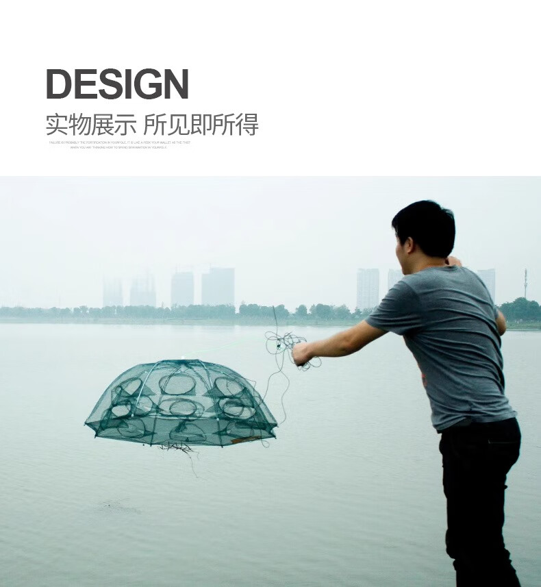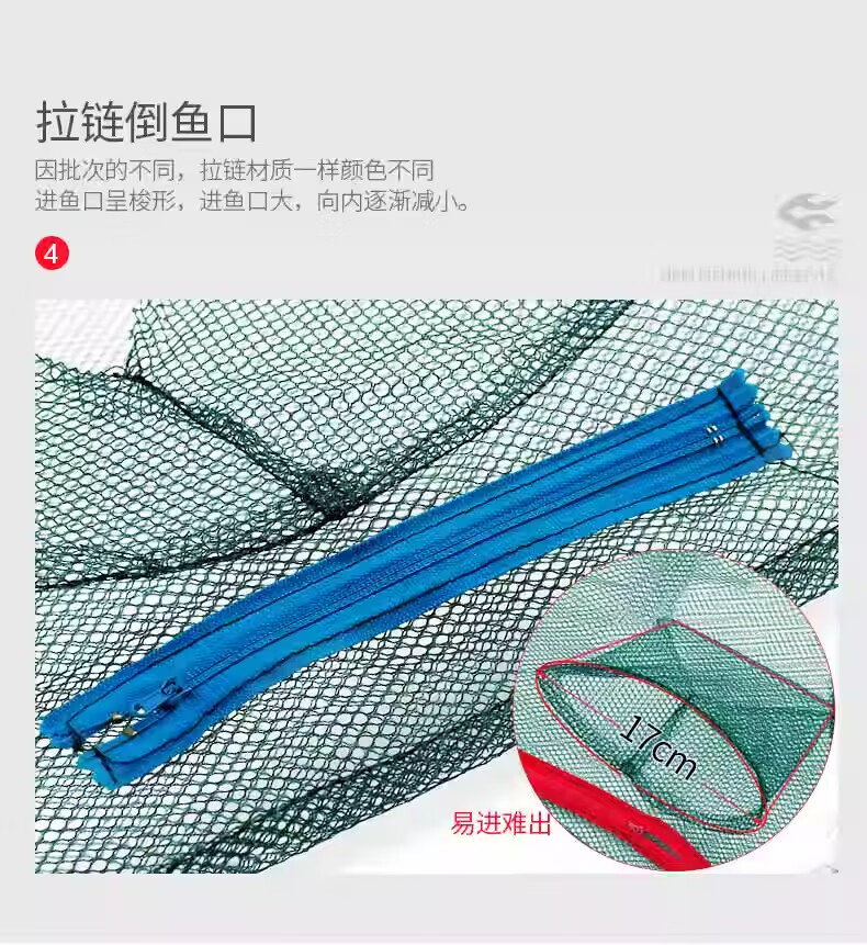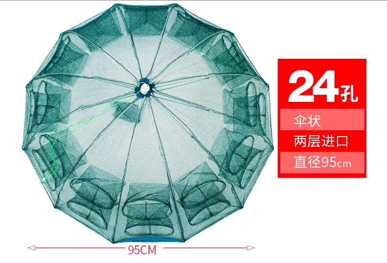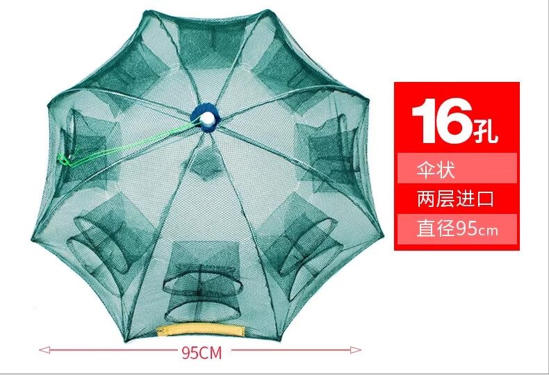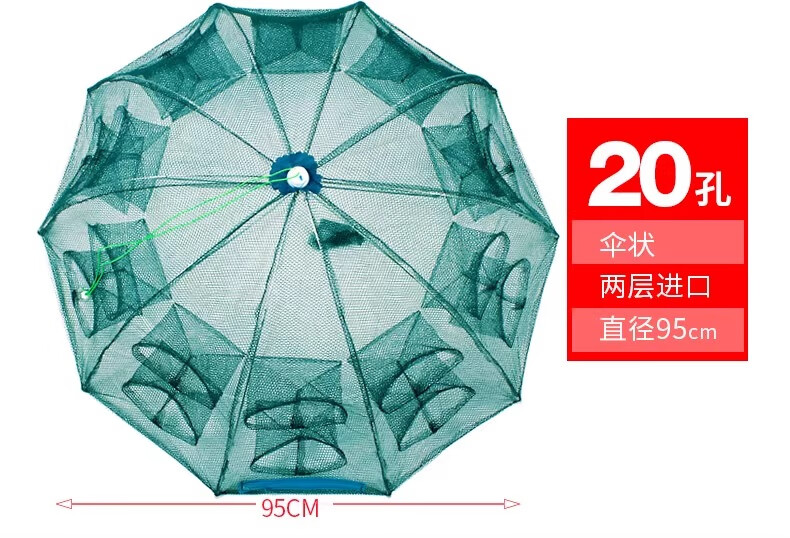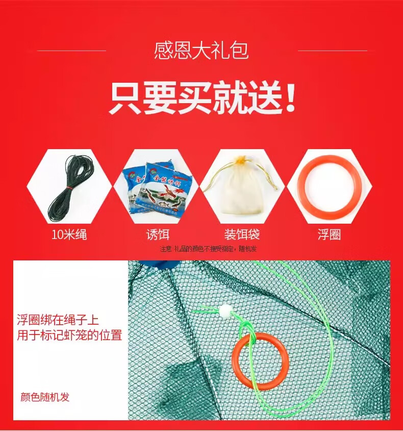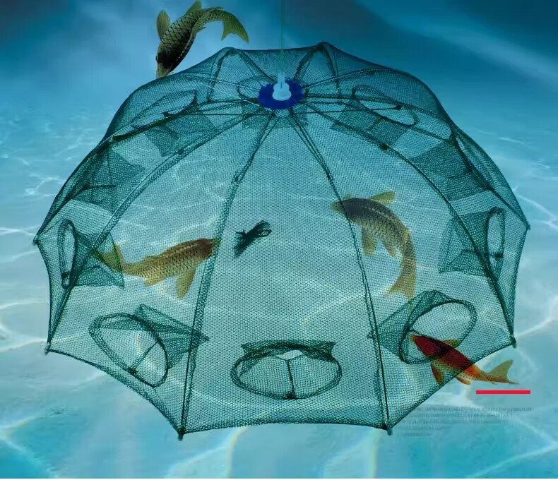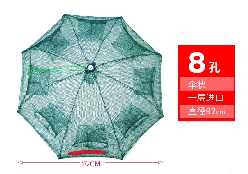 Fan-shaped fishing cage, automatic fishing shrimp cage, outdoor fishing artifact, portable and easy to fold, thickened fishing net cage, eel cage, shrimp cage, 8 holes, free gift pack + 10 packs of bait