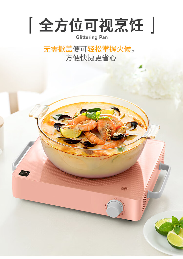 Corning 2.1L soup pot and multi-functional double-sided cooking combination, heat-resistant glass pot, electric ceramic stove, barbecue and shabu-shabu combination, 2.1L crystal pot + white double-sided cooking stove
