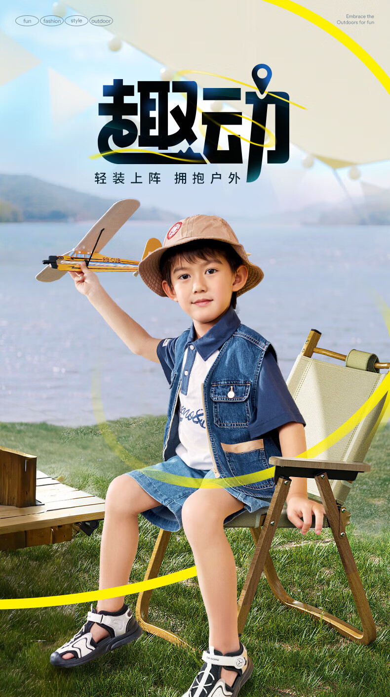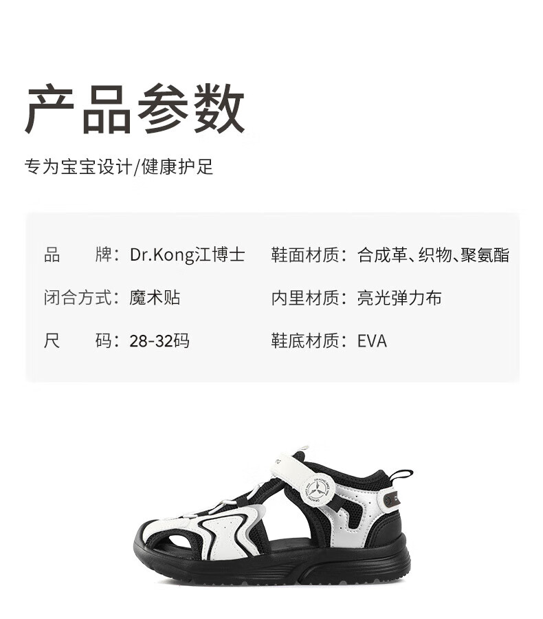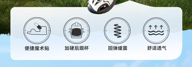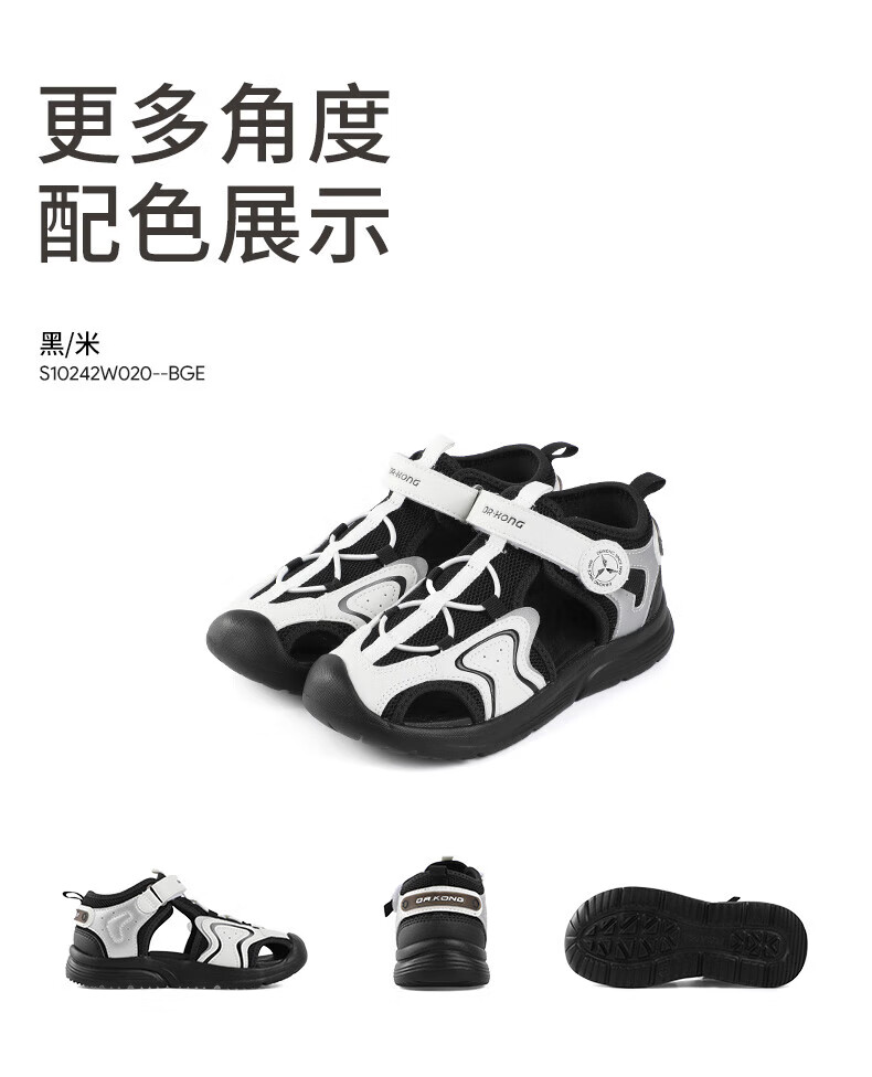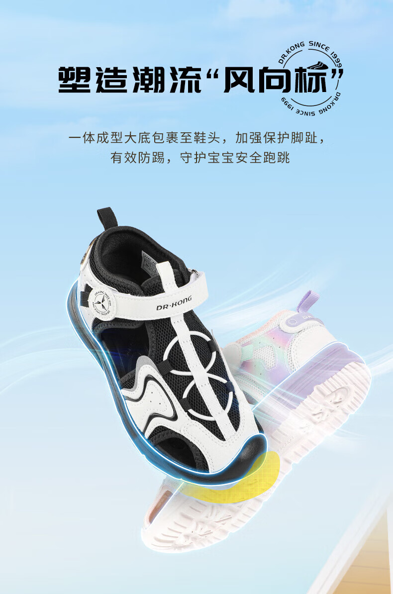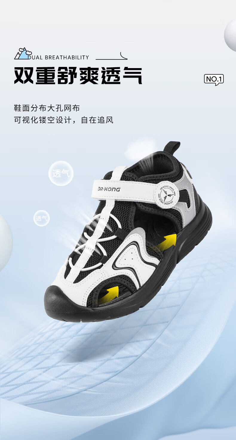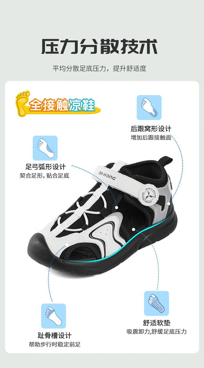 Dr. Jiang's summer casual toe-cap sandals for boys and girls, simple and breathable Velcro children's sandals for middle and large children, khaki/blue 29, foot length about 18.0-18.7