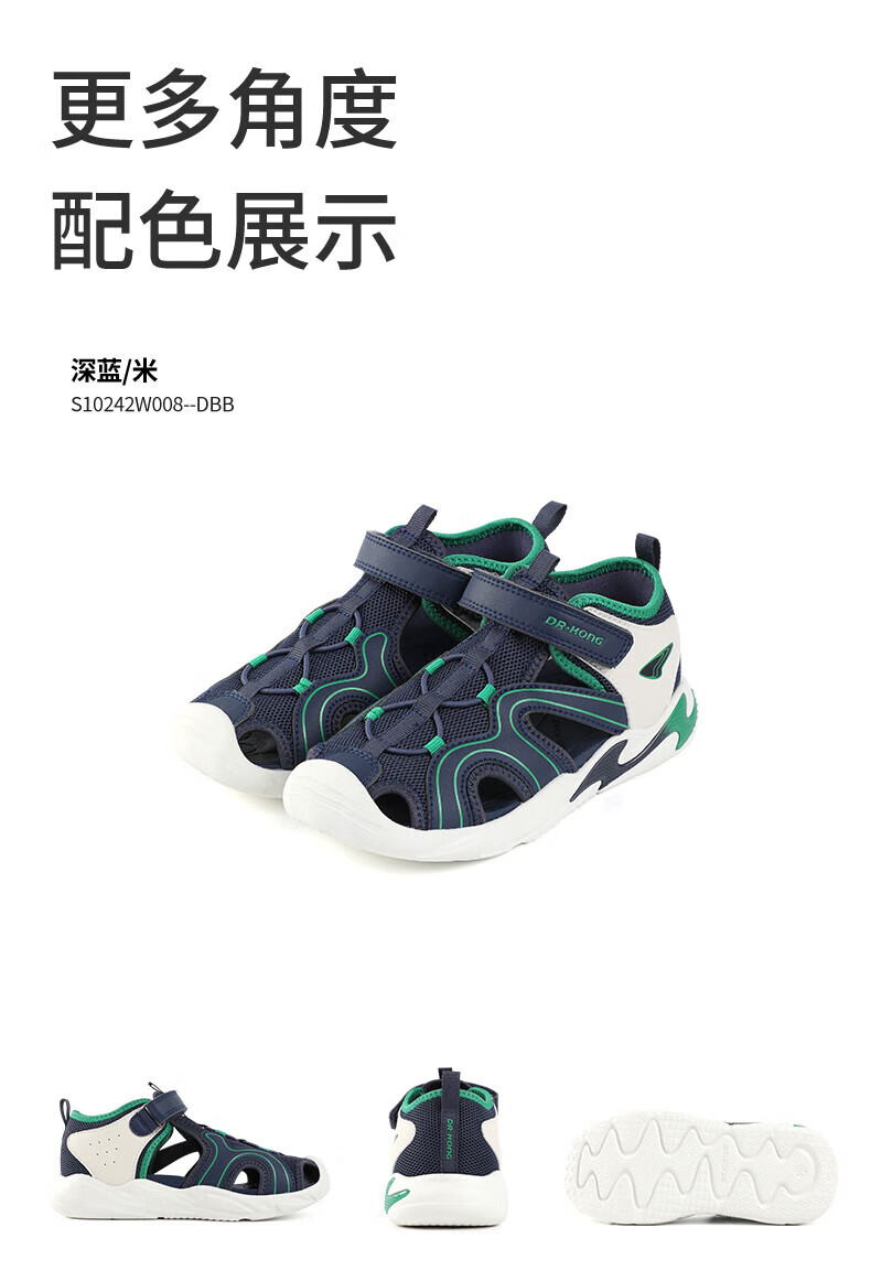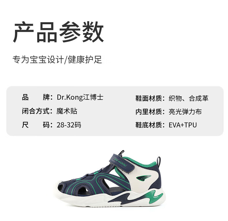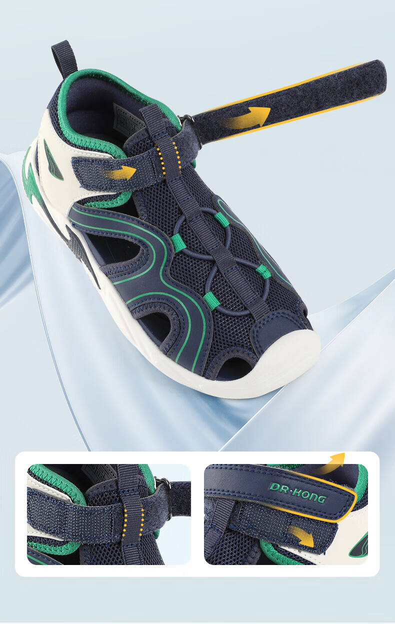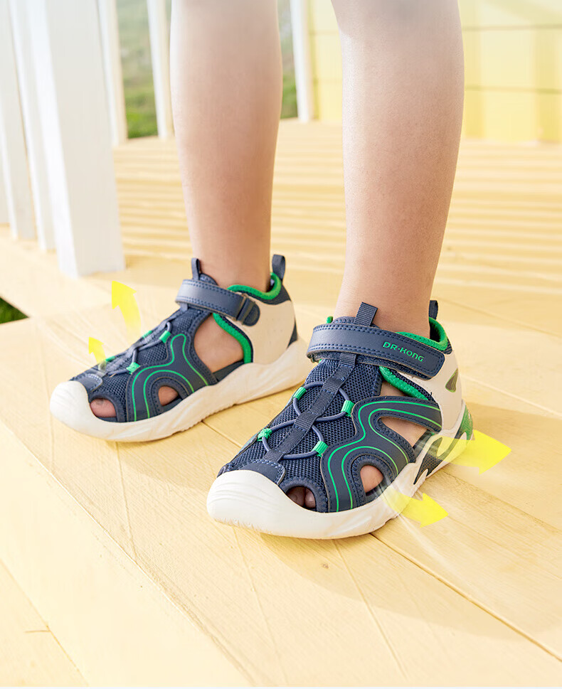 Dr. Jiang's summer trendy children's shoes for big boys and girls, comfortable and convenient Velcro health shoes, toe-cap children's sandals, blue/meter 31, foot length about 19.4-20.0