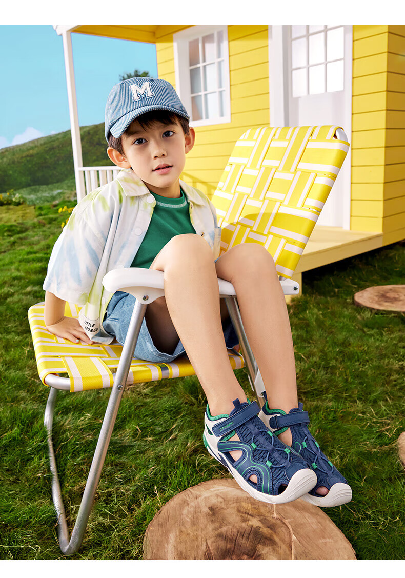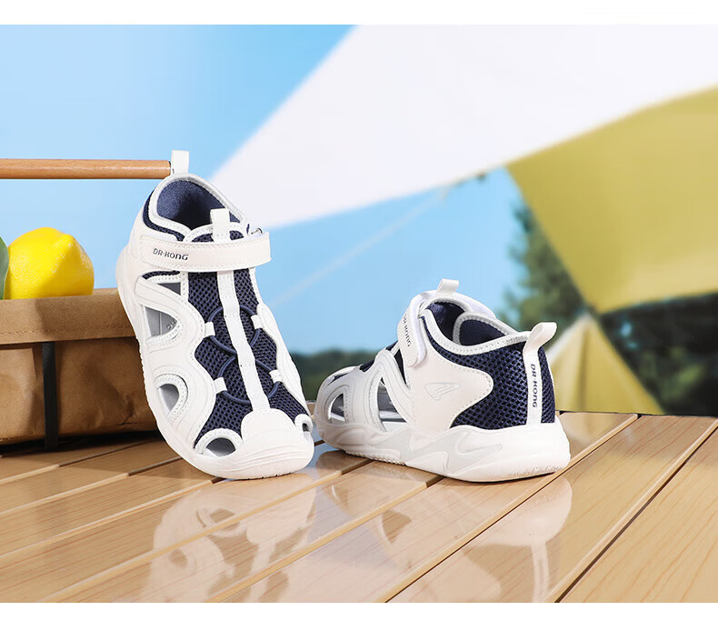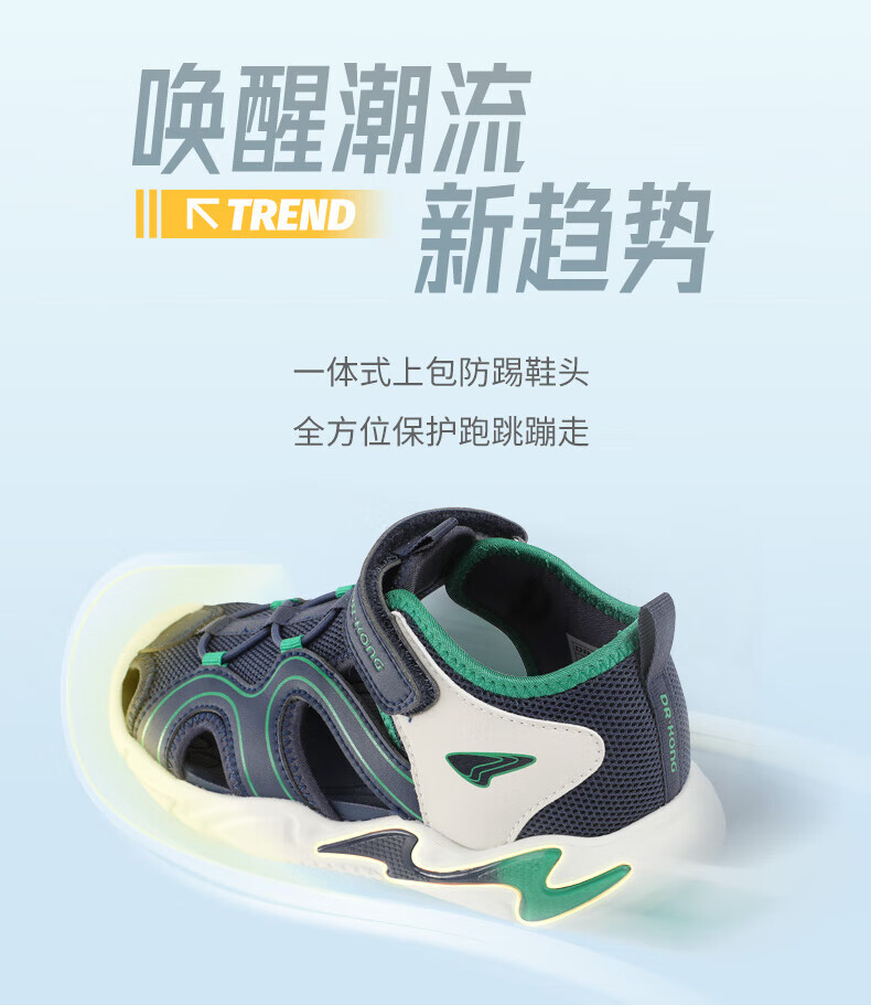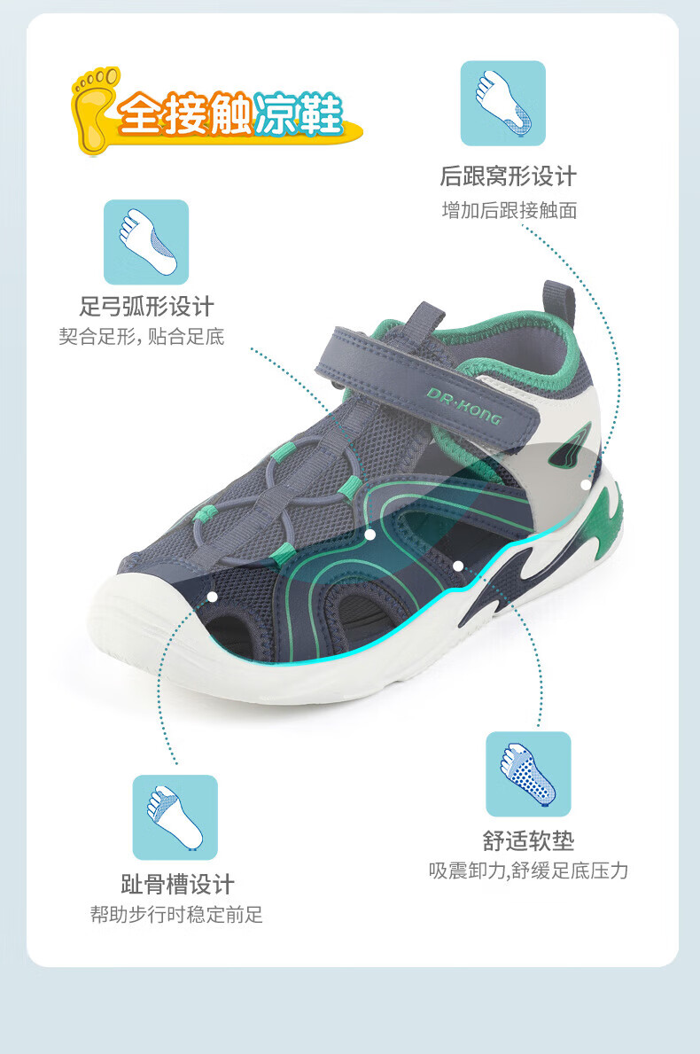 Dr. Jiang's summer trendy children's shoes for big boys and girls, comfortable and convenient Velcro health shoes, toe-cap children's sandals, blue/meter 31, foot length about 19.4-20.0