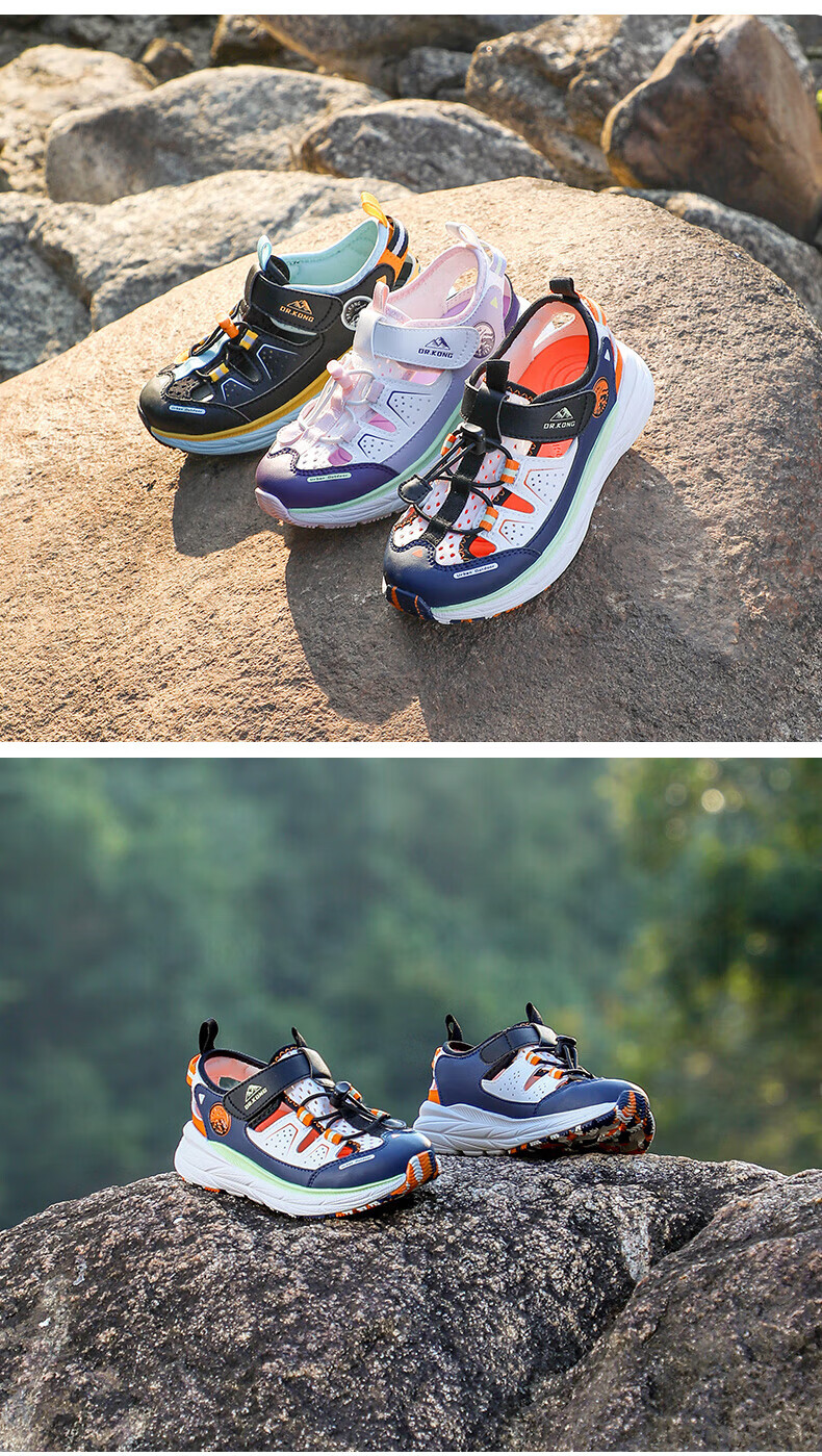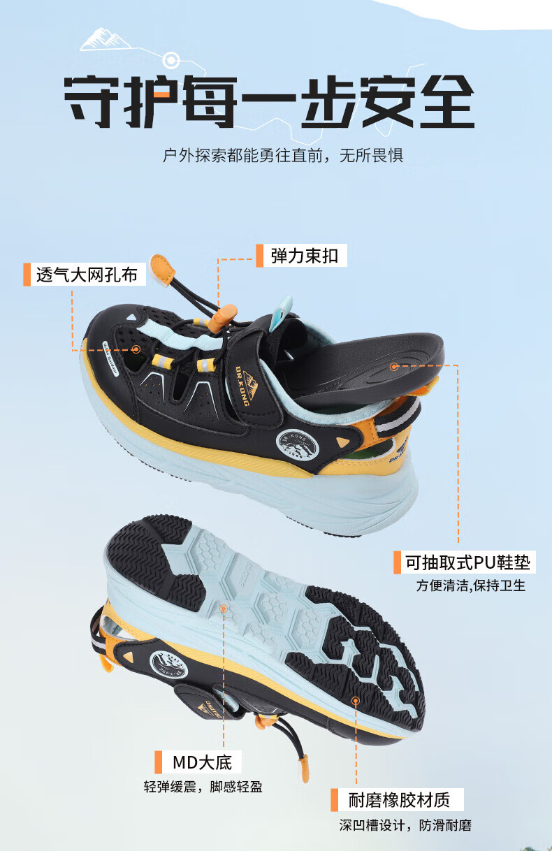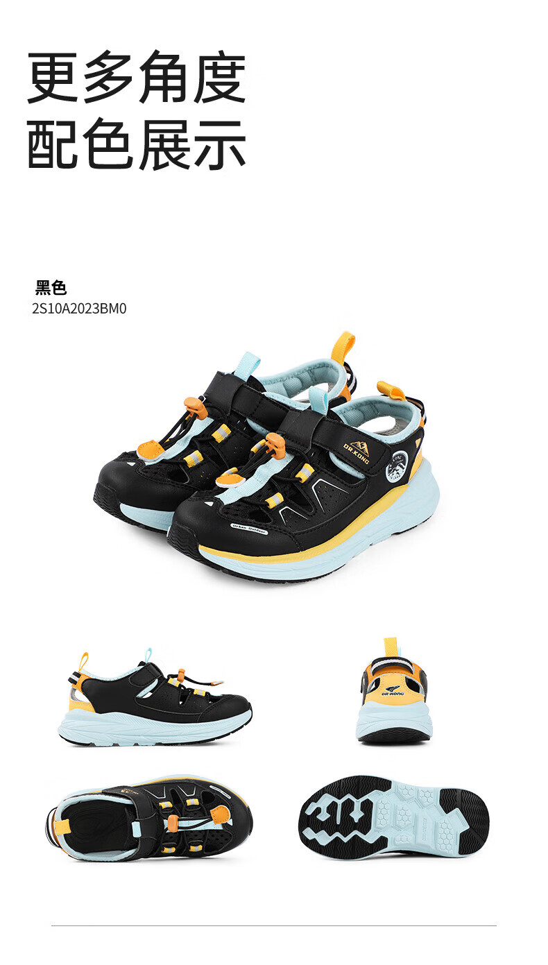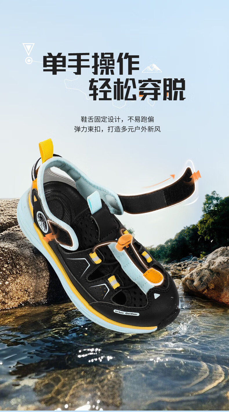 Dr. Jiang's summer breathable casual children's sandals for boys and girls, medium and large children's Velcro outdoor lightweight children's shoes, black, size 33, foot length approximately 20.5-21.1