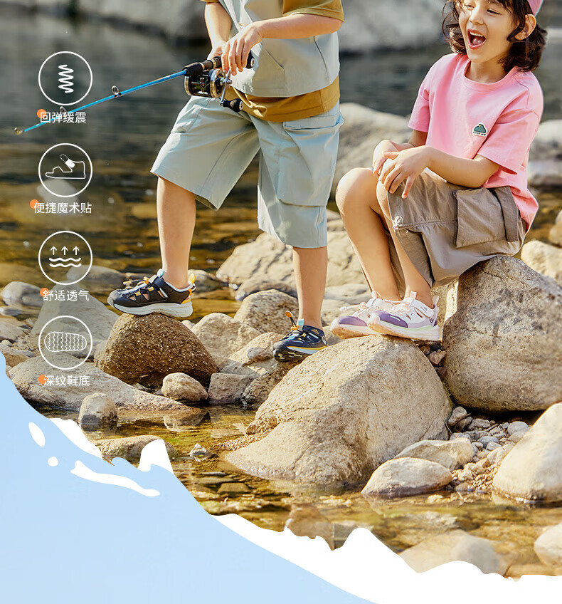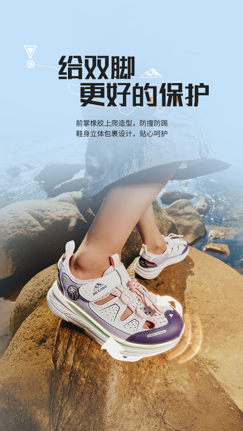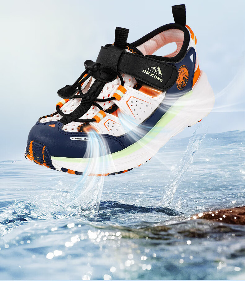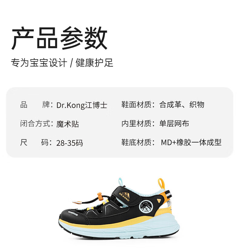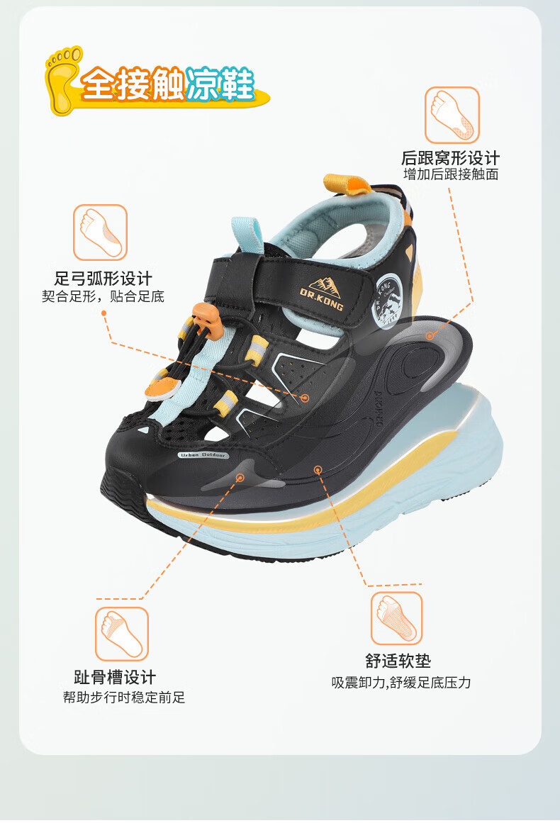 Dr. Jiang's summer breathable casual children's sandals for boys and girls, medium and large children's Velcro outdoor lightweight children's shoes, black, size 33, foot length approximately 20.5-21.1