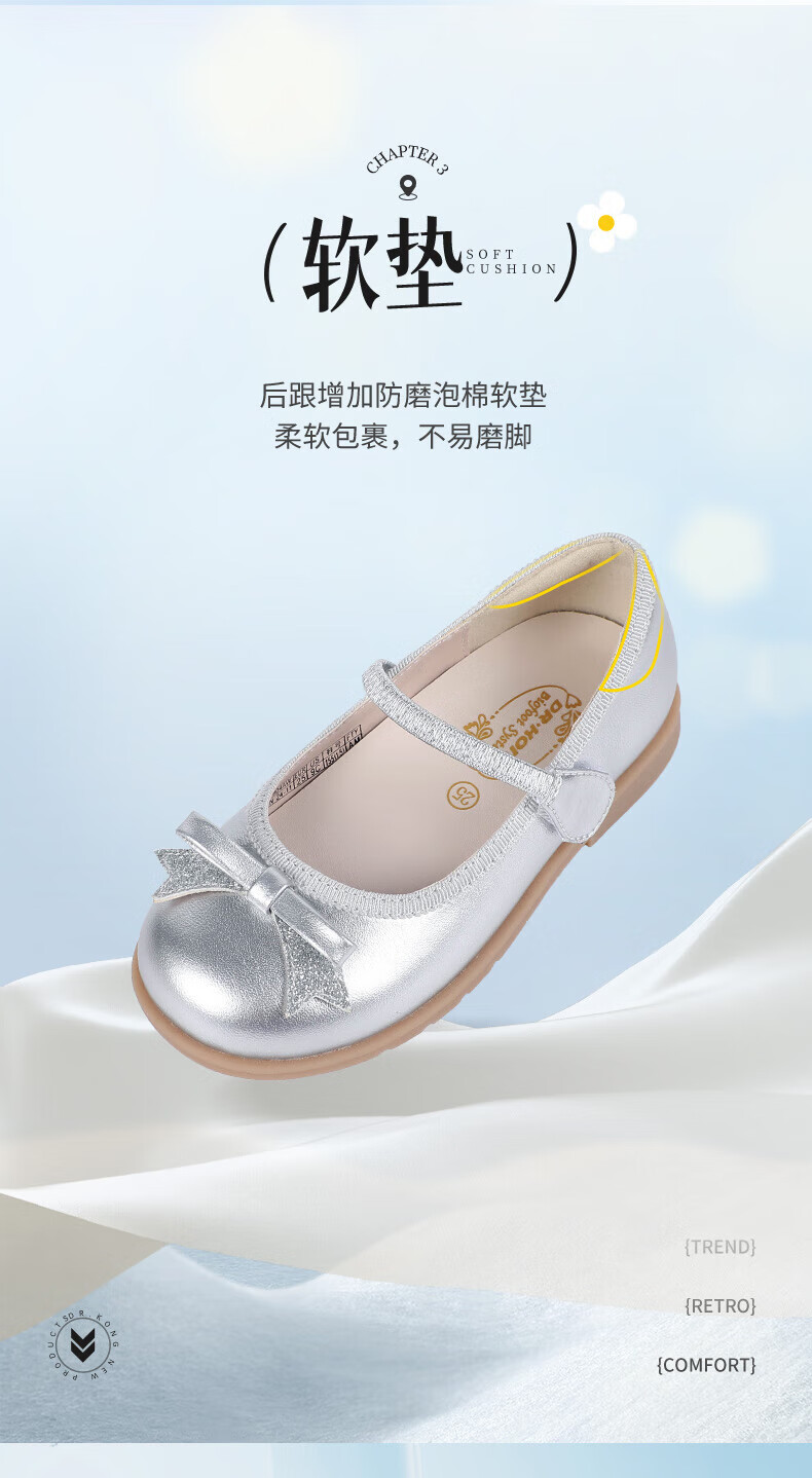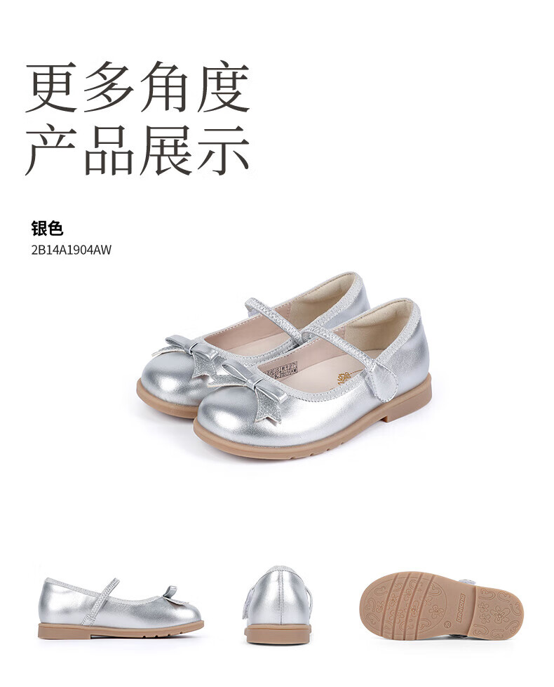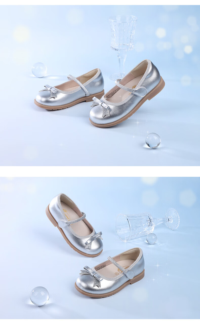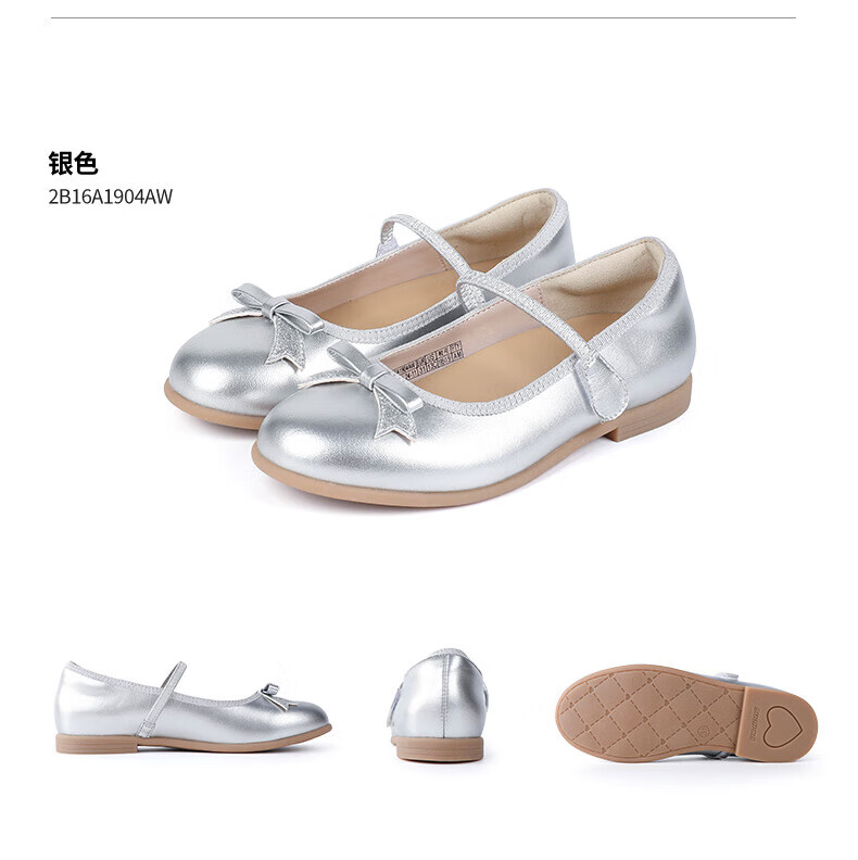 Dr. Jiang's Spring Girls' Silver Princess Bow Etiquette Shoes Campus Performance Children's Leather Shoes Silver 31 Foot Length Approximately 19.6-20.2