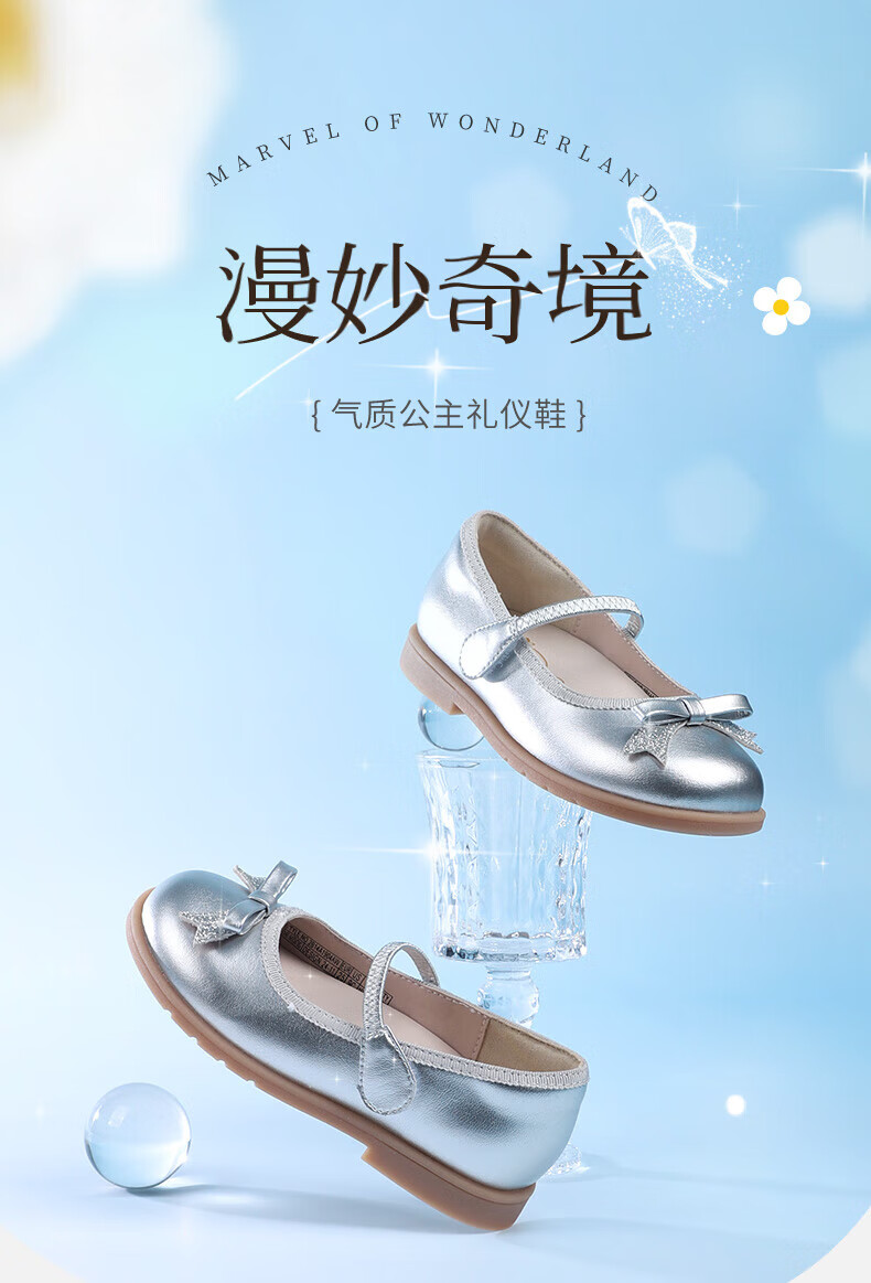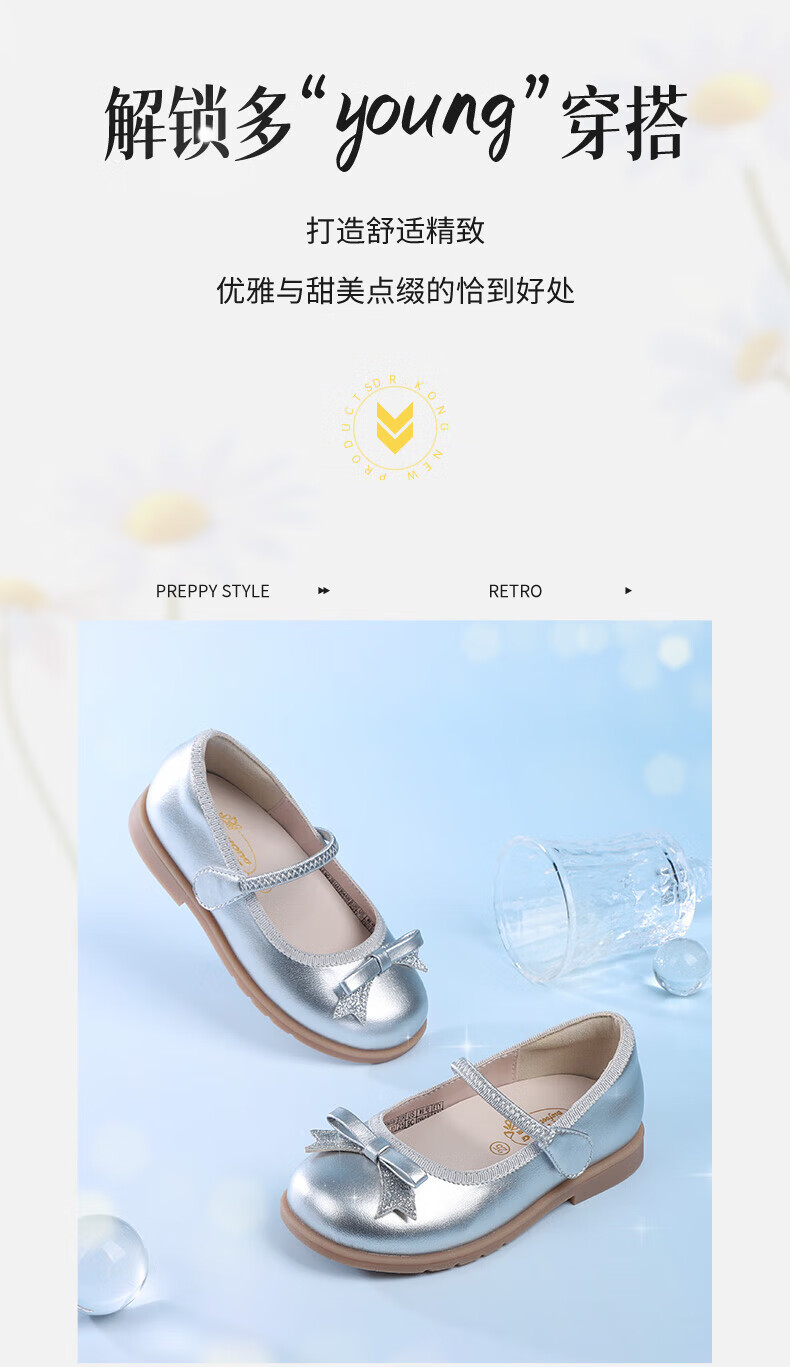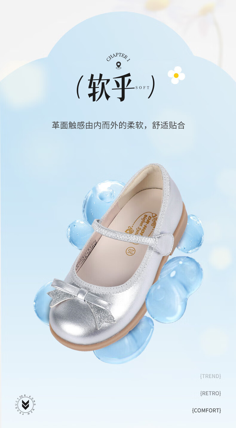 Dr. Jiang's Spring Girls' Silver Princess Bow Etiquette Shoes Campus Performance Children's Leather Shoes Silver 31 Foot Length Approximately 19.6-20.2