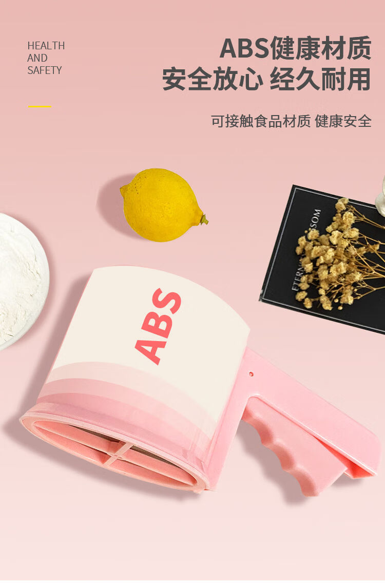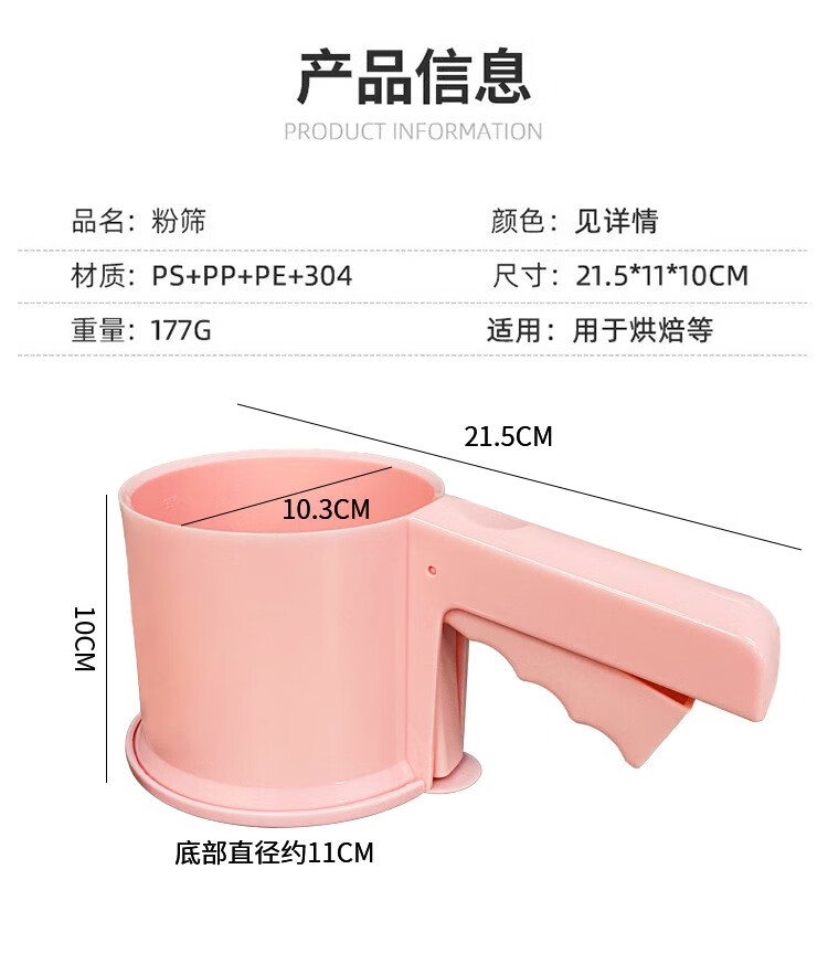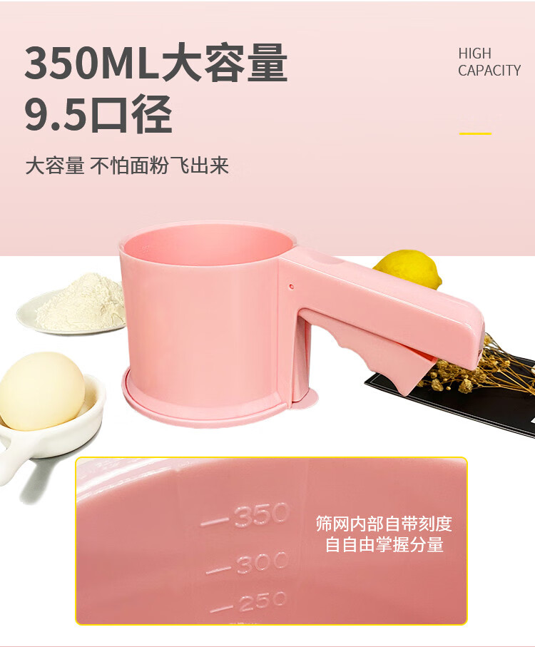 CLCEY plastic semi-automatic flour sieve, cup-type stainless steel flour sieve with cover, kitchen baking tool filter sieve, pink flour sieve with cover + large egg beater included