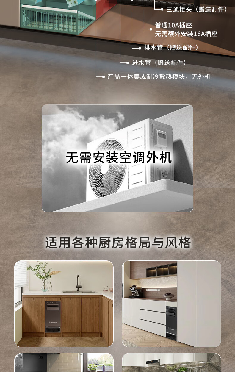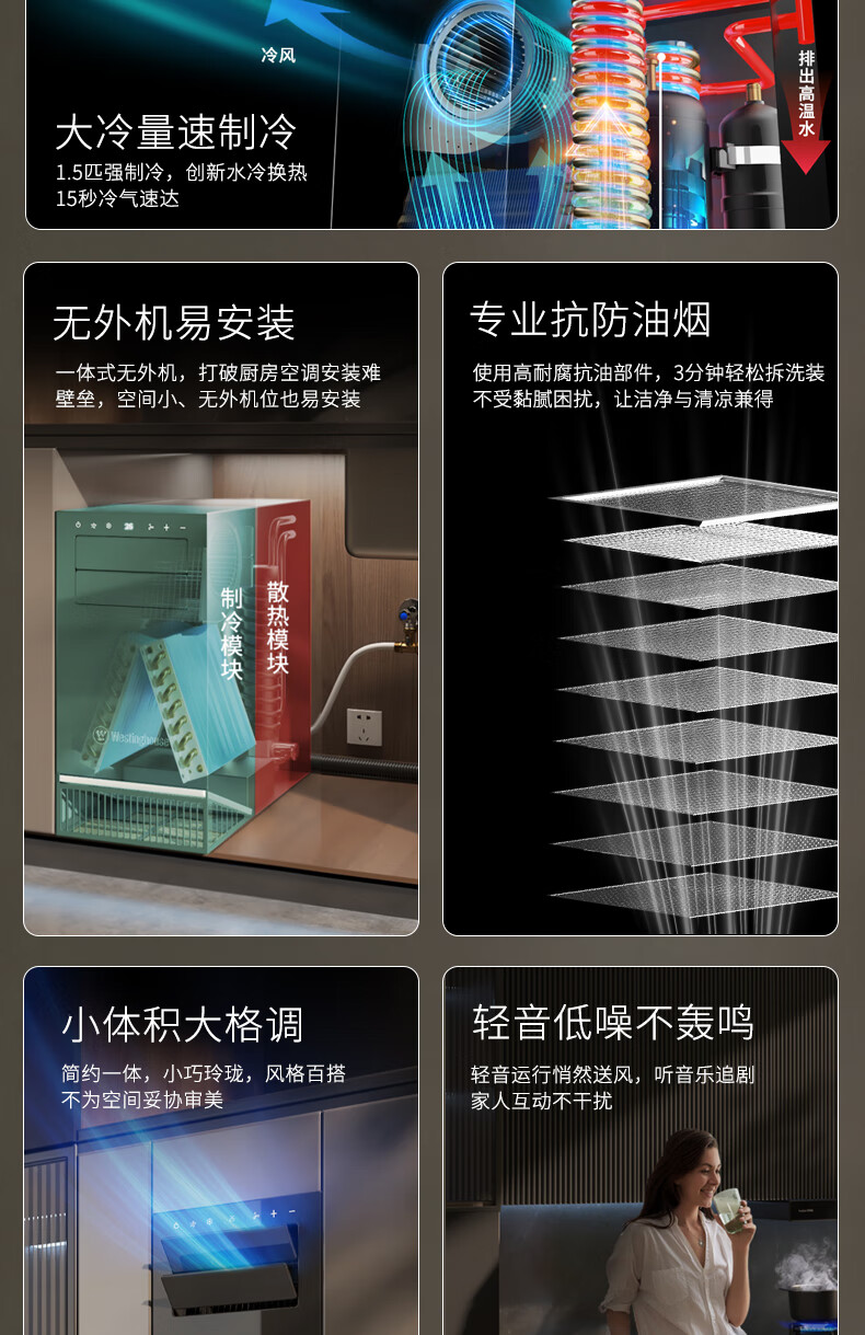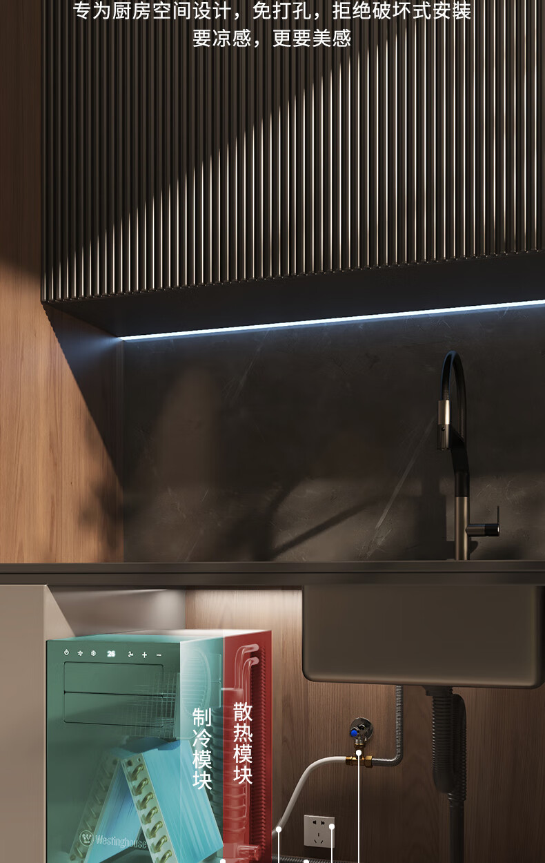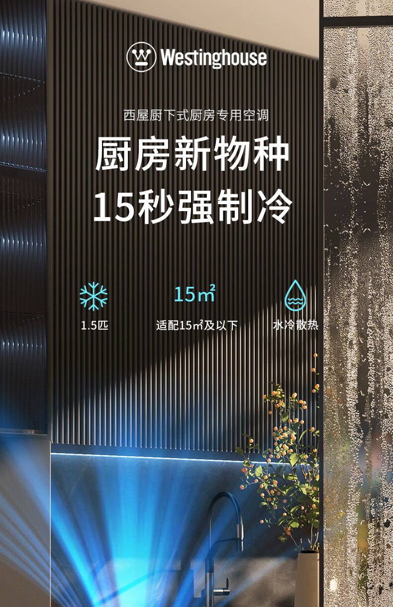 Westinghouse air conditioner, extremely fast cooling, all-in-one, no external unit, no punching, kitchen air conditioner, large air volume, water cooling, heat dissipation, anti-oil pollution, under-counter household air conditioner, small 1.5 HP WHSK33D 3300W cooling capacity