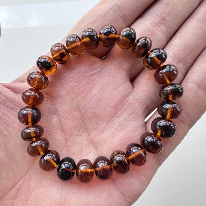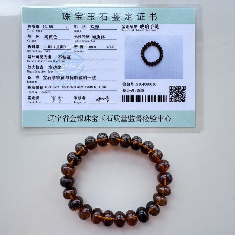 Only double belt identification certificate Fushun amber gold amber botanical amber 10 mm women's bracelet bracelet