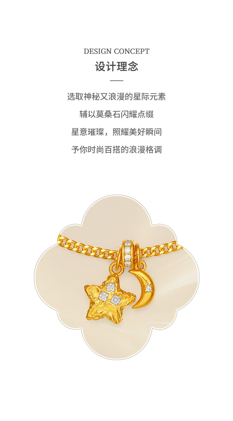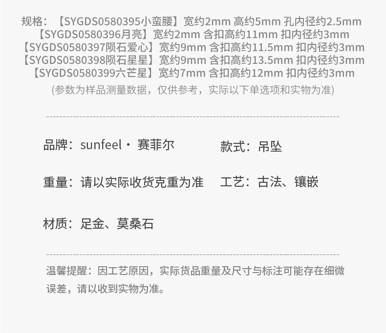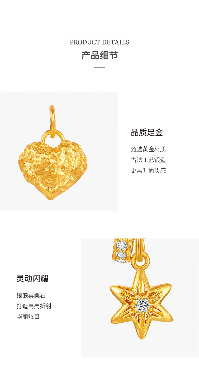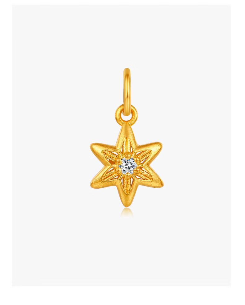 QIWN gold pendant women's gold small waist star moon love six-pointed star beaded bracelet earrings DIY small waist - without chain, about 0.40g