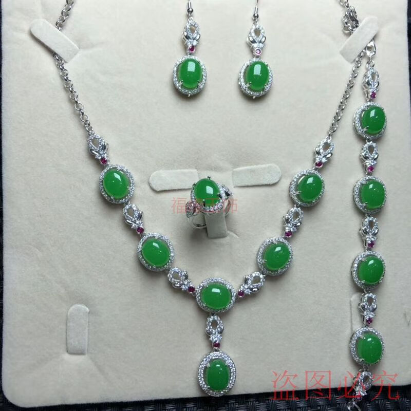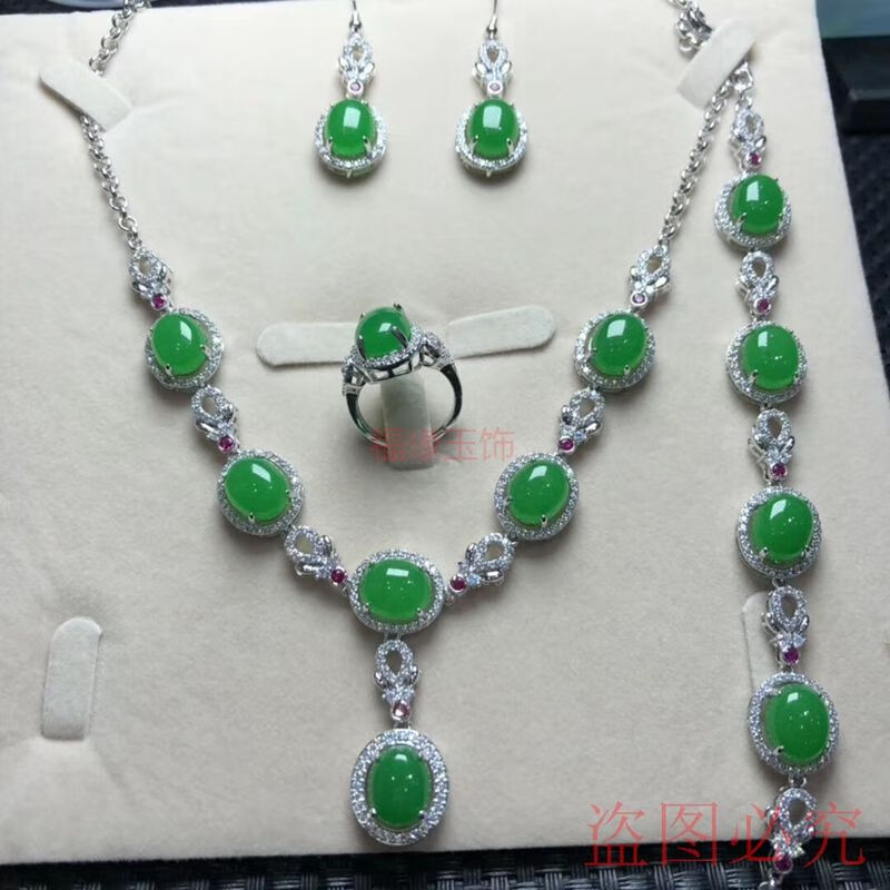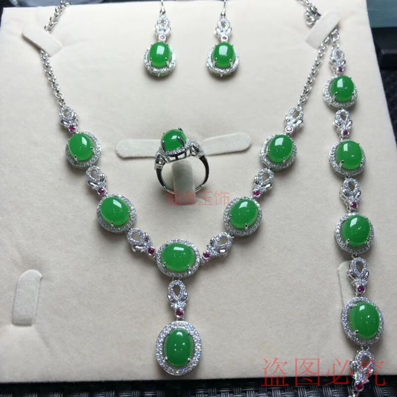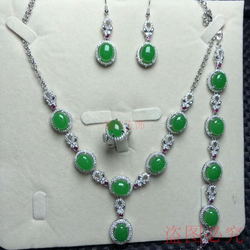 Only double necklace jade emerald bridal wedding gift 4 piece set jewelry imperial green jewelry