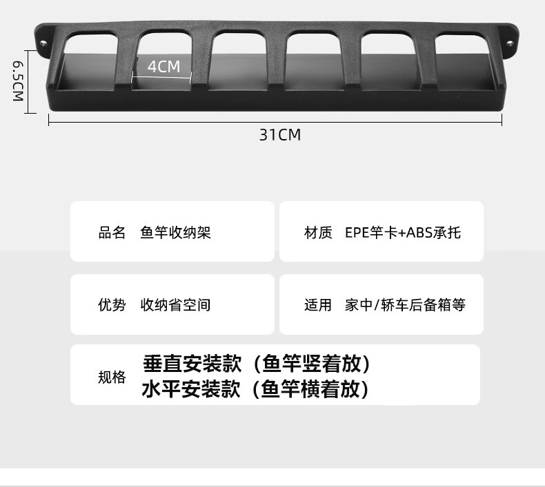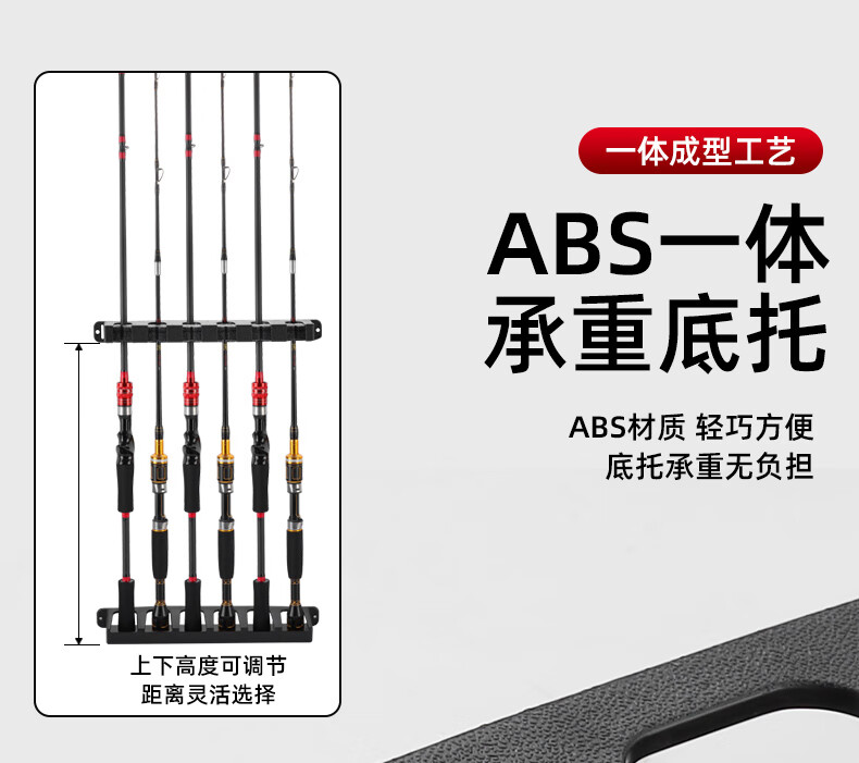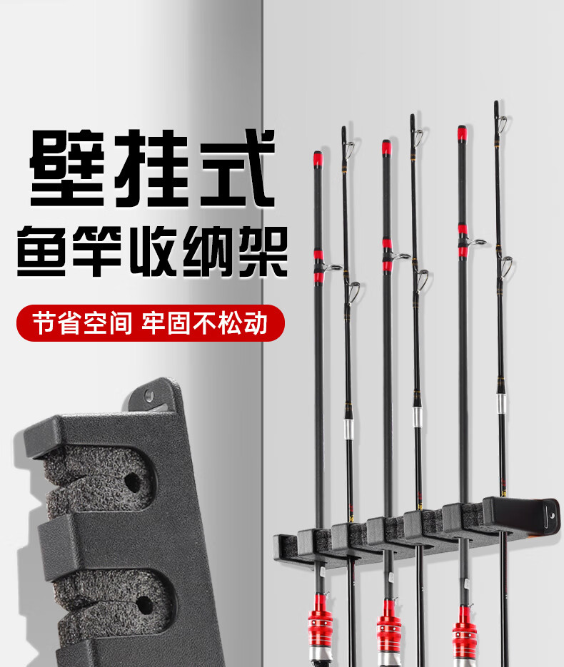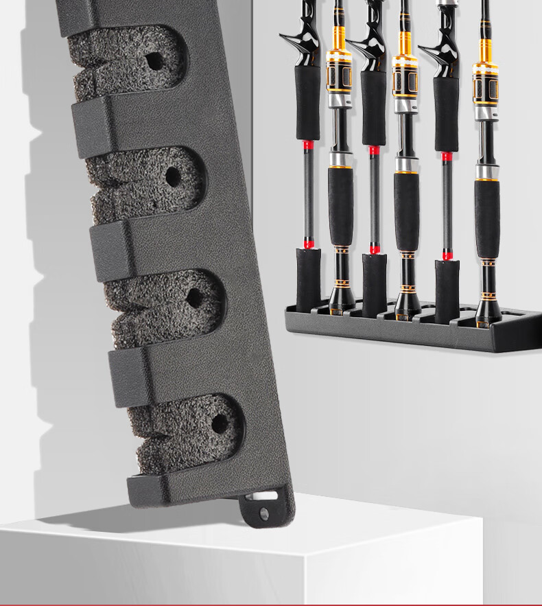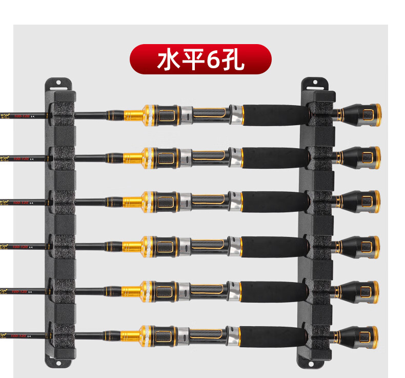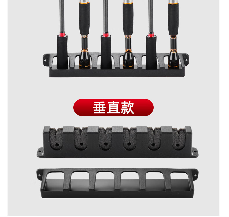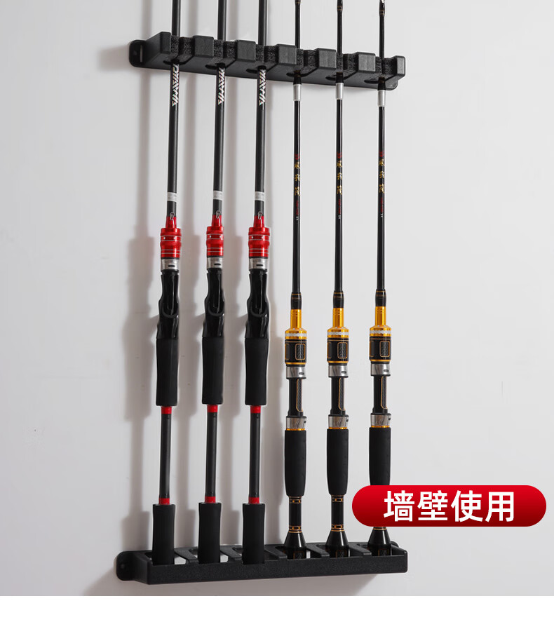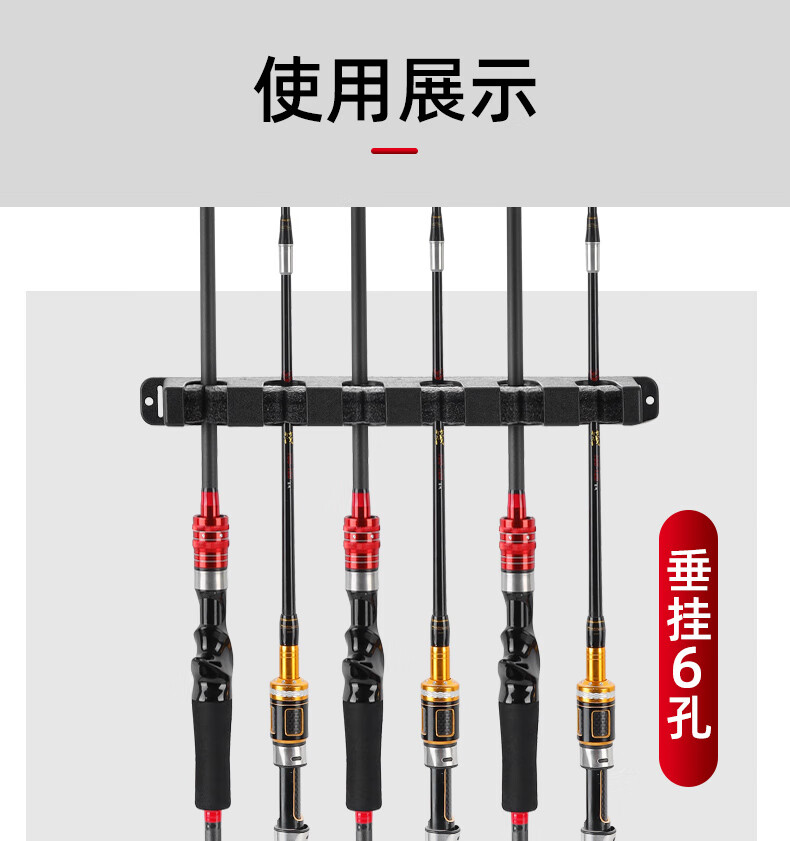 Meipai multifunctional fishing rod display rack wall-mounted lure rod rack wall-mounted storage rack hand rod sea rod collection rack fishing gear 6-hole black vertical version (screw installation)