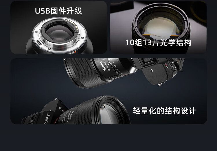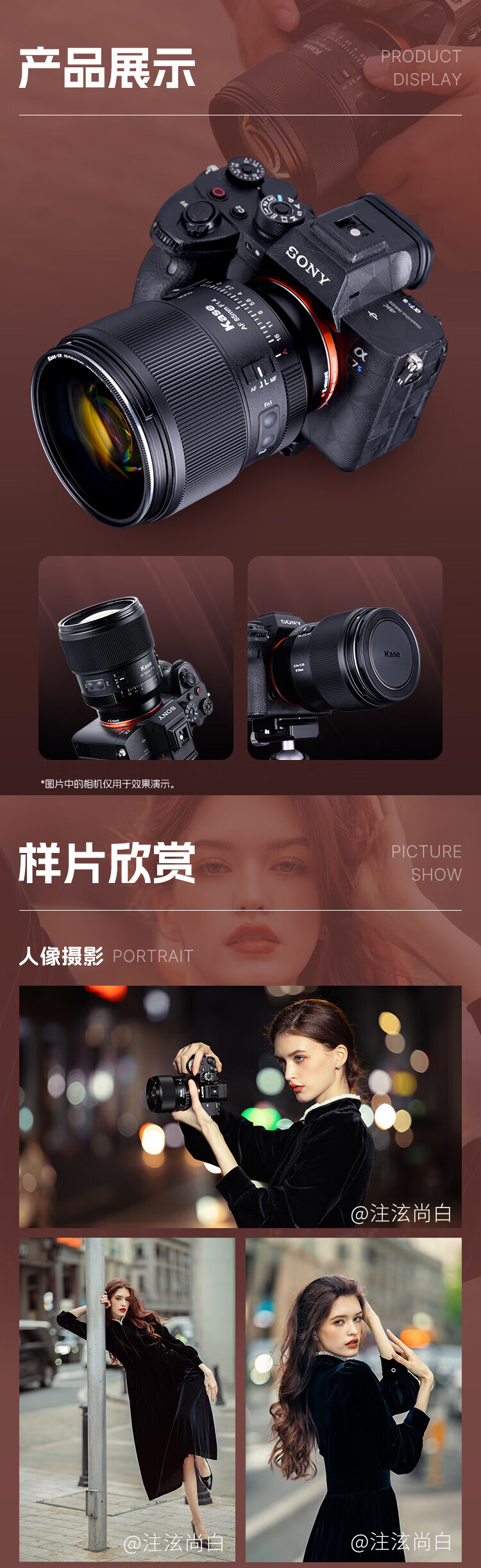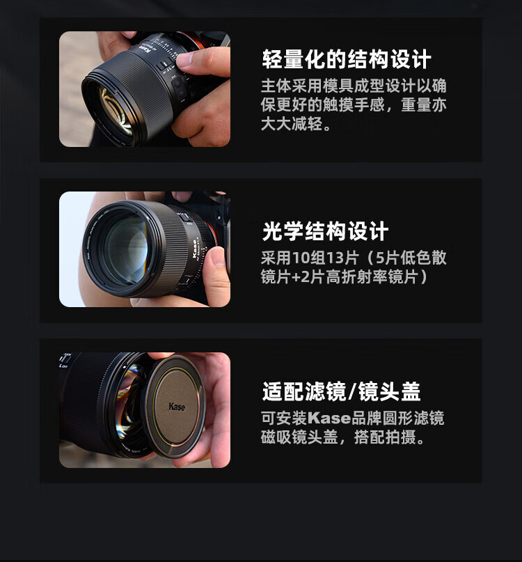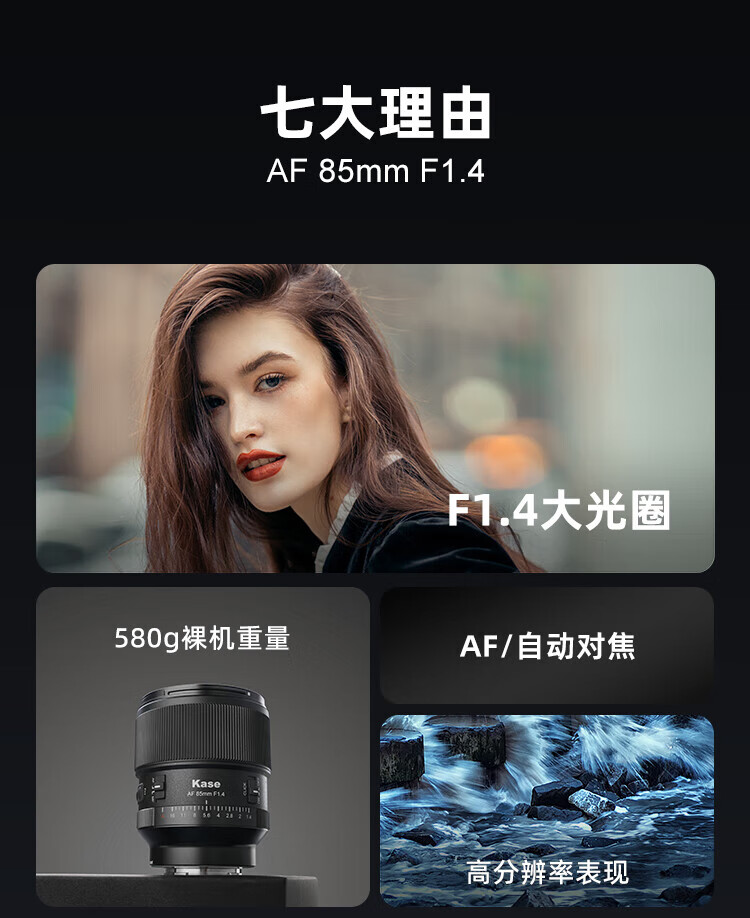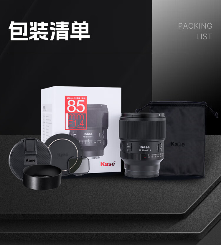 Kase 85mm F1.4 fixed focus lens, large aperture, full frame, autofocus, portrait, street photography, landscape, Nikon, Sony and Fuji mirrorless camera lens, Sony E-mount (comes with light reduction & black soft two-in-one magic mirror), official standard