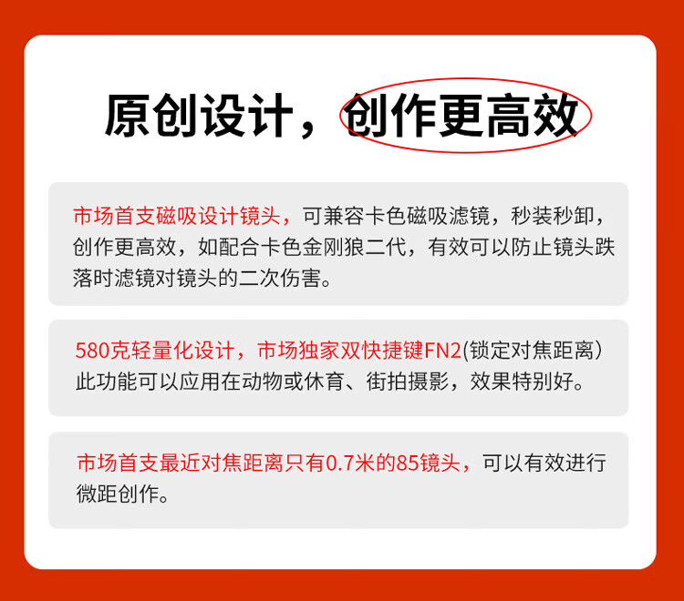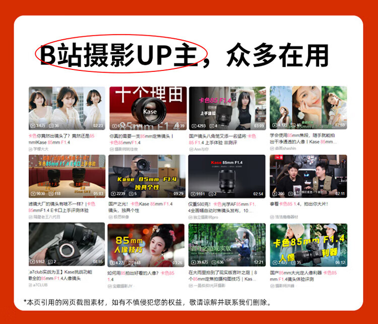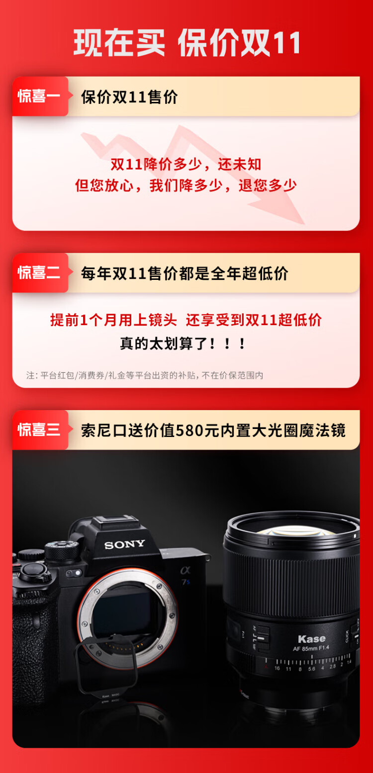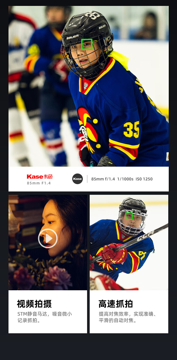 Kase 85mm F1.4 fixed focus lens, large aperture, full frame, autofocus, portrait, street photography, landscape, Nikon, Sony and Fuji mirrorless camera lens, Sony E-mount (comes with light reduction & black soft two-in-one magic mirror), official standard
