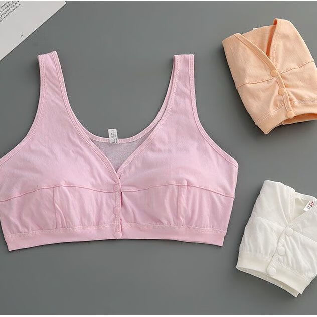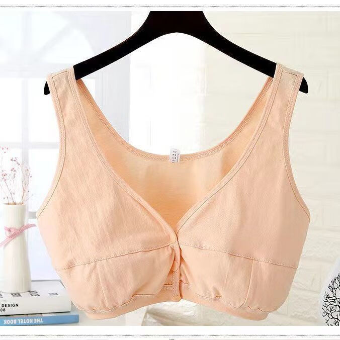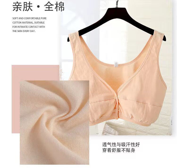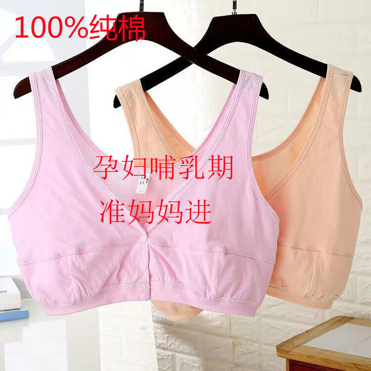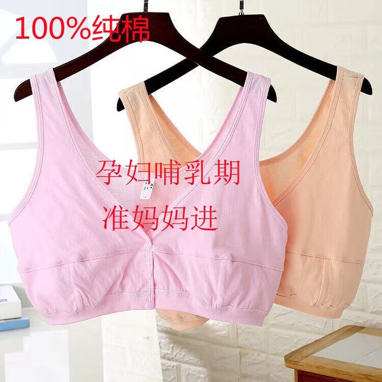 Orendai maternity plus size underwear plus fat enlarged bra lactation period pure cotton underwear no sponge 100% cotton large stretch pure cotton front button pink + skin color 5X suitable for 180-200Jin Jin equals 0.5 kg