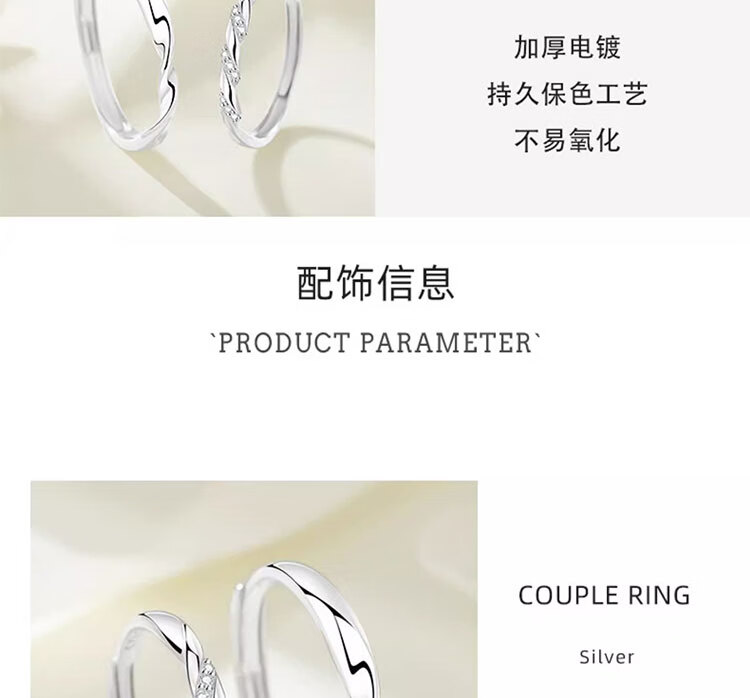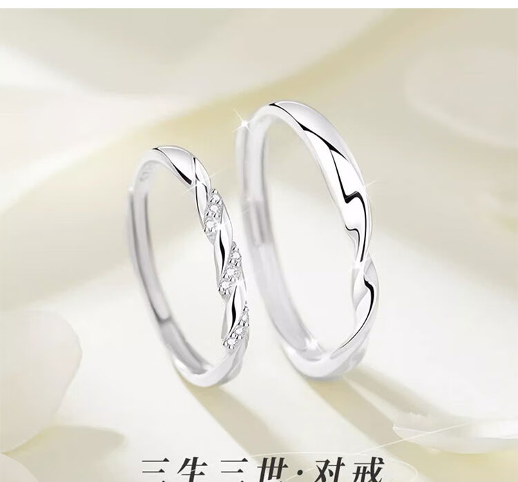 CHOMEL KINSEY Sansheng III 999 sterling silver pair ring high-end light luxury niche design couple ring 520 Valentine's Day gift 999 sterling silver Sansheng III couple ring female open ring