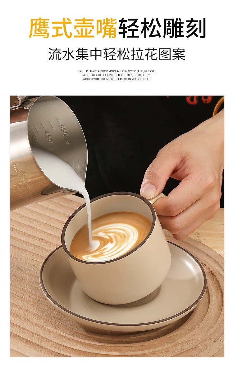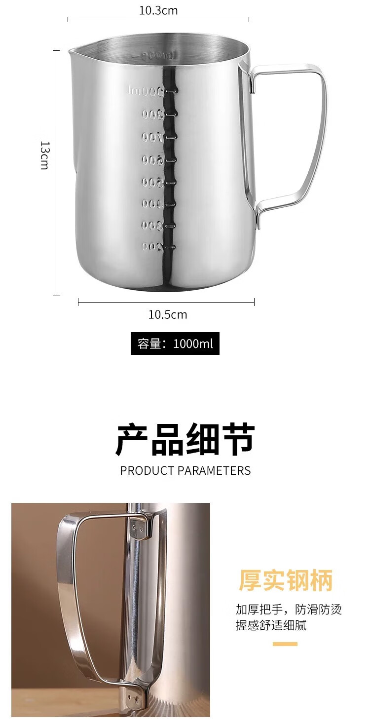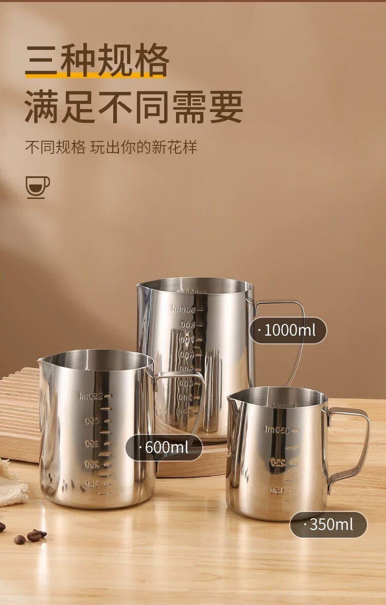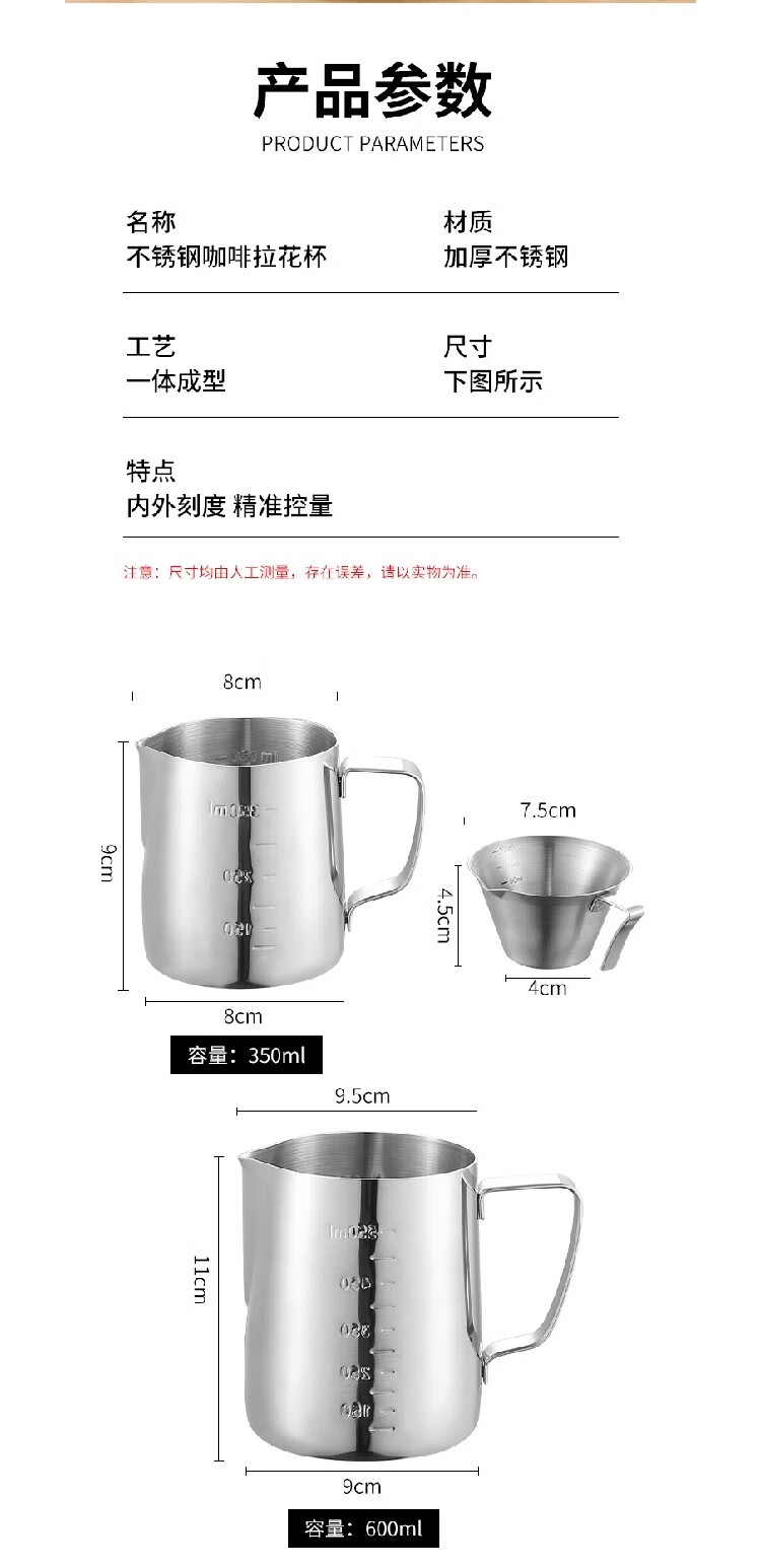 Coffee latte art cylinder, pointed mouth latte art cup, milk froth cup, latte art artifact, 304 stainless steel coffee milk vat, melted wax cup, 304 stainless steel stamped scale, silver 600ml